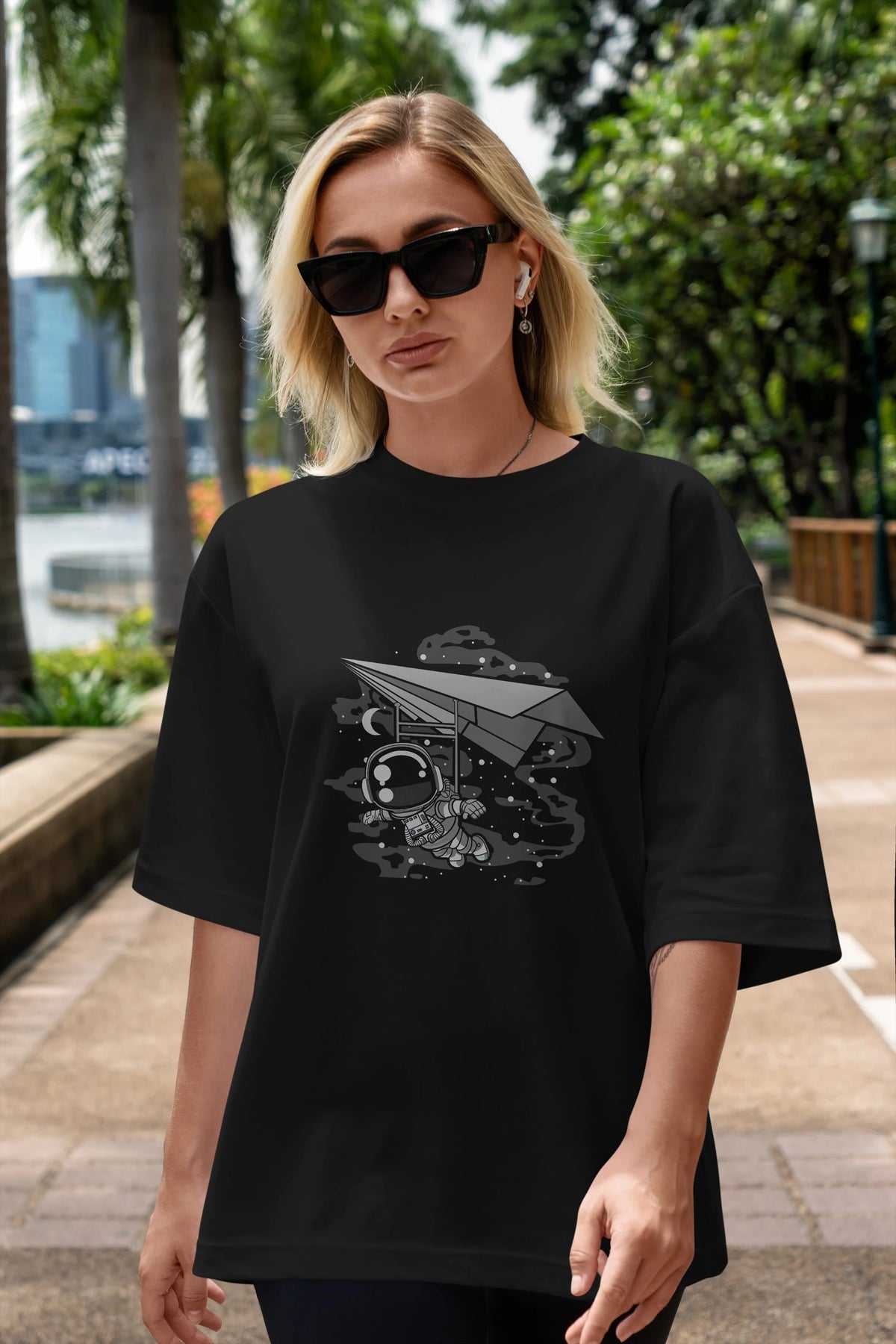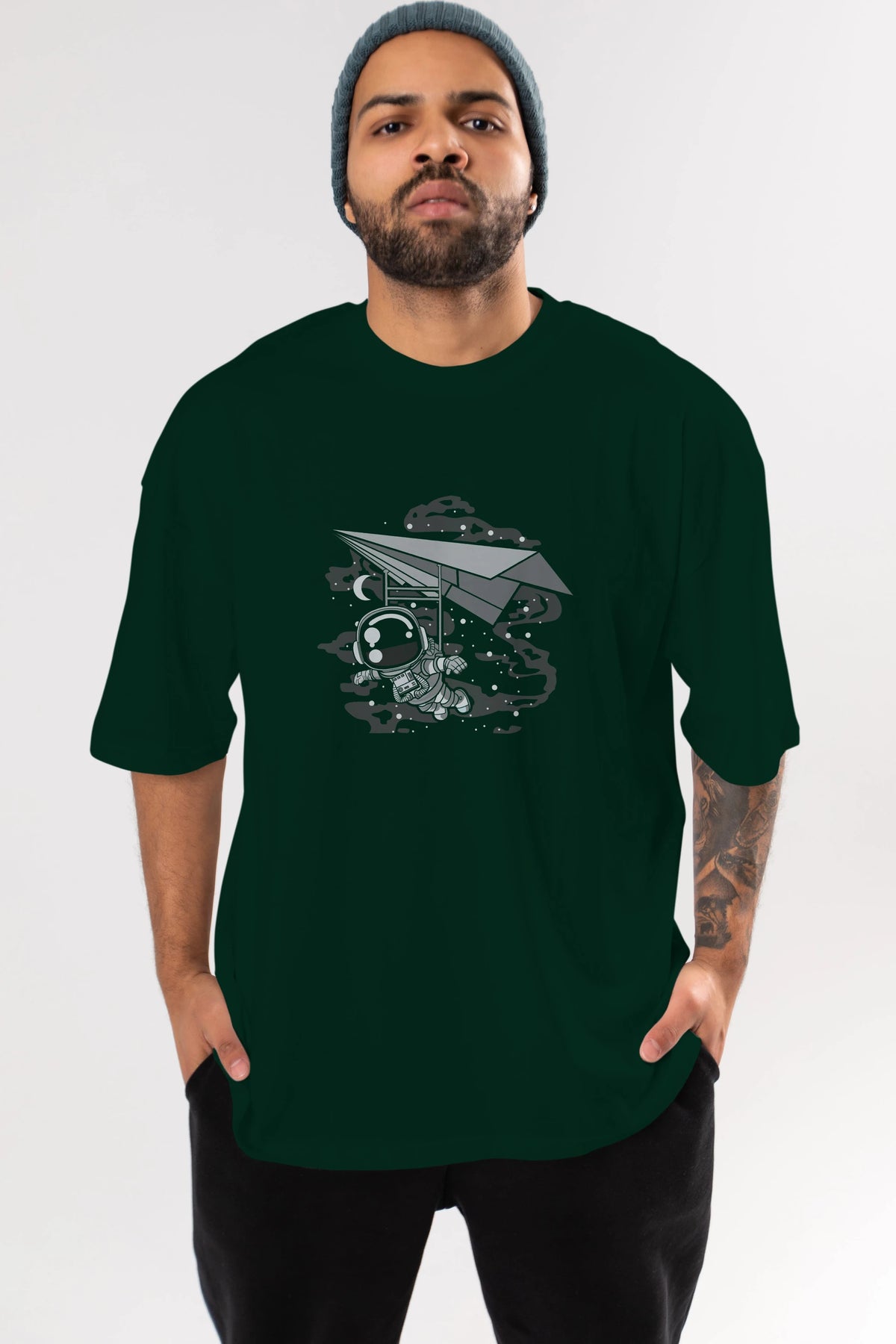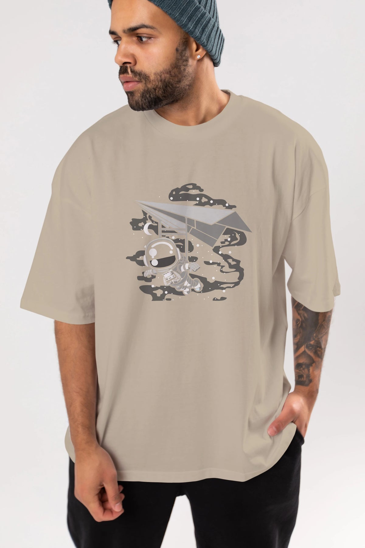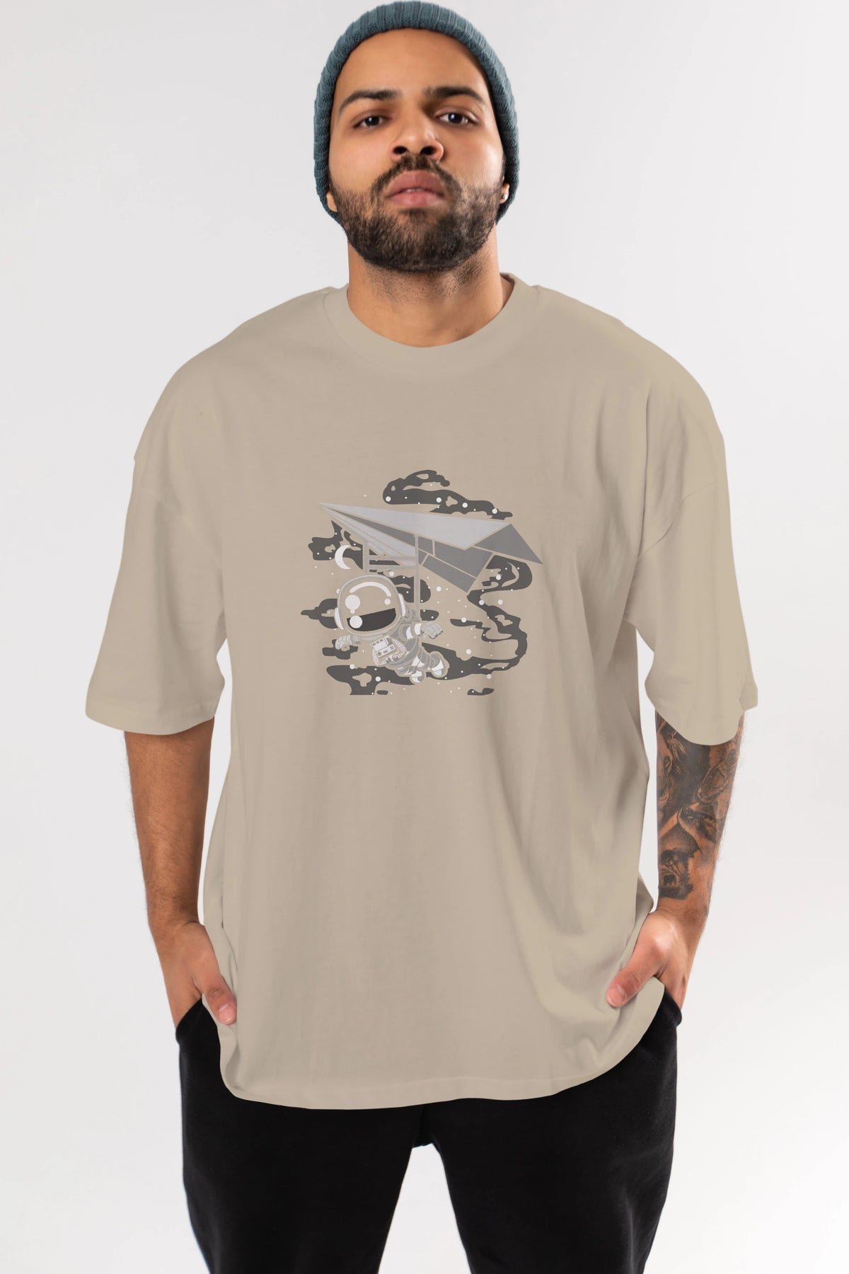 Astronaut Flying Ön Baskılı Oversize t-shirt Erkek Kadın Unisex
