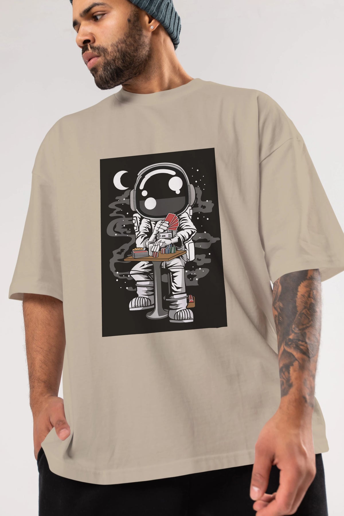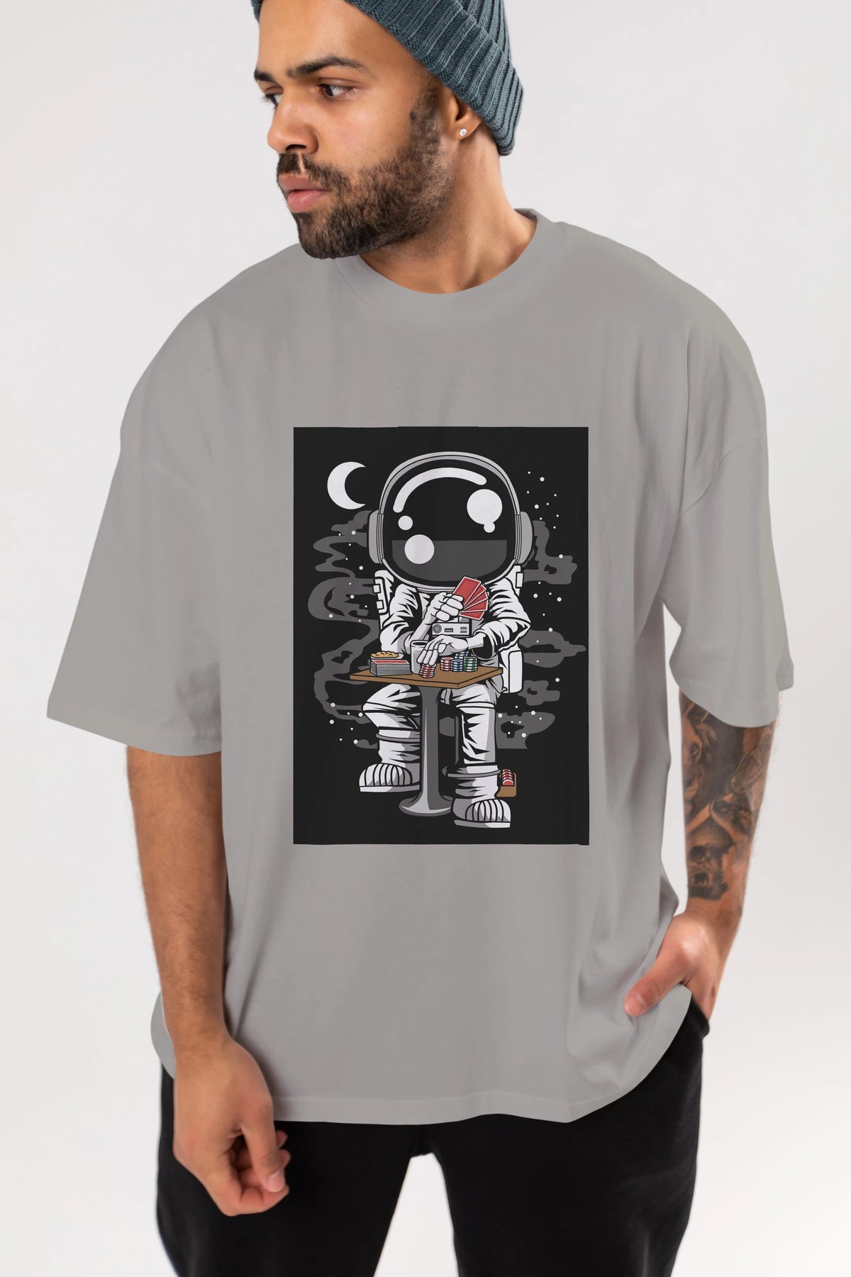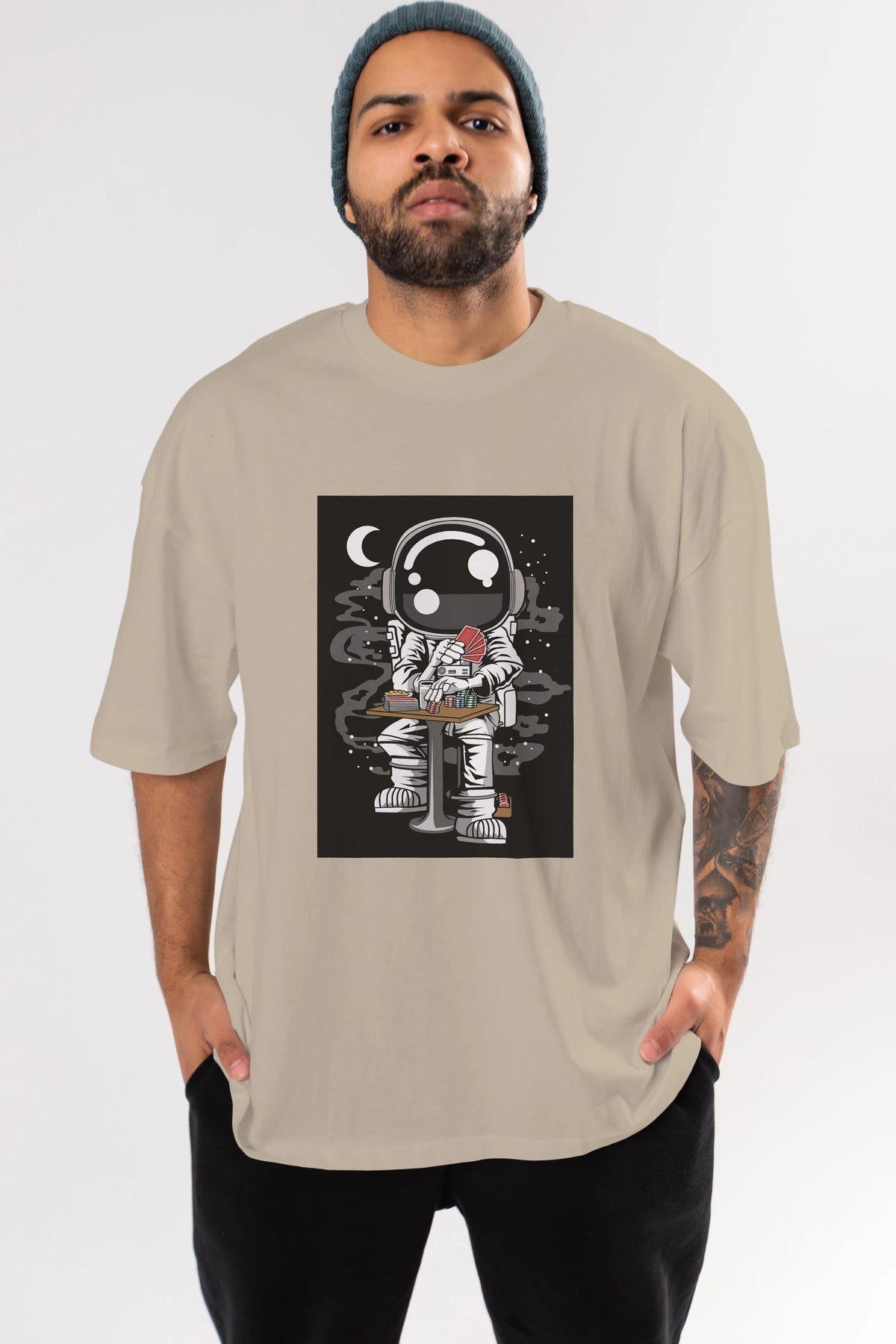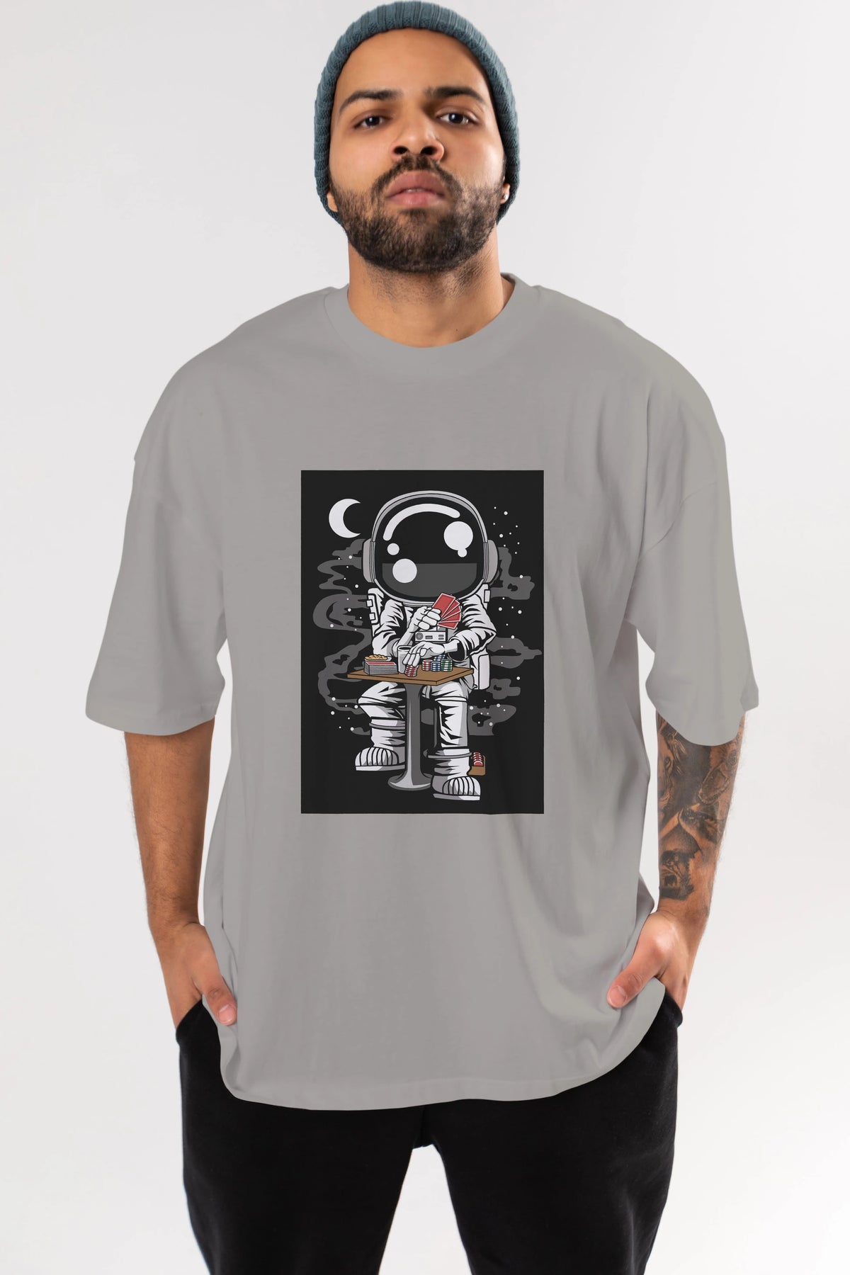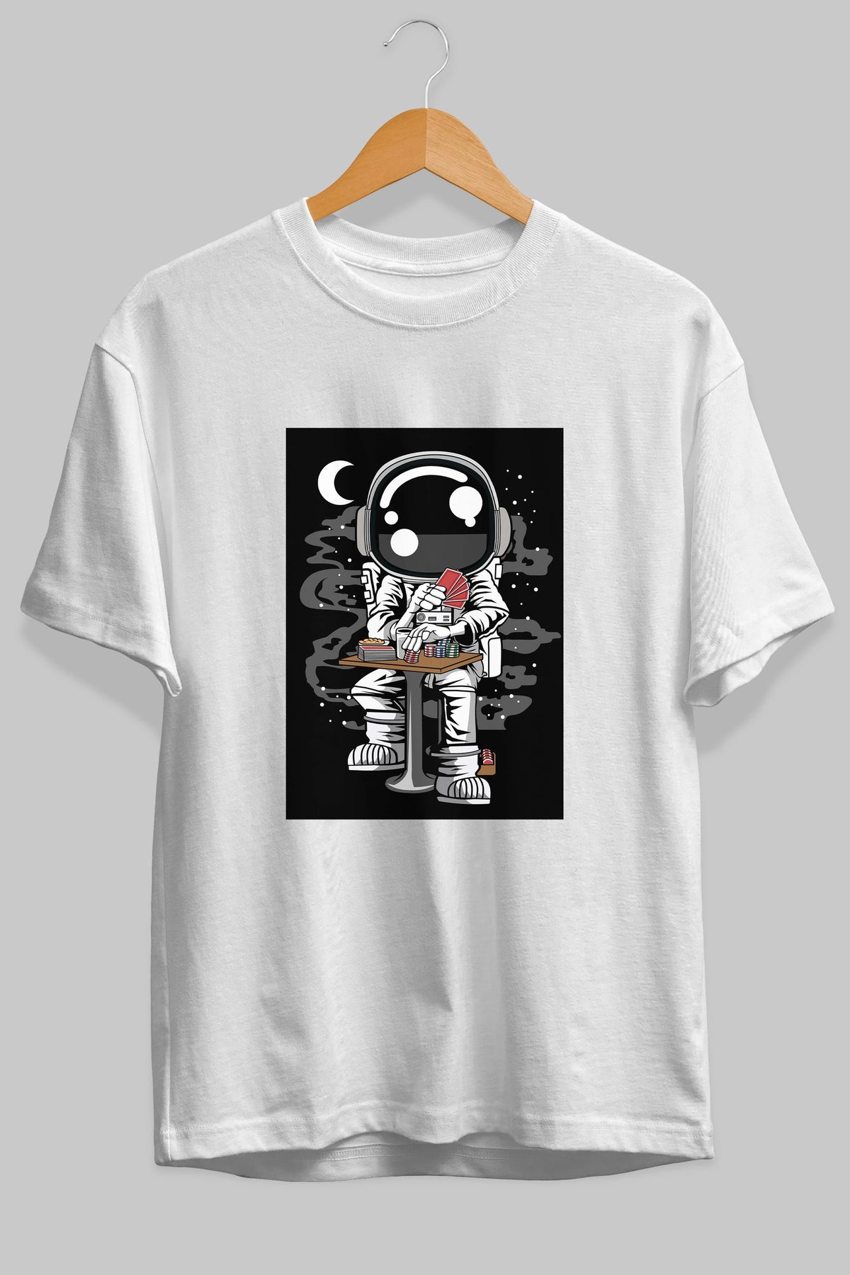 Astronaut Gambler Ön Baskılı Oversize t-shirt Erkek Kadın Unisex