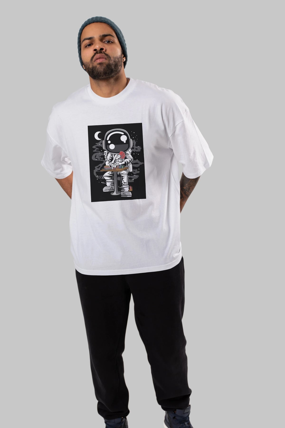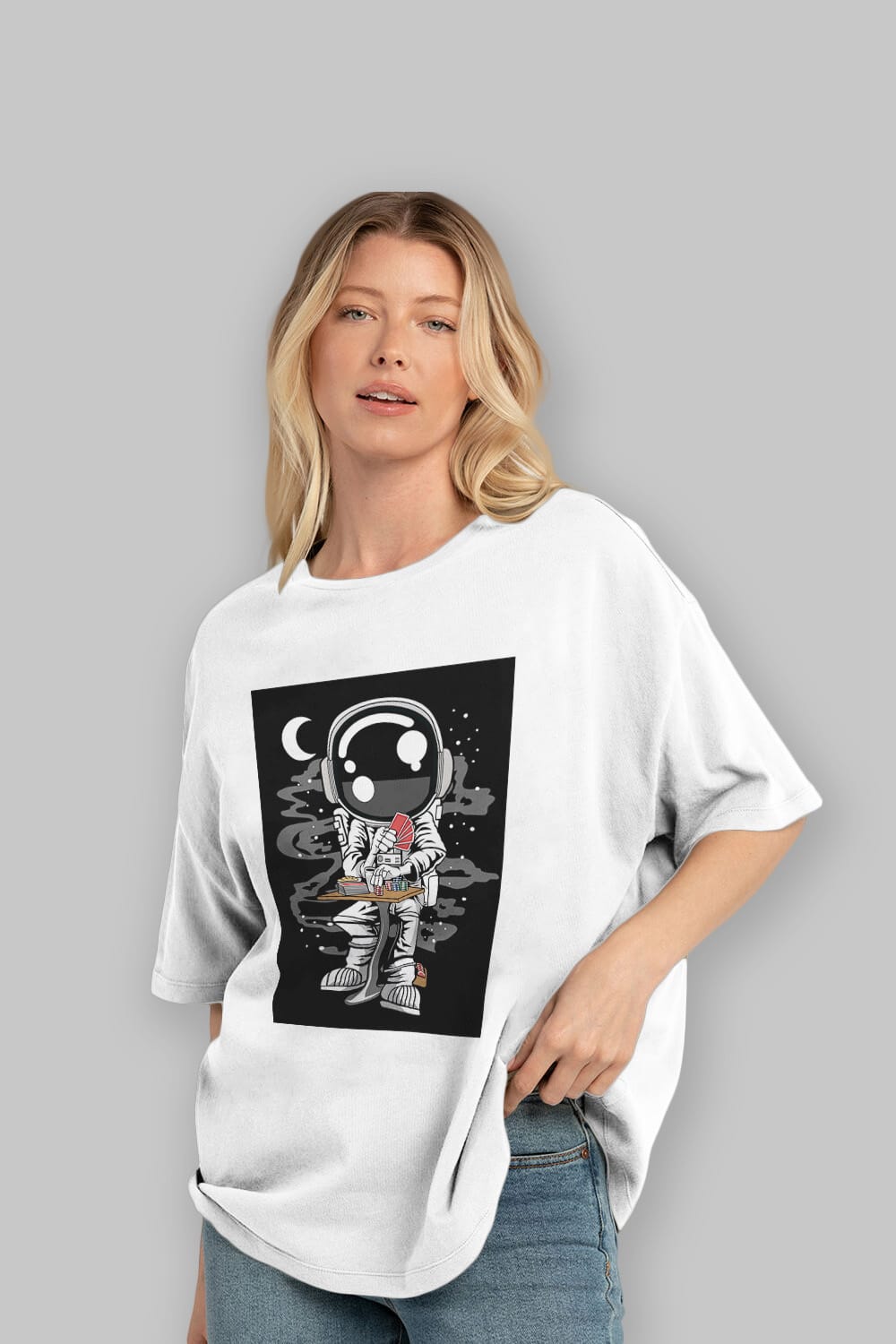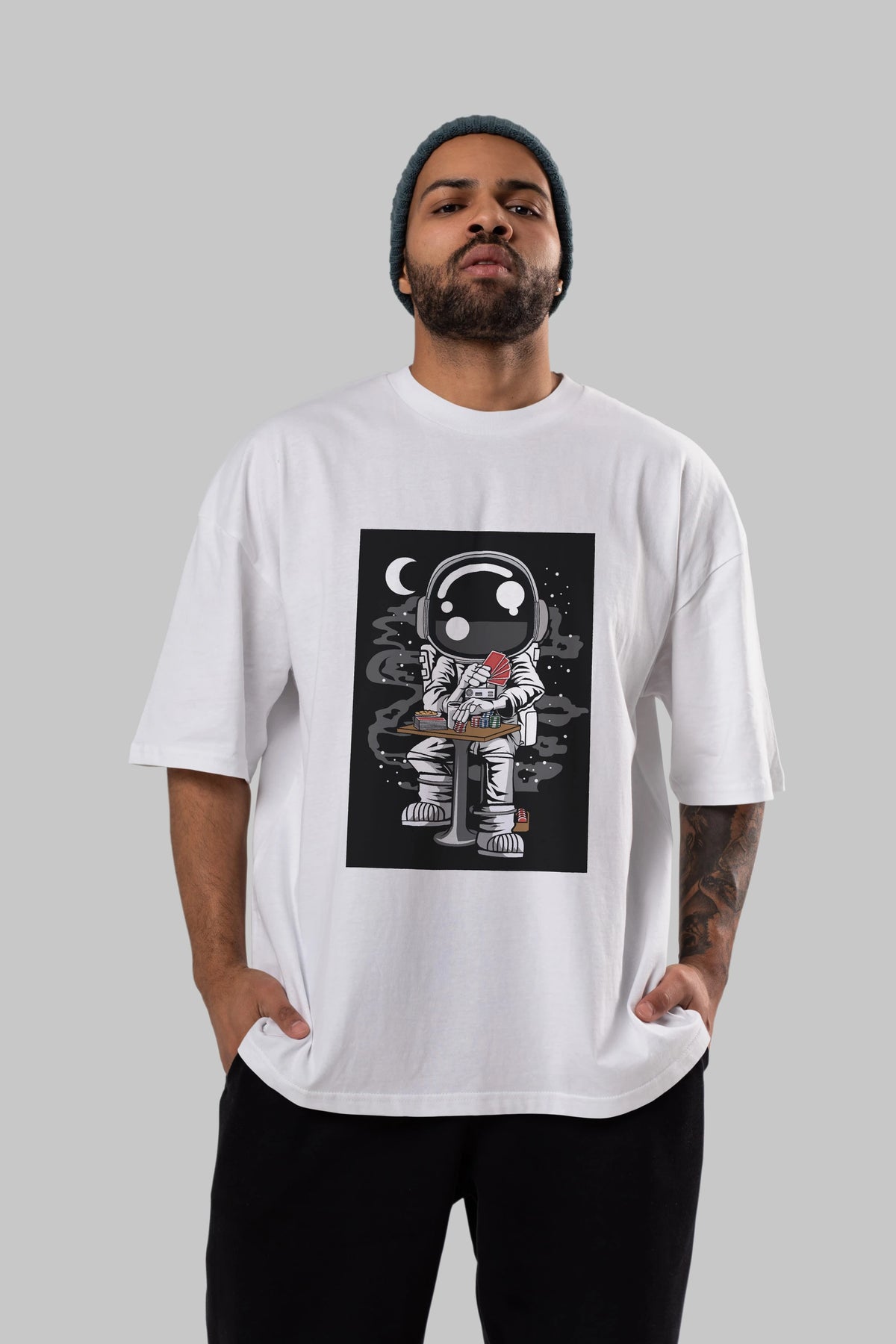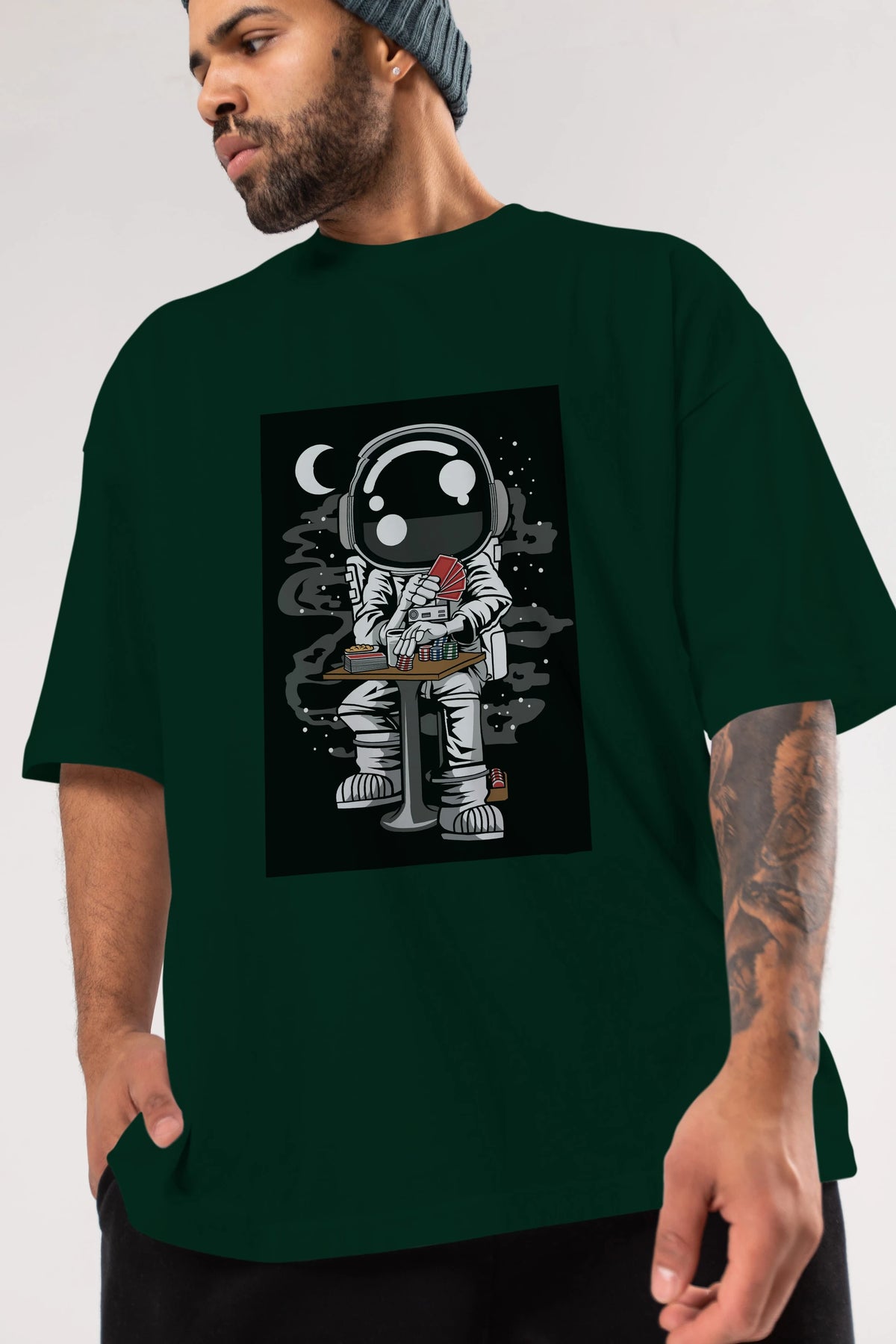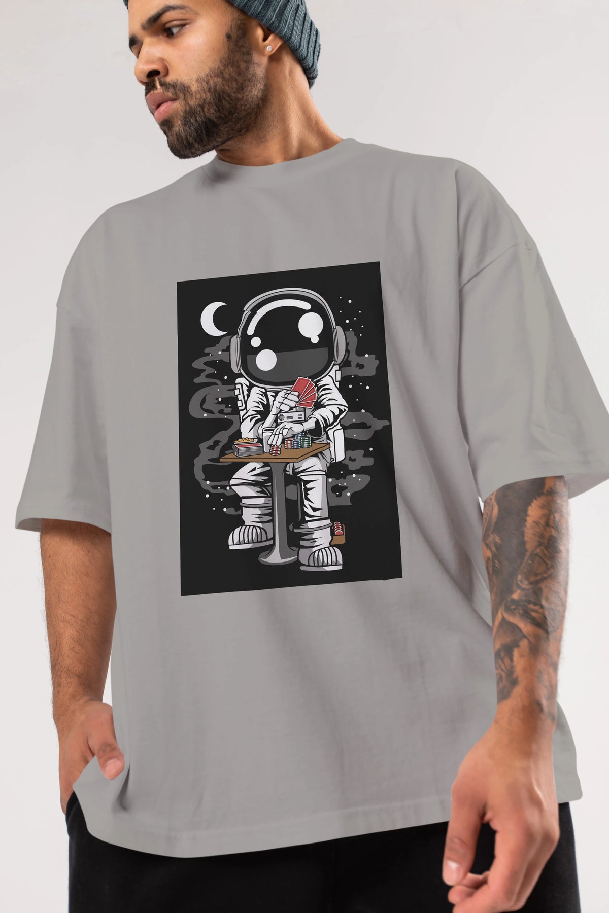 Astronaut Gambler Ön Baskılı Oversize t-shirt Erkek Kadın Unisex