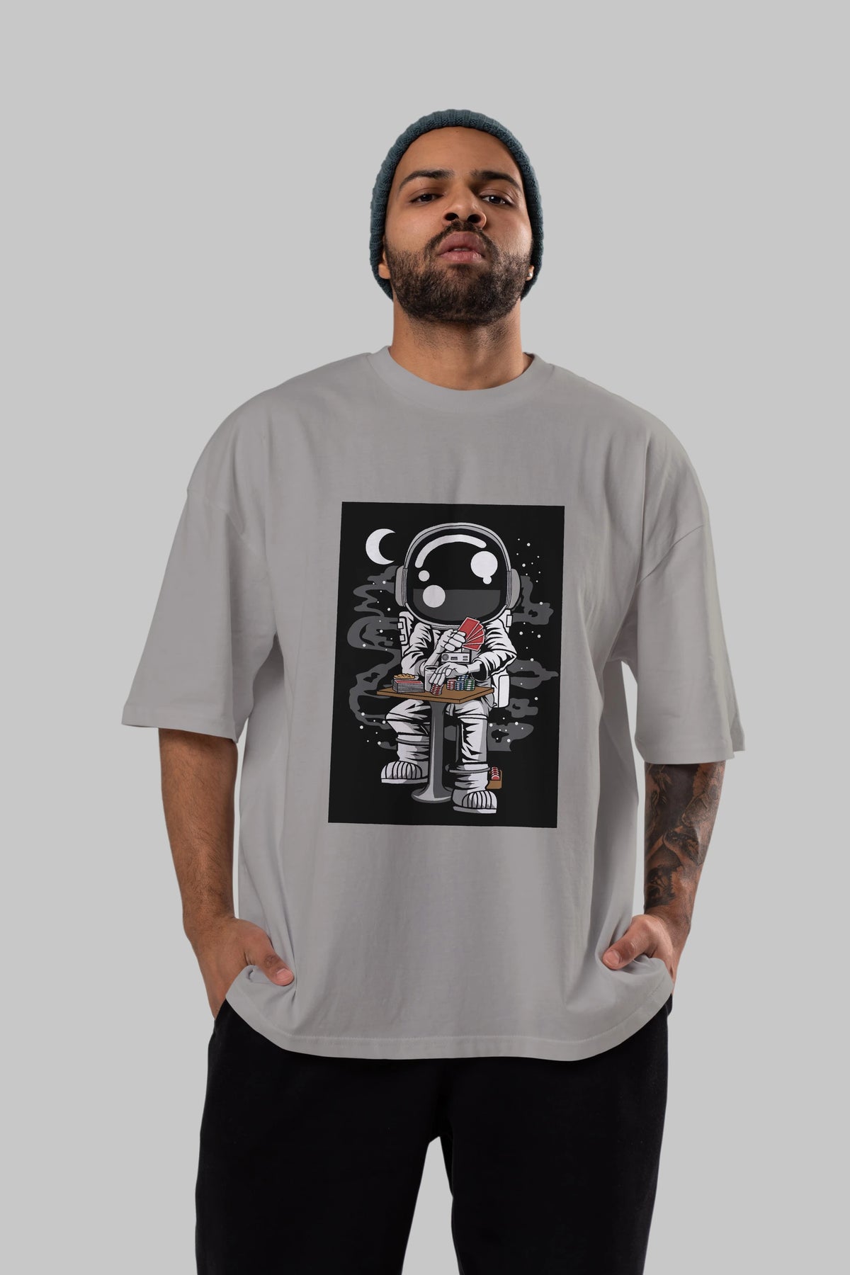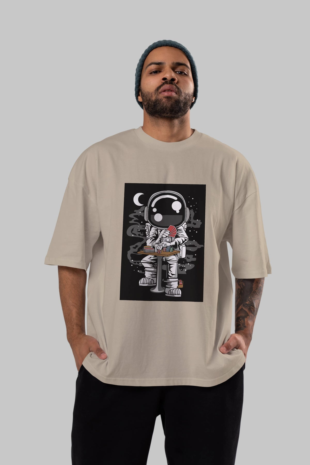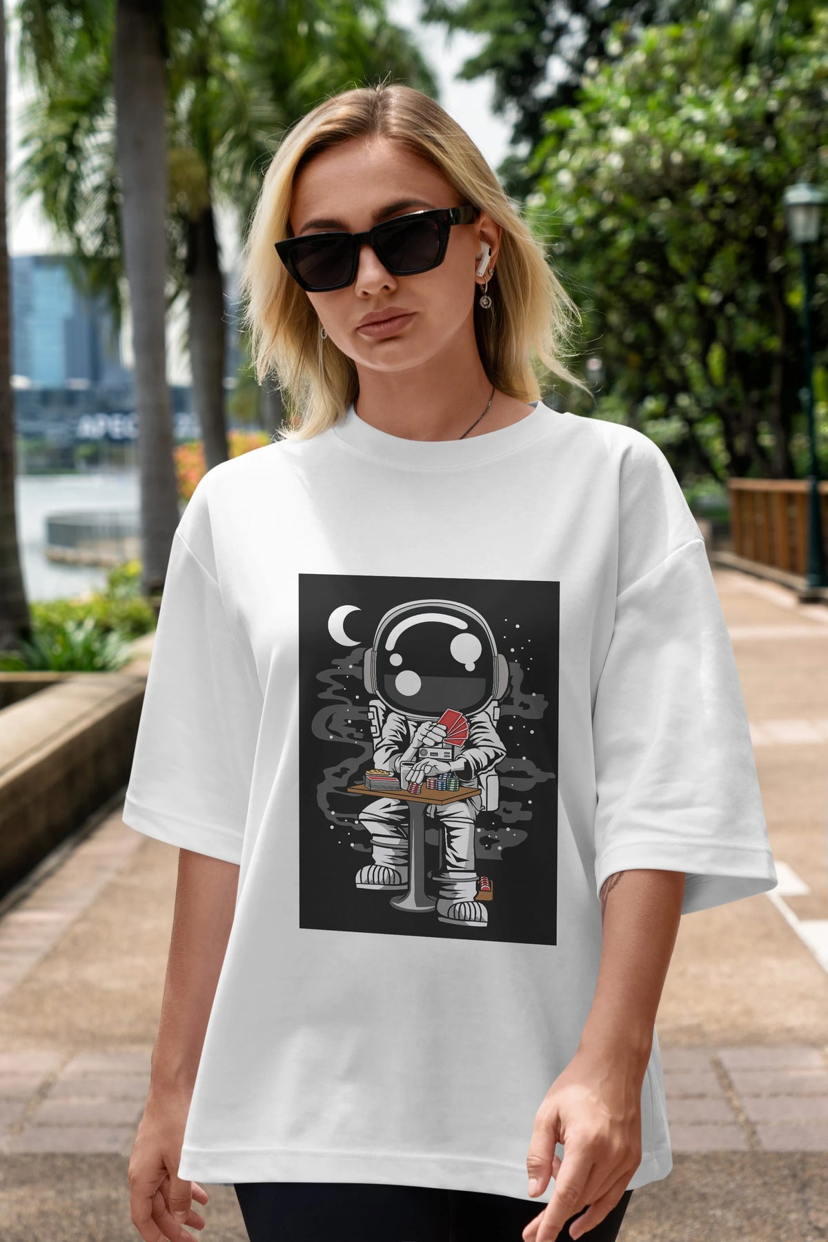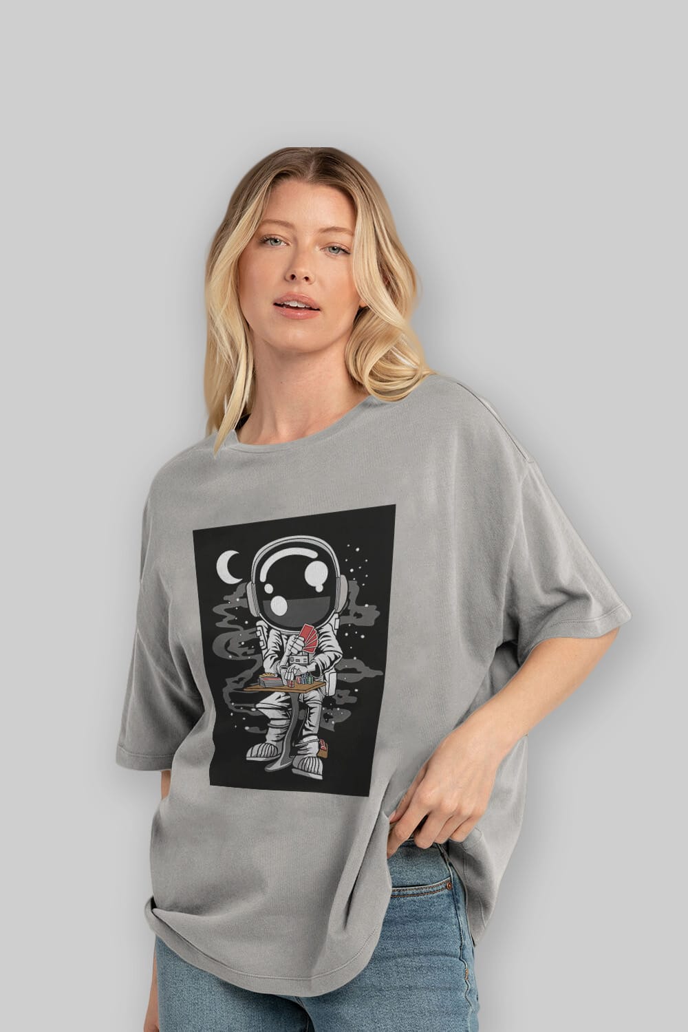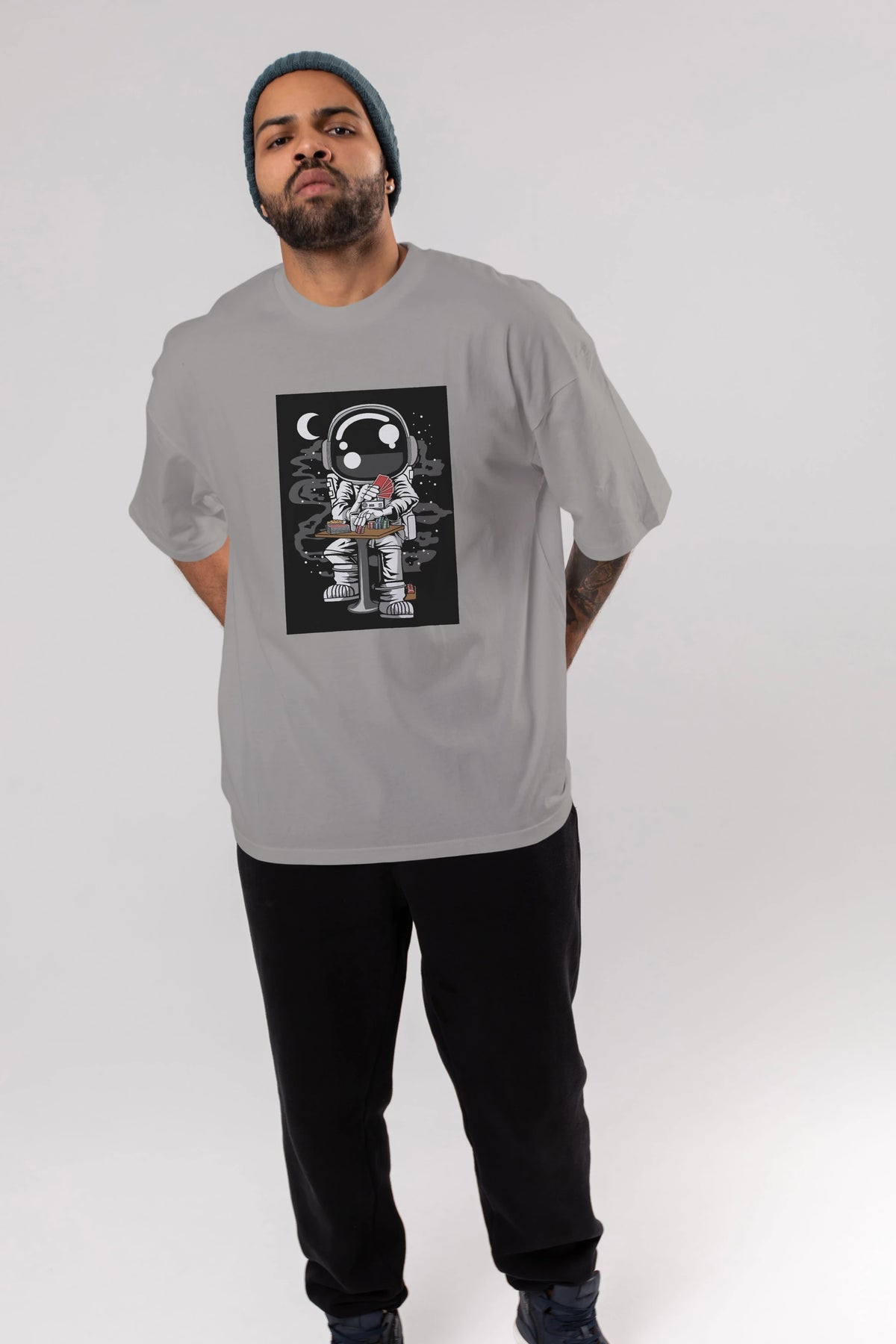 Astronaut Gambler Ön Baskılı Oversize t-shirt Erkek Kadın Unisex