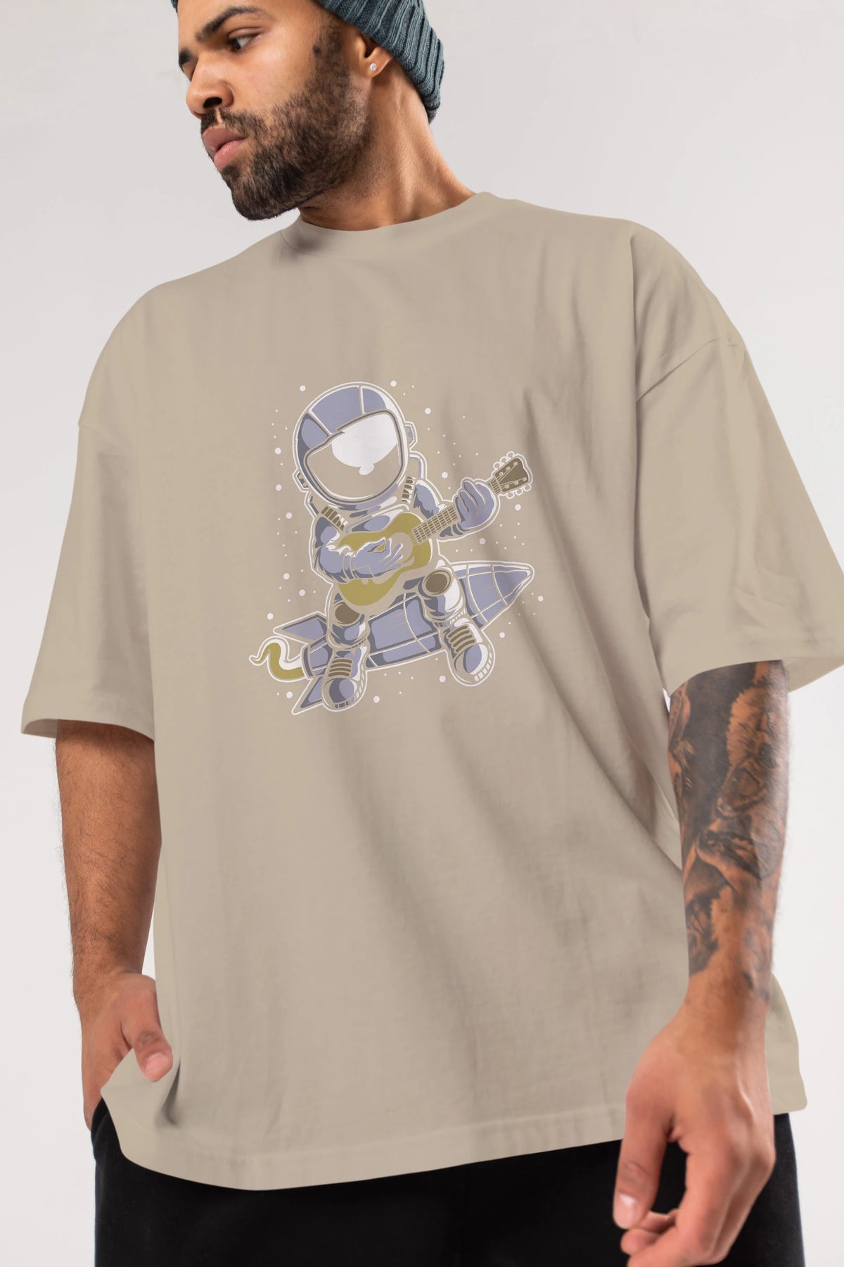 Astronaut Guitar (2) Ön Baskılı Oversize t-shirt Erkek Kadın Unisex