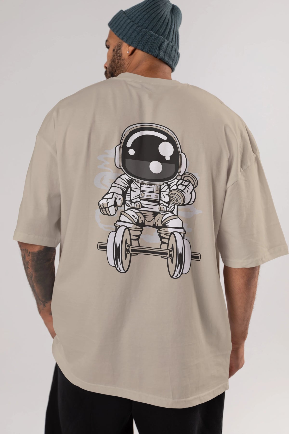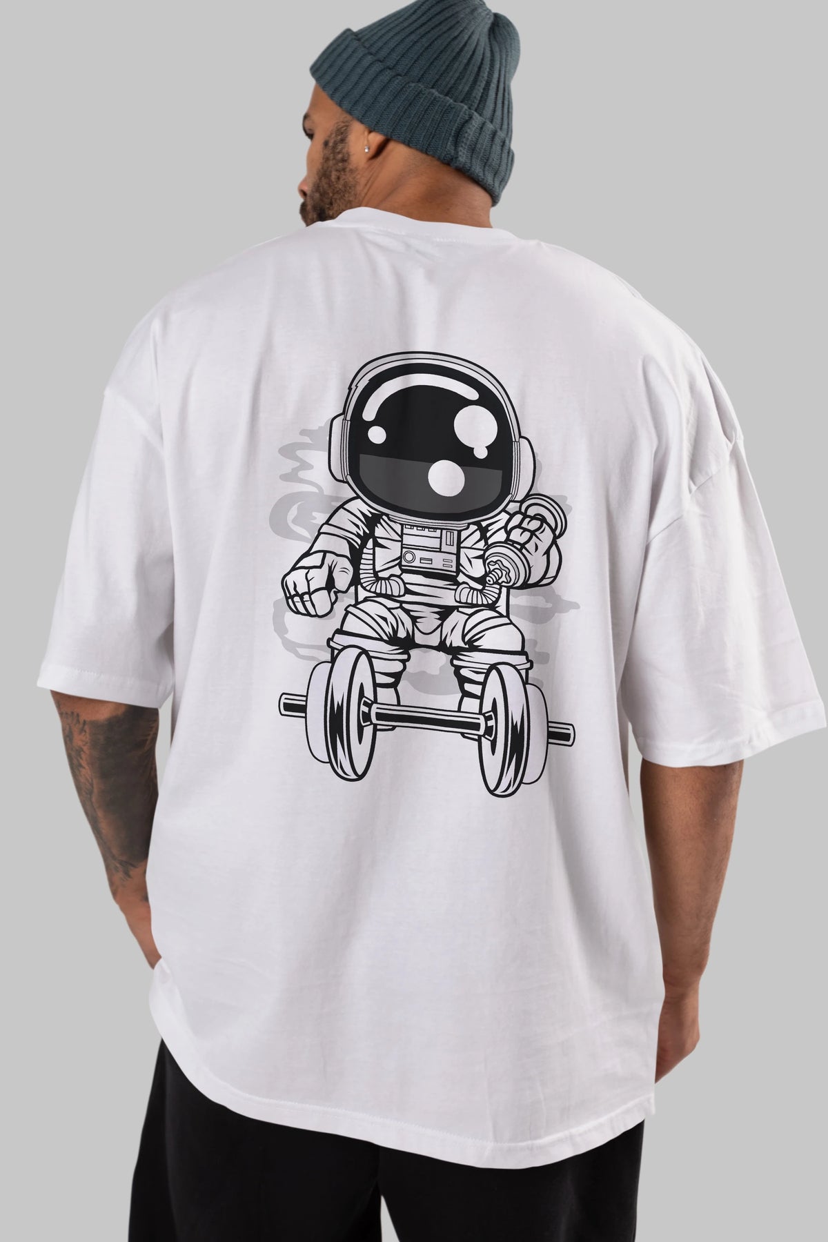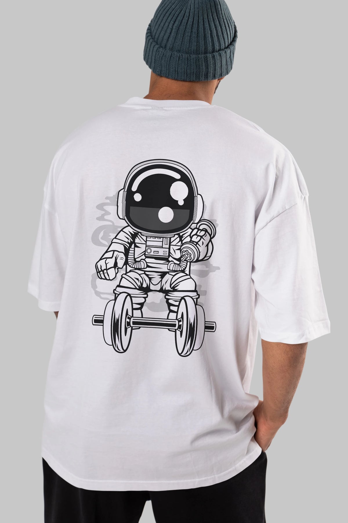 Astronaut Gym Arka Baskılı Oversize t-shirt Erkek Kadın Unisex