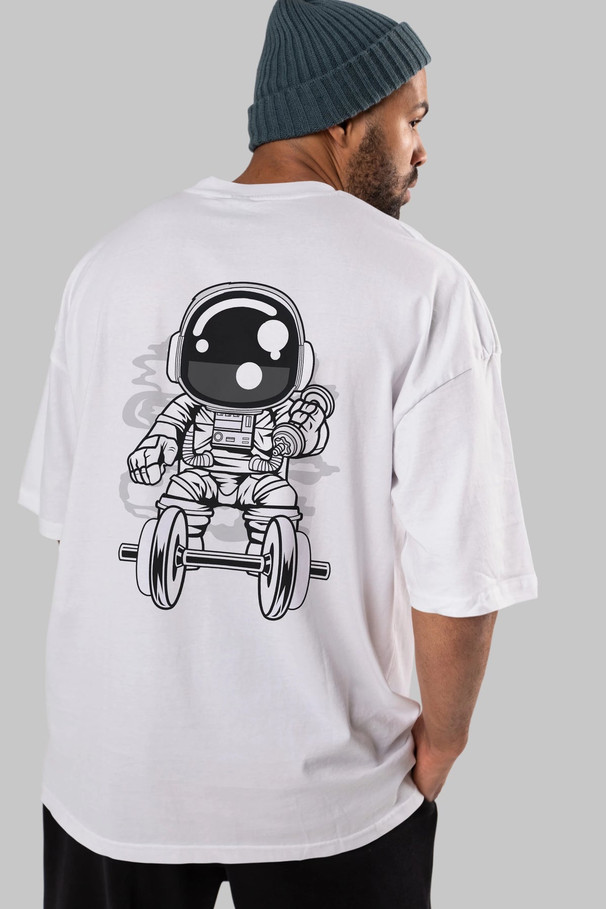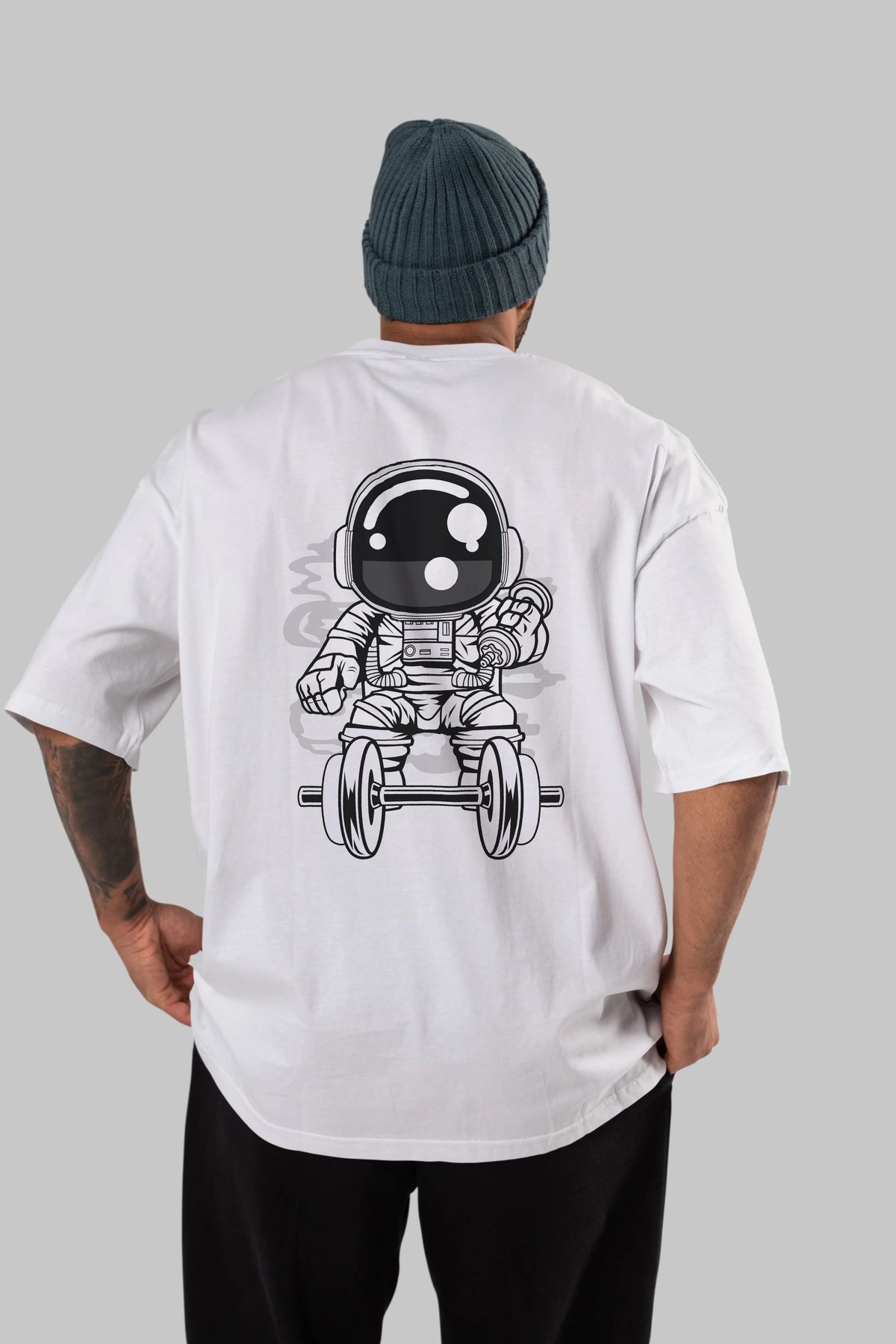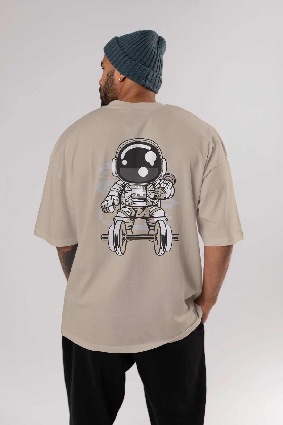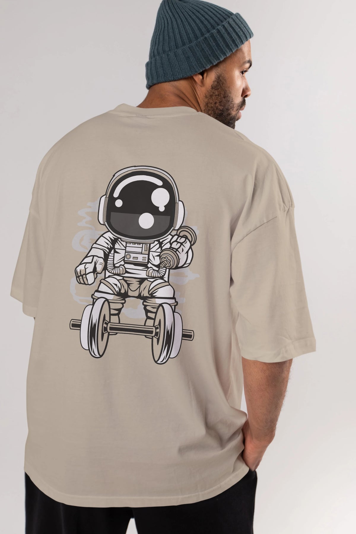 Astronaut Gym Arka Baskılı Oversize t-shirt Erkek Kadın Unisex