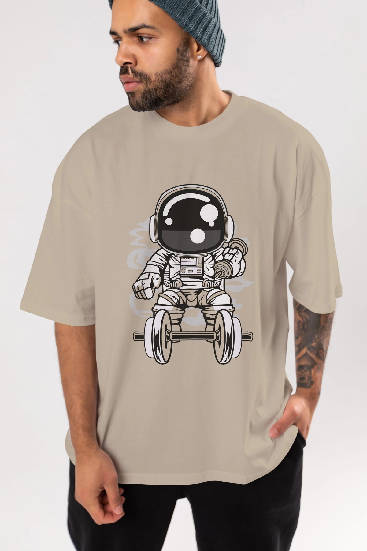 Astronaut Gym Ön Baskılı Oversize t-shirt Erkek Kadın Unisex