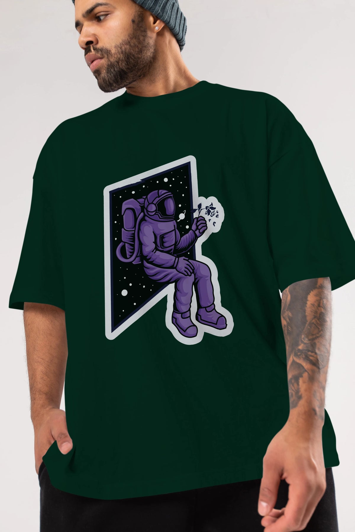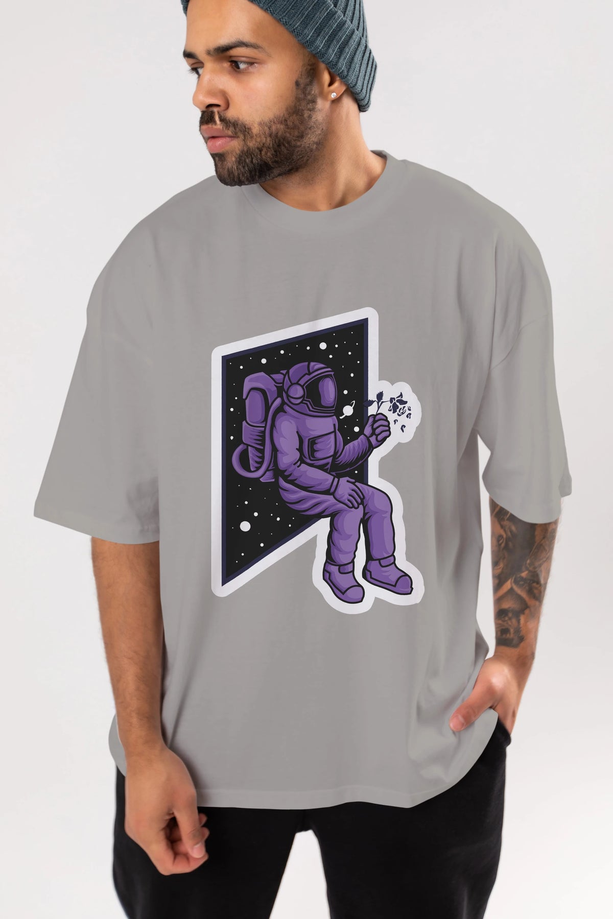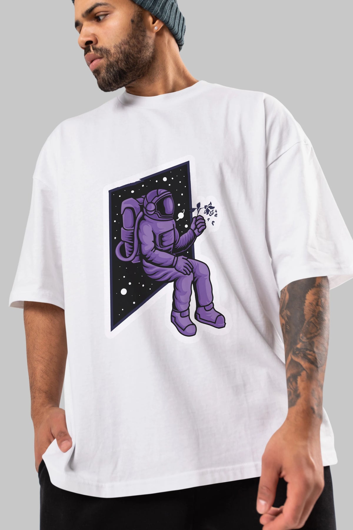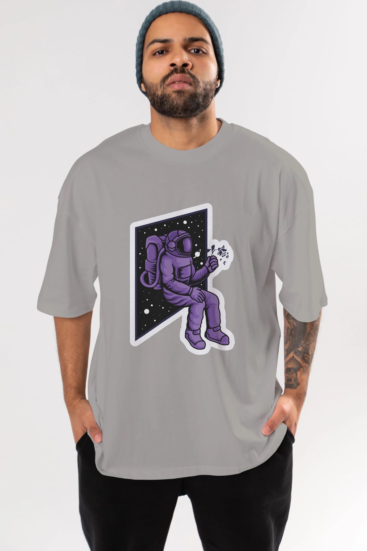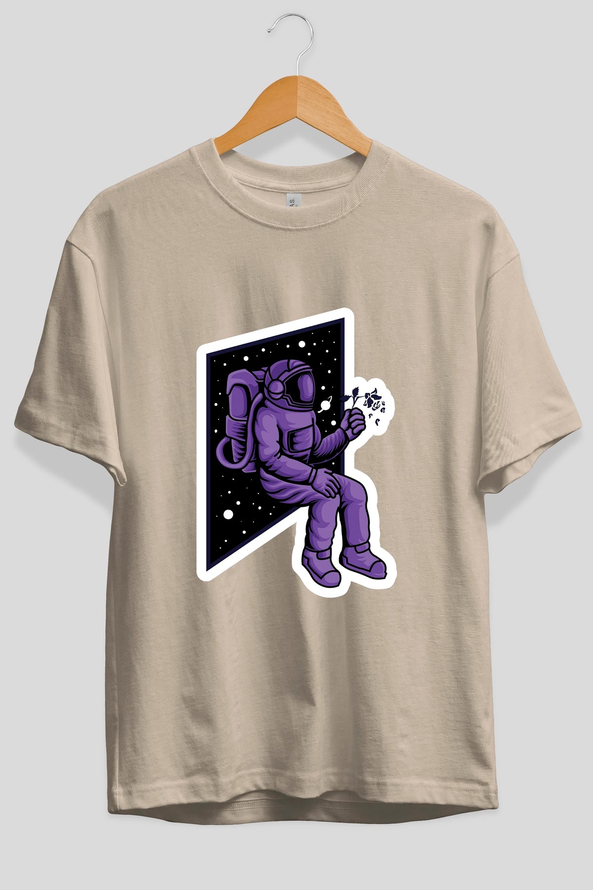 Astronaut holding black rose sticker Ön Baskılı Oversize t-shirt Erkek Kadın Unisex