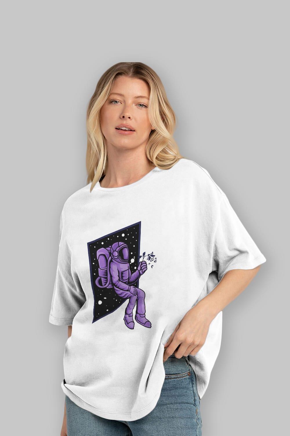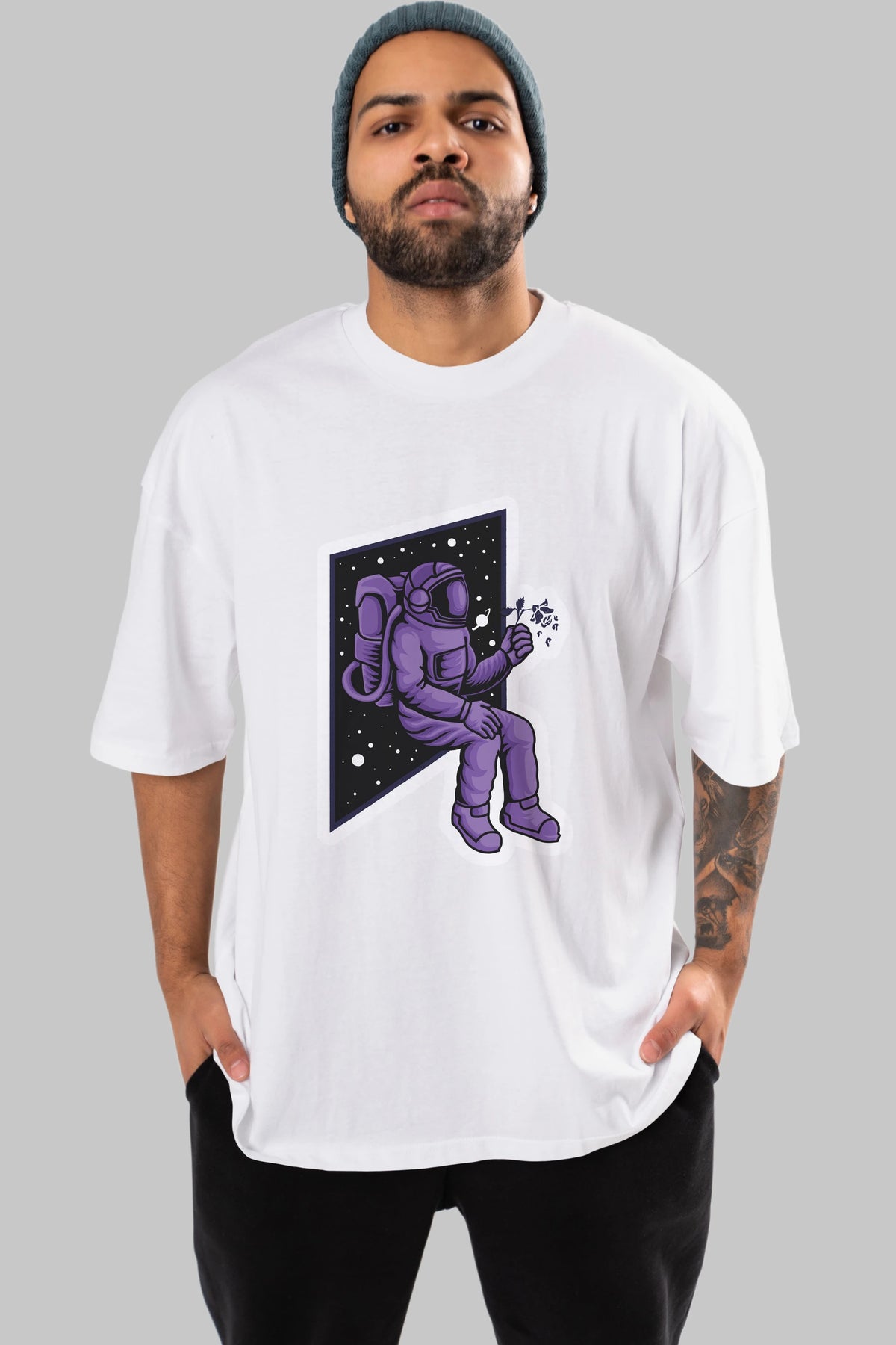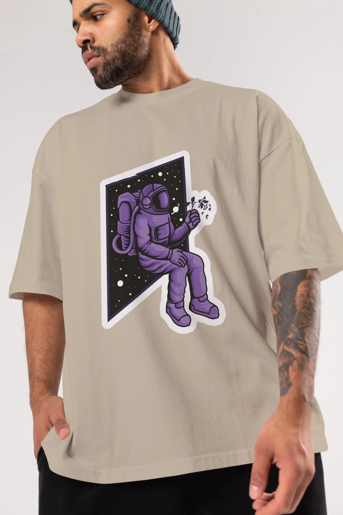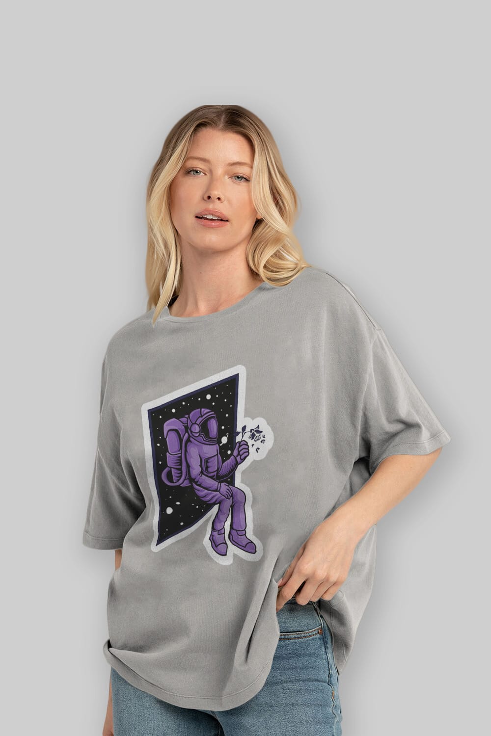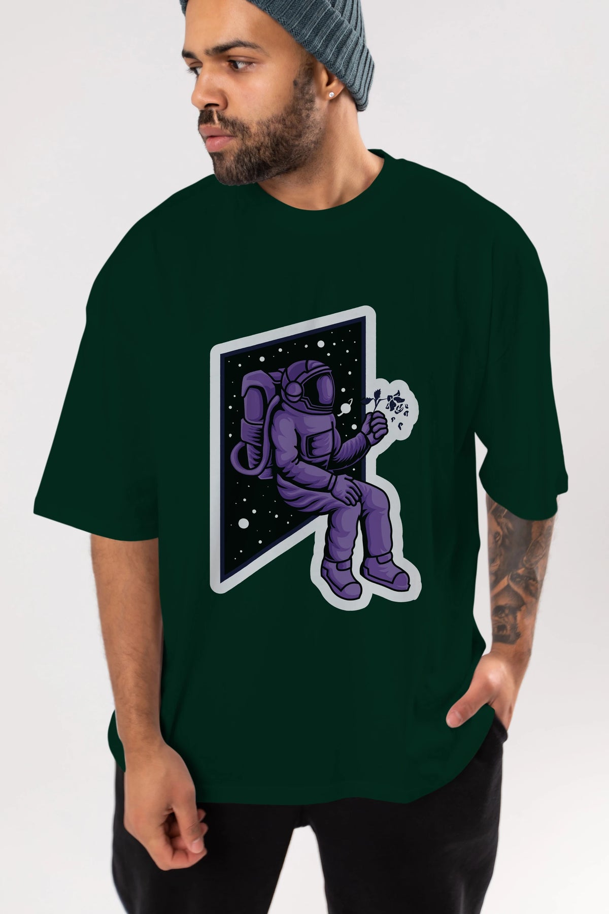 Astronaut holding black rose sticker Ön Baskılı Oversize t-shirt Erkek Kadın Unisex