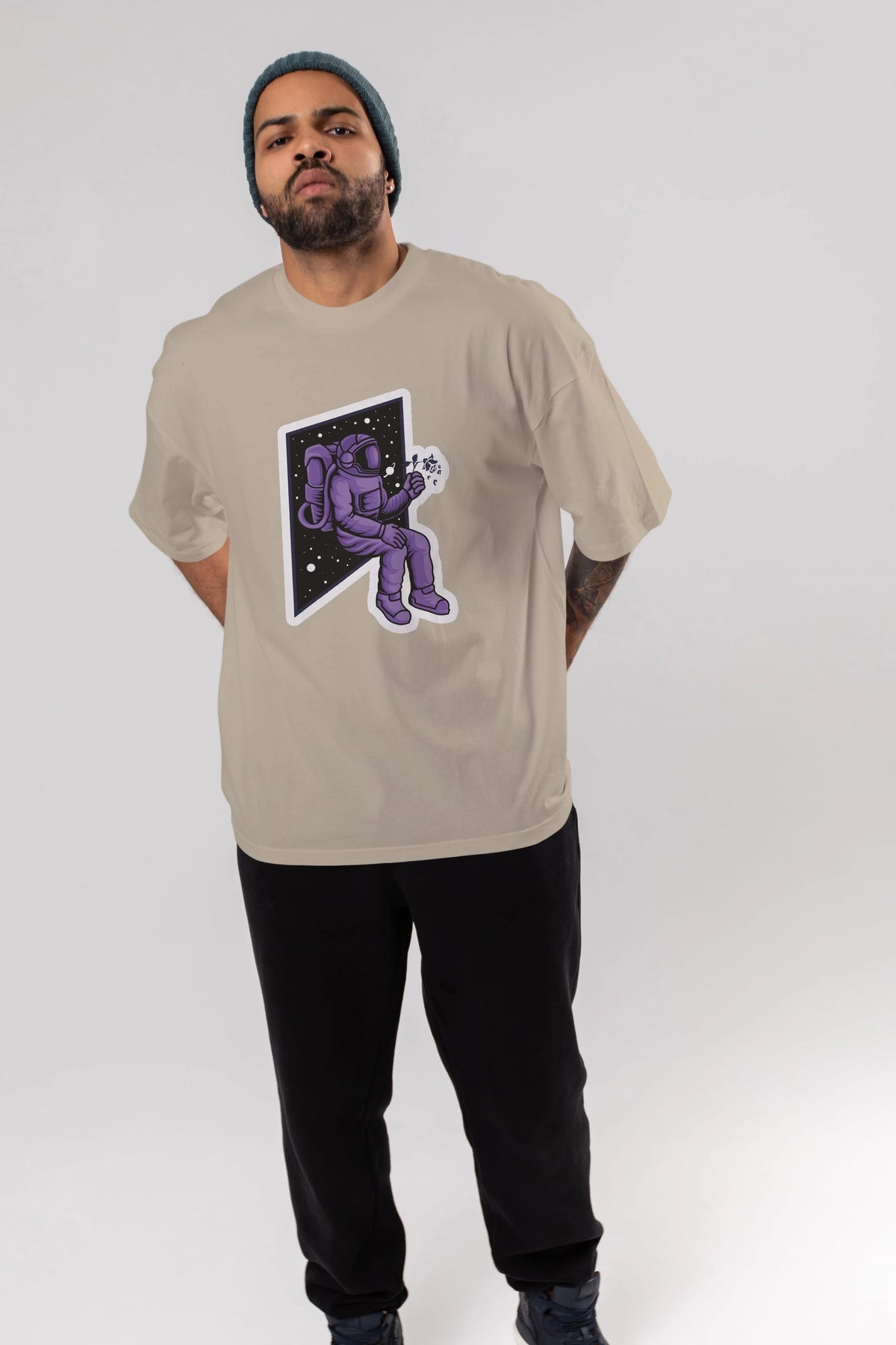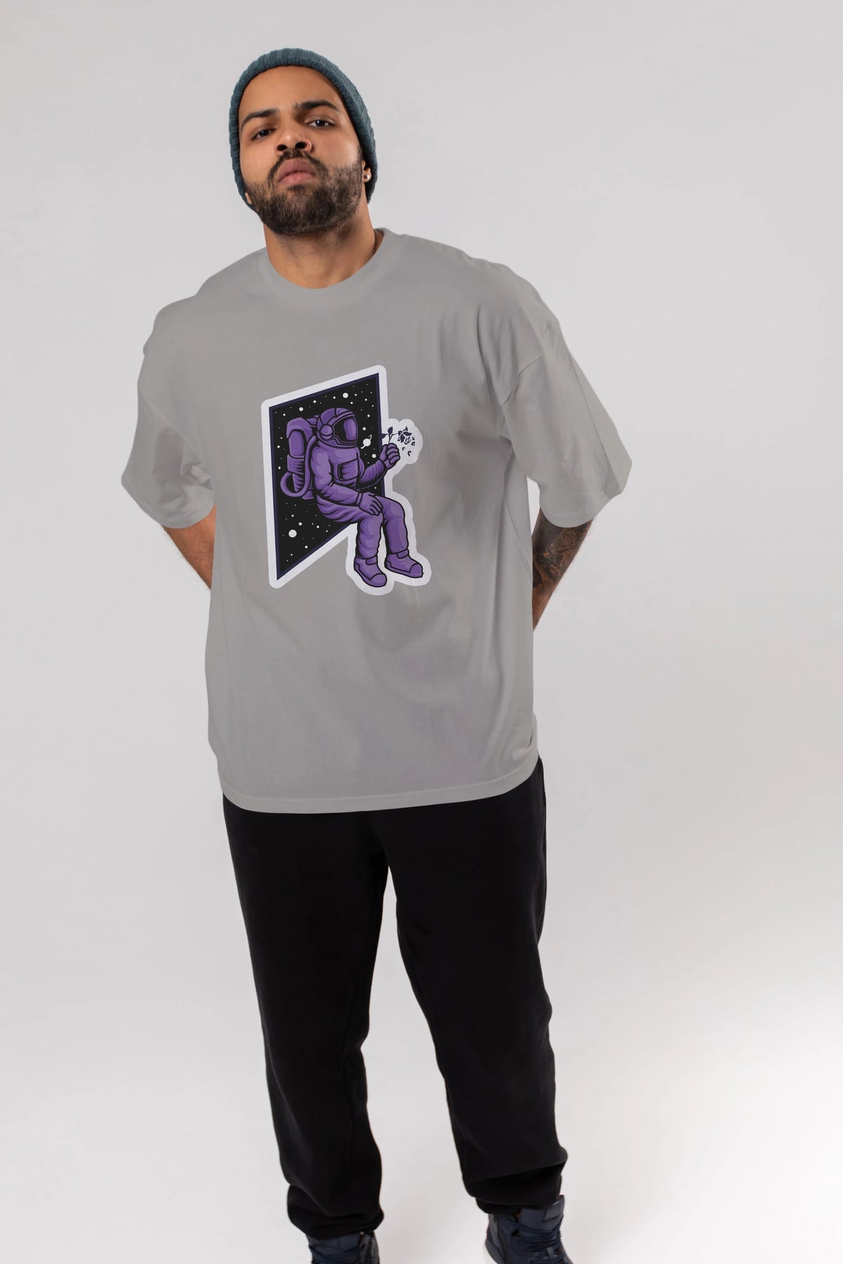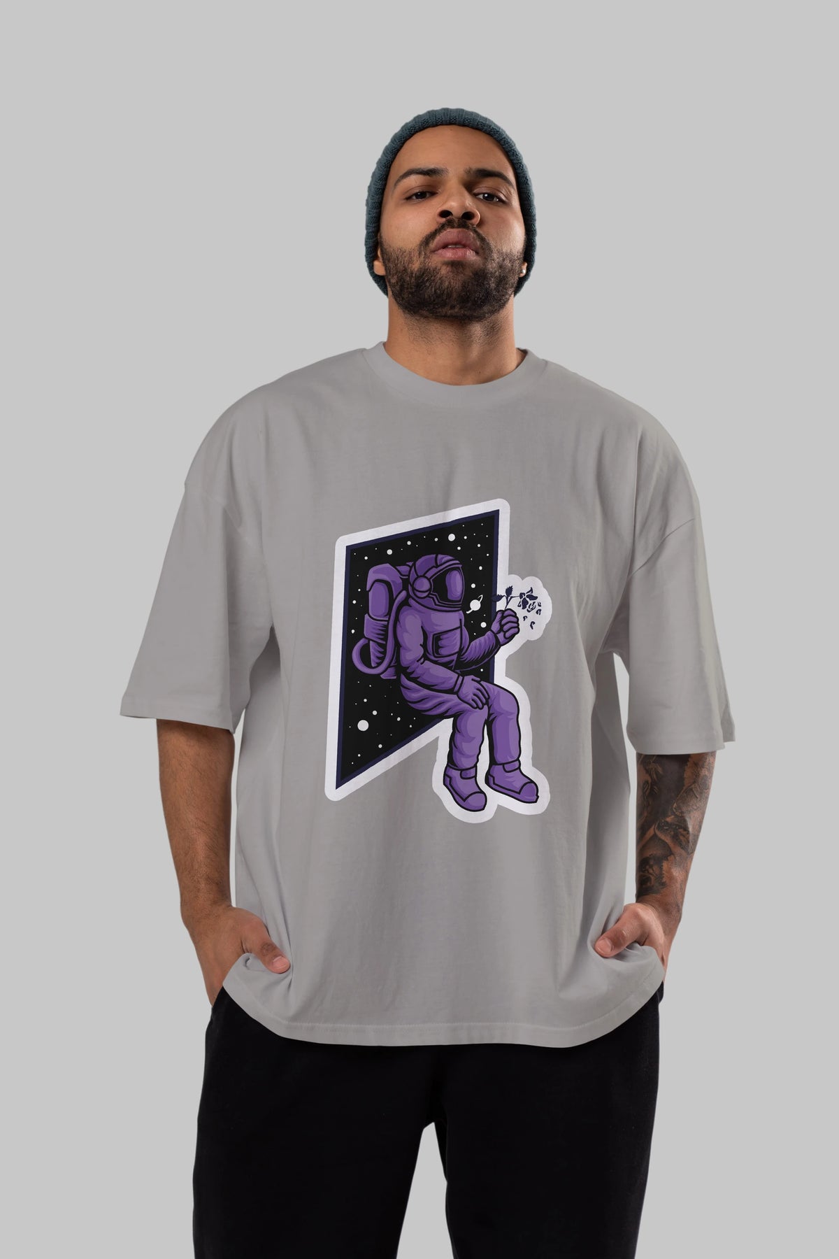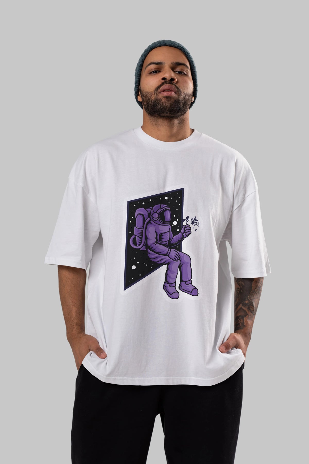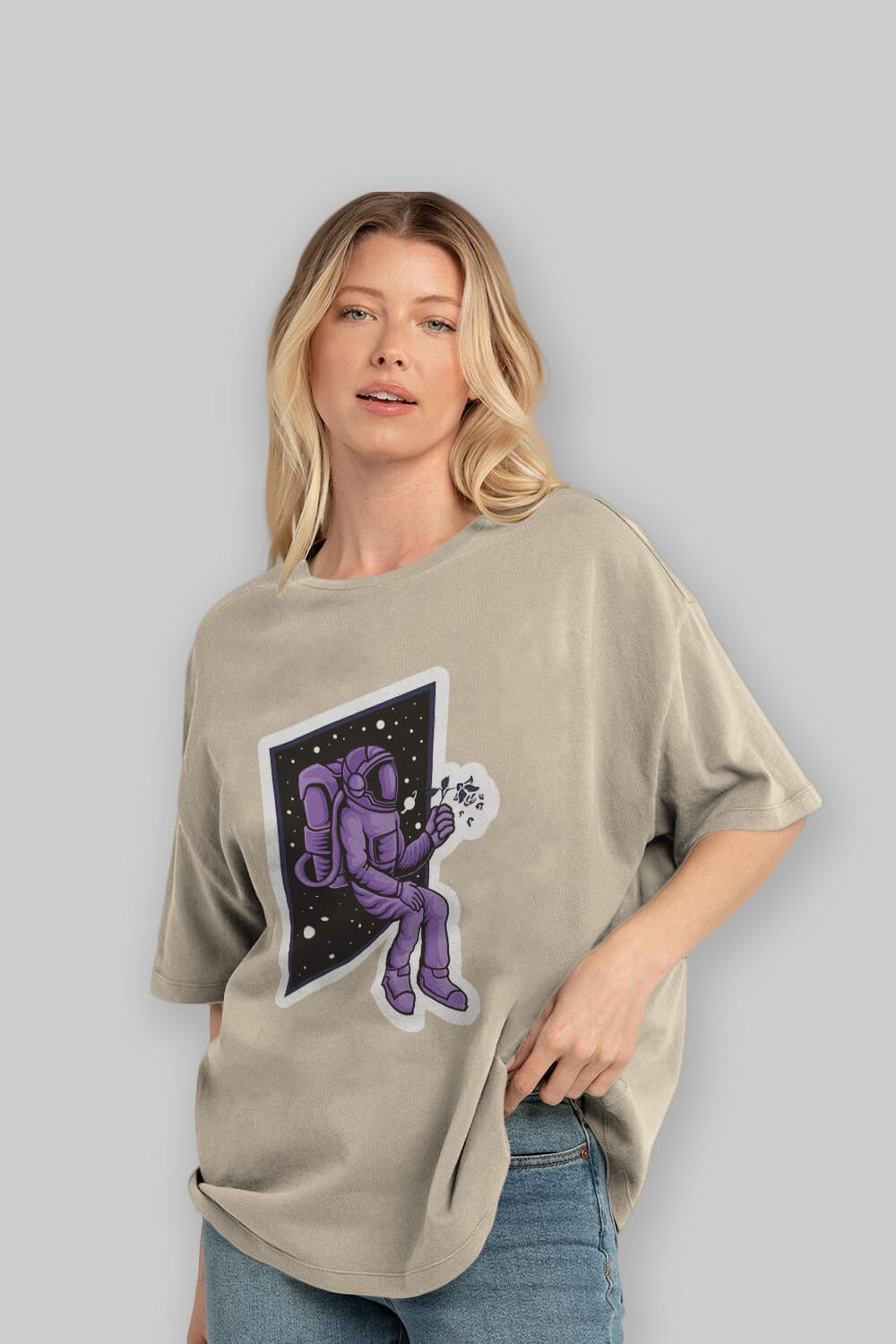 Astronaut holding black rose sticker Ön Baskılı Oversize t-shirt Erkek Kadın Unisex