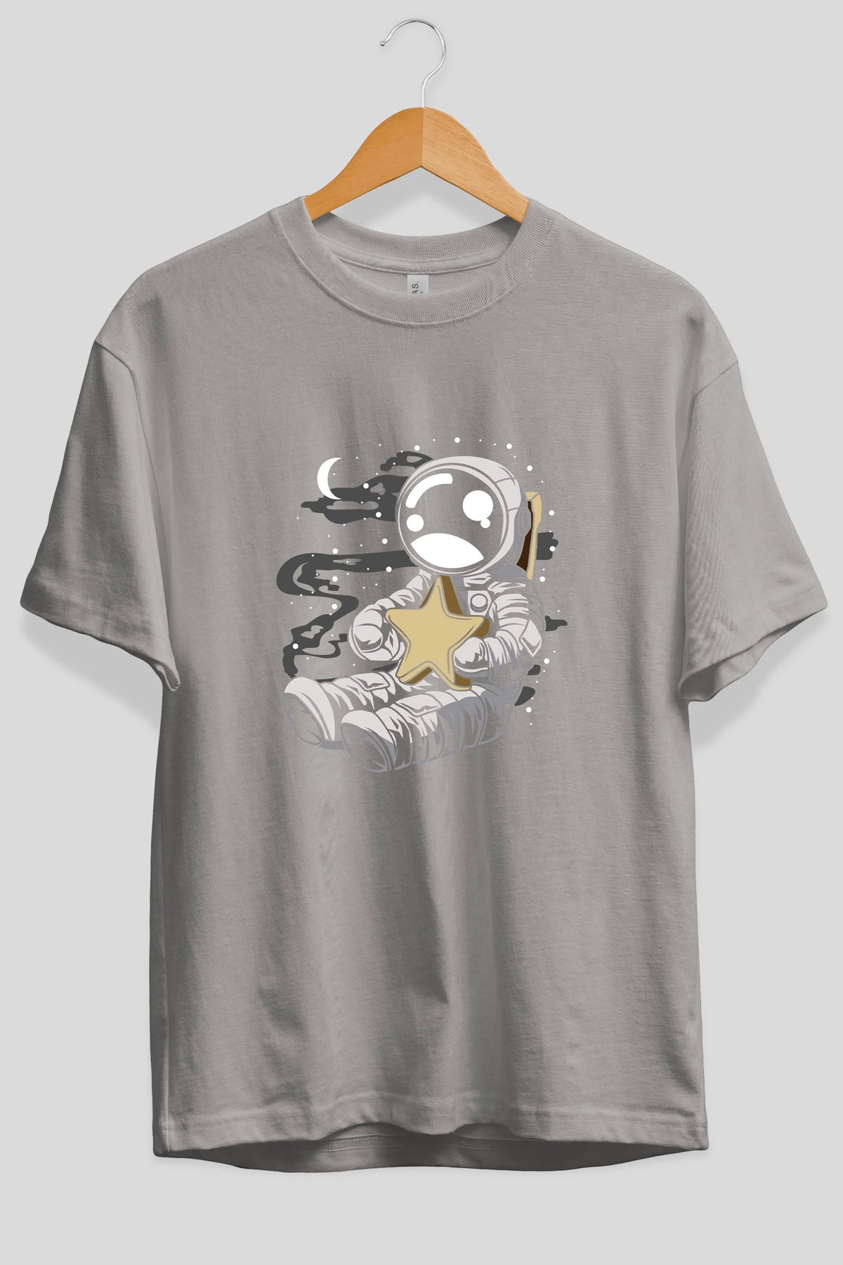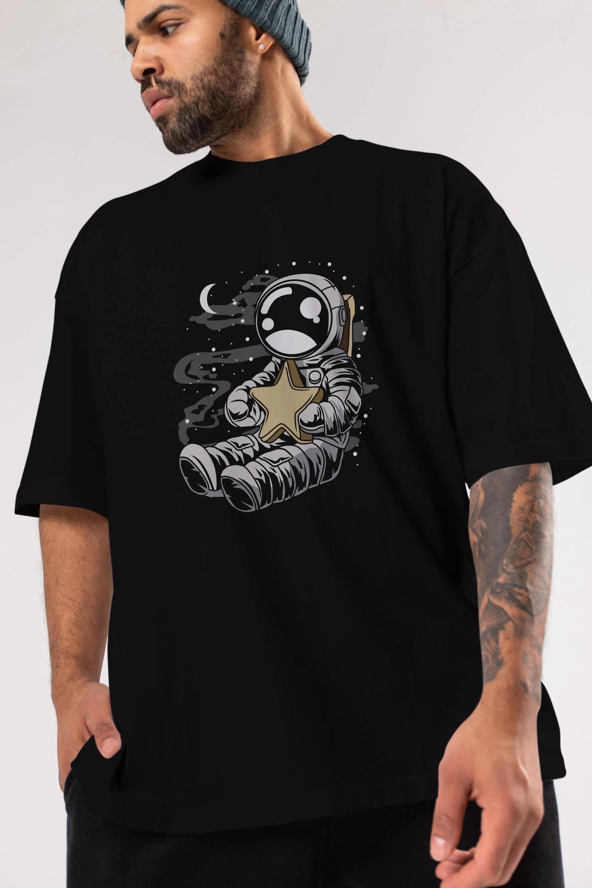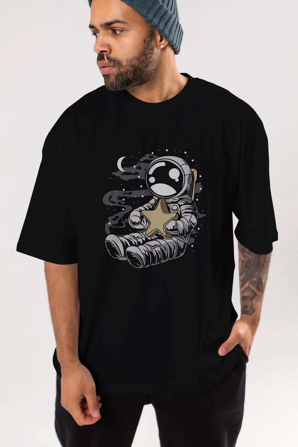 Astronaut Holding The Star Ön Baskılı Oversize t-shirt Erkek Kadın Unisex