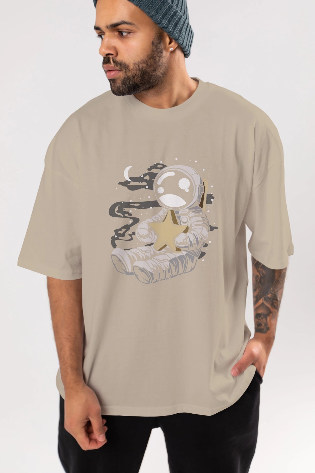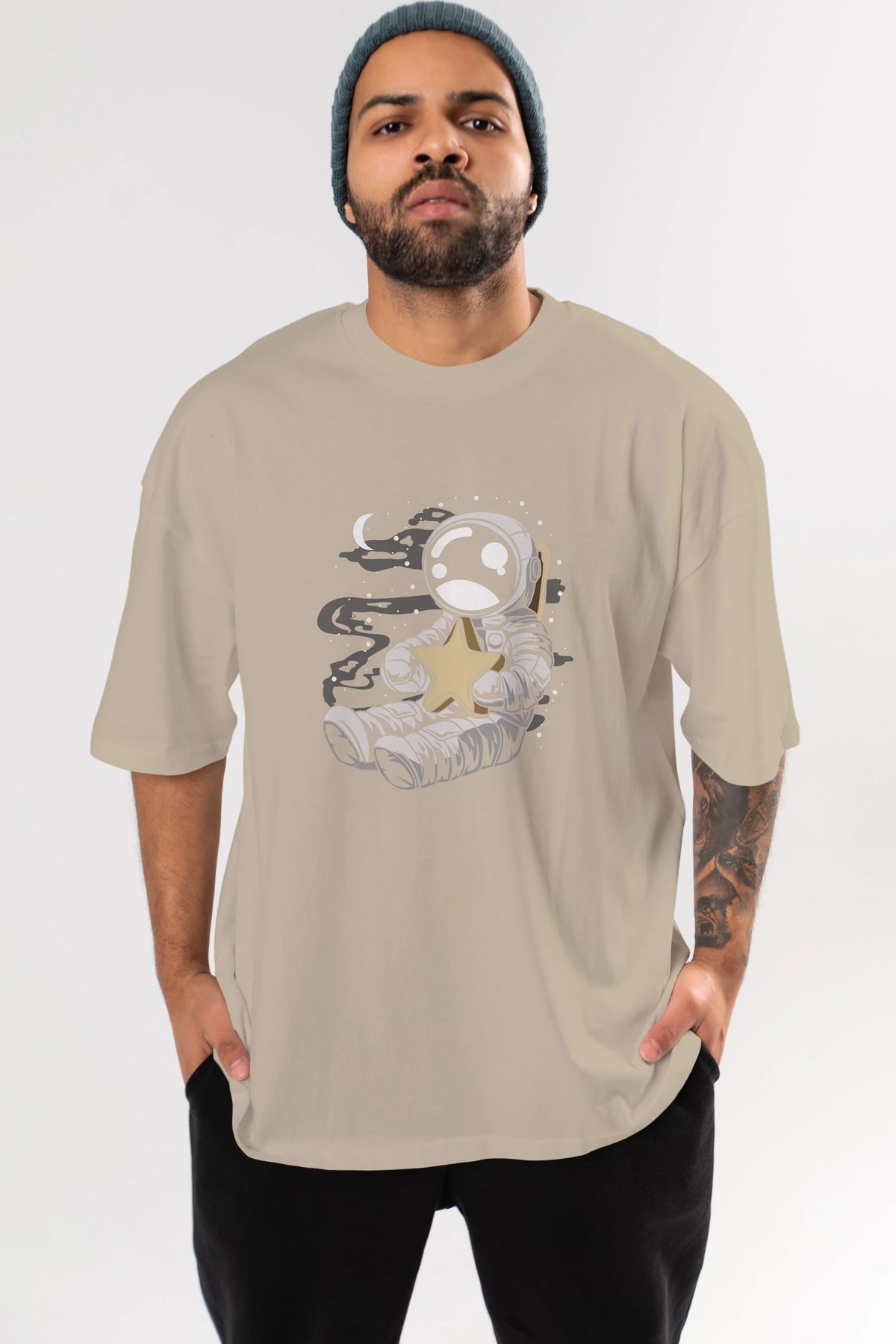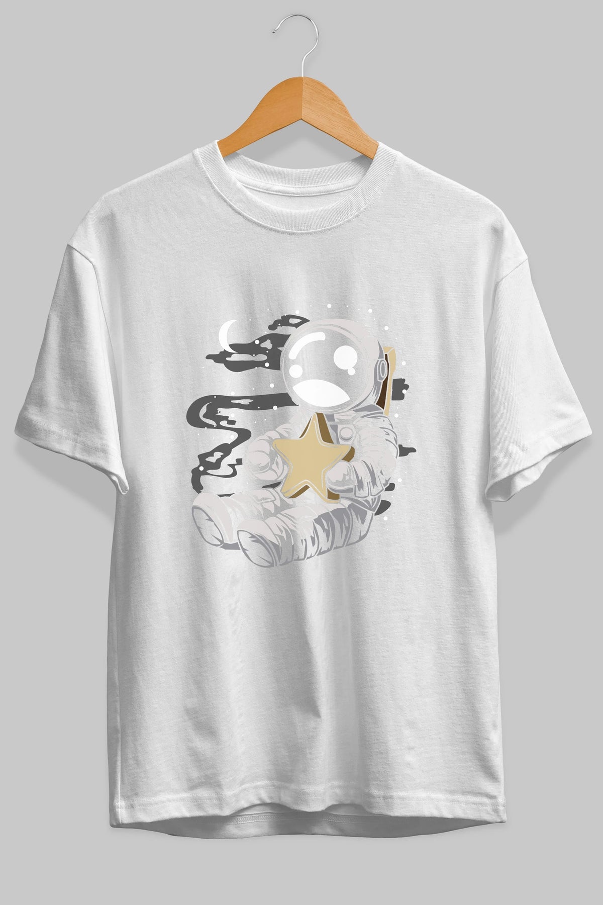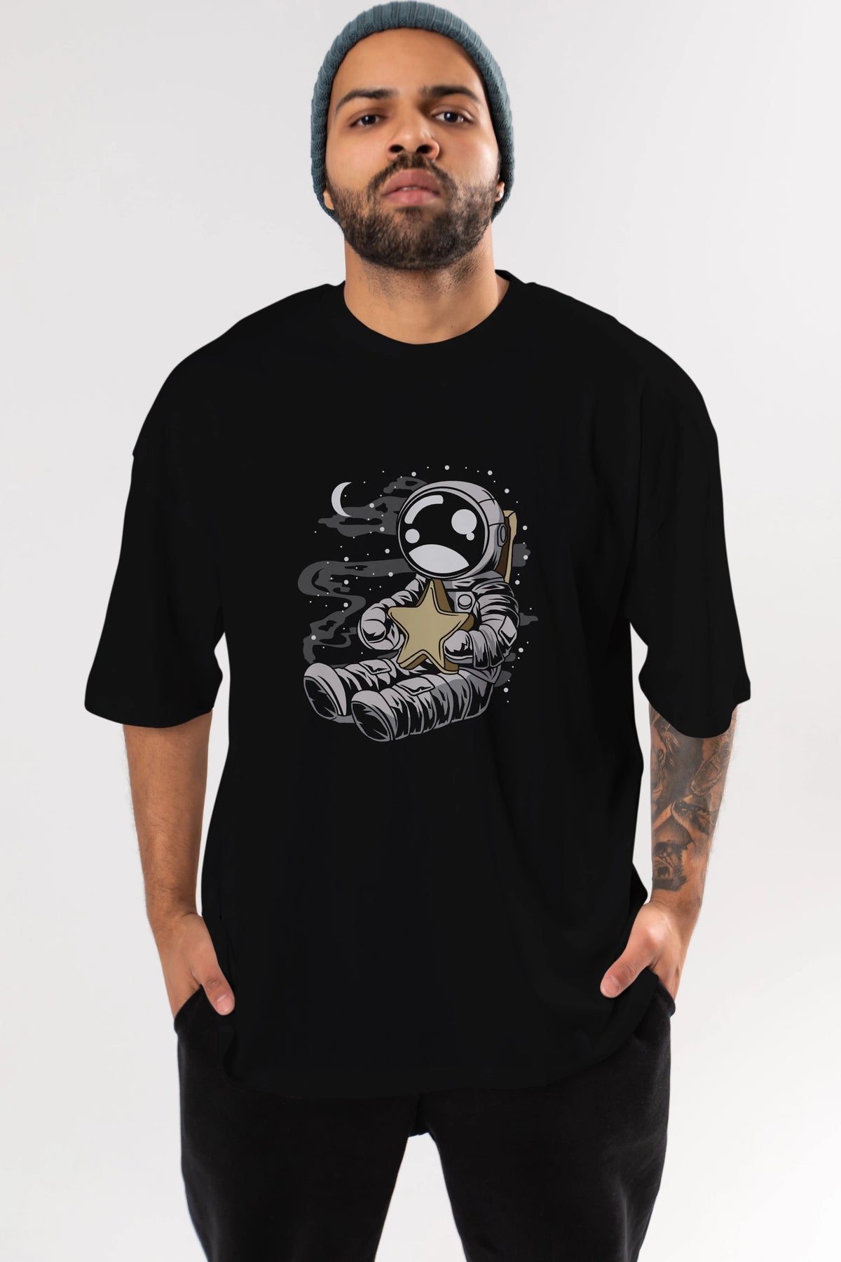 Astronaut Holding The Star Ön Baskılı Oversize t-shirt Erkek Kadın Unisex