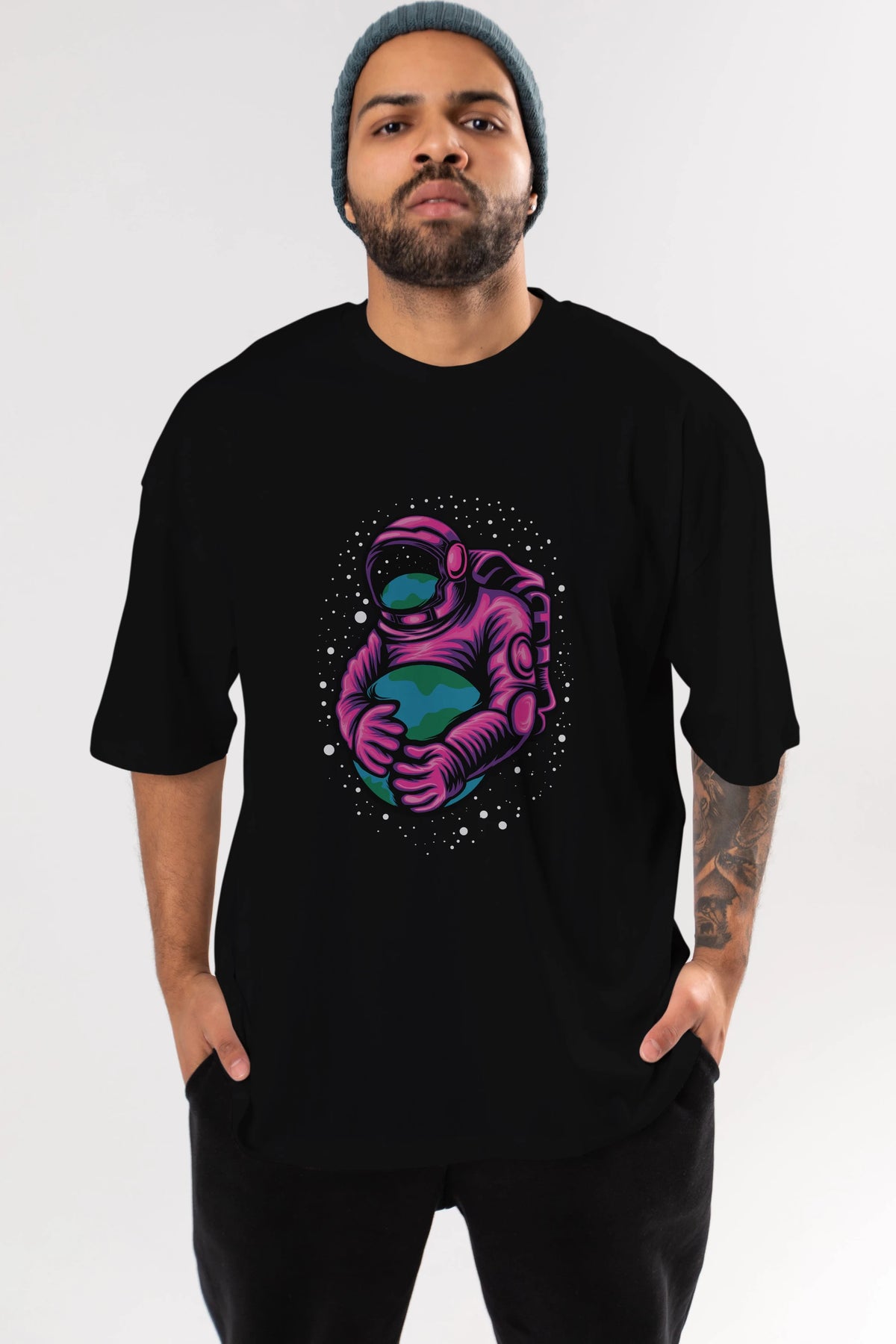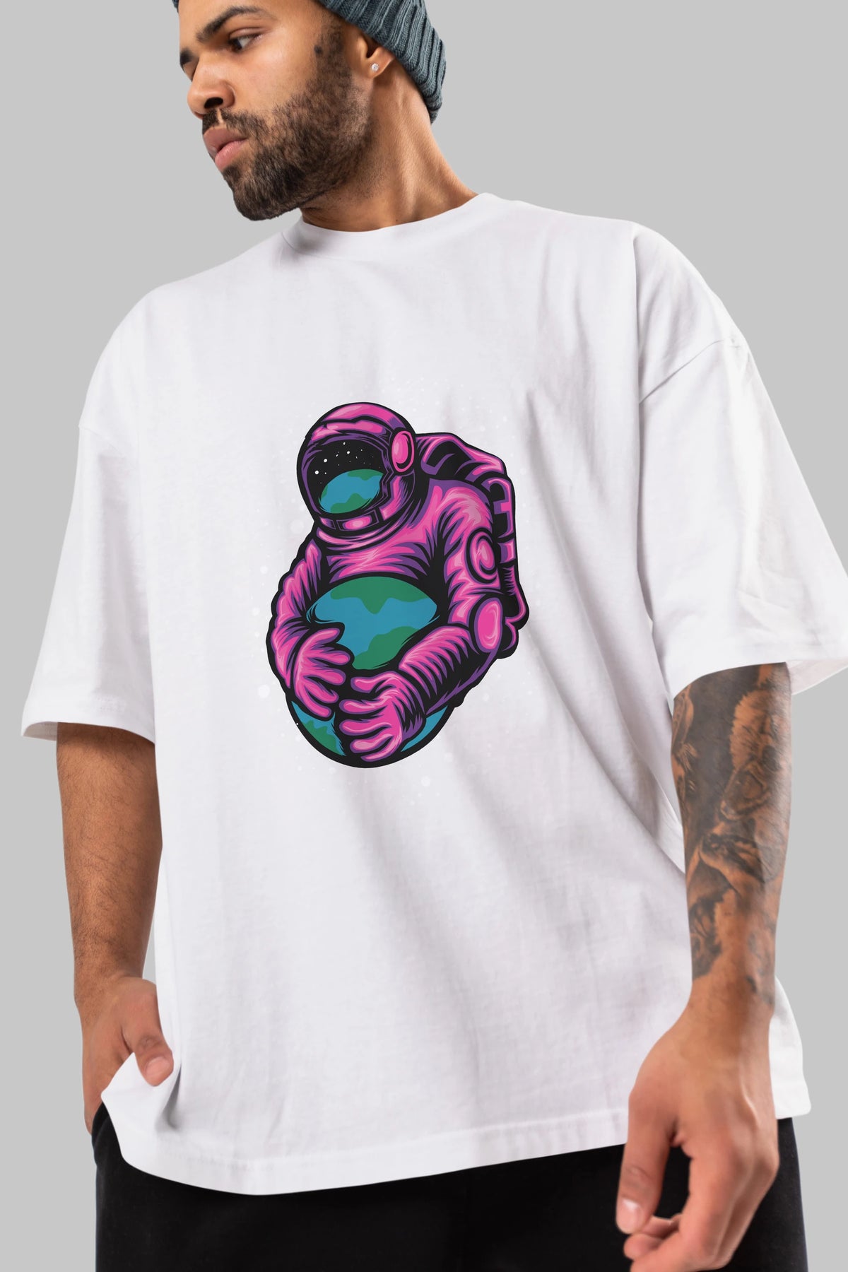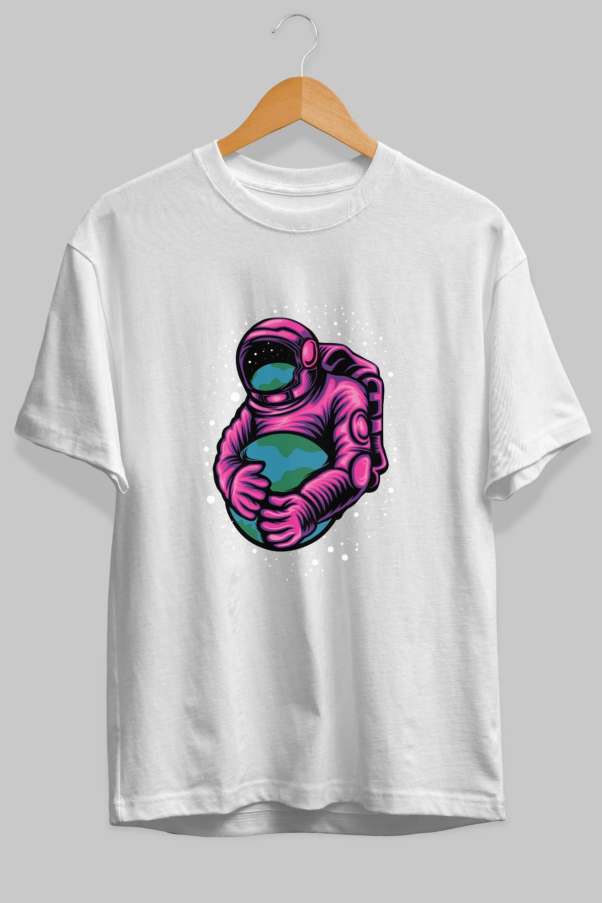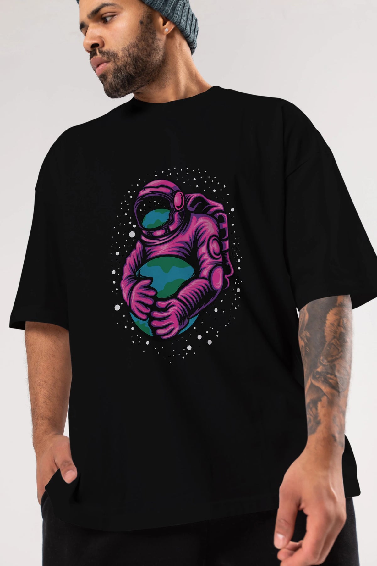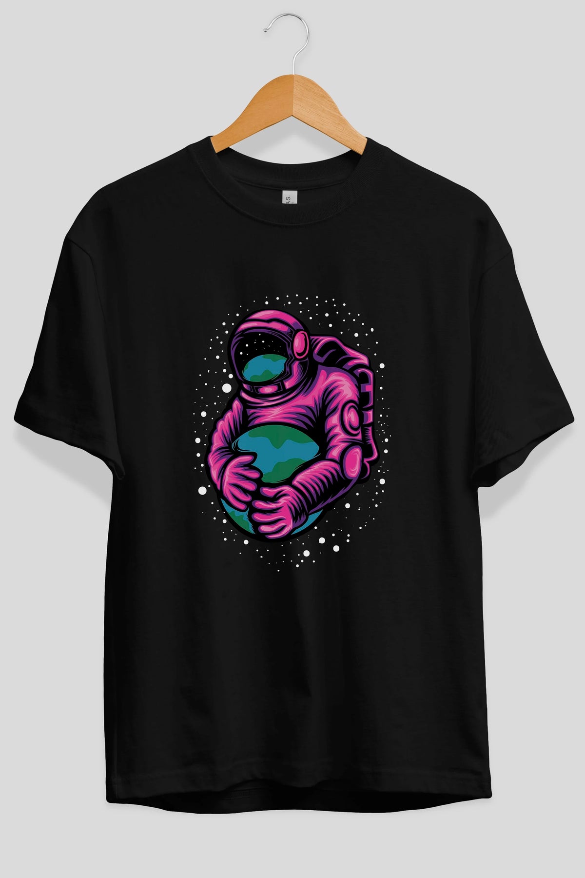 Astronaut Holding Up The Earth Ön Baskılı Oversize t-shirt Erkek Kadın Unisex