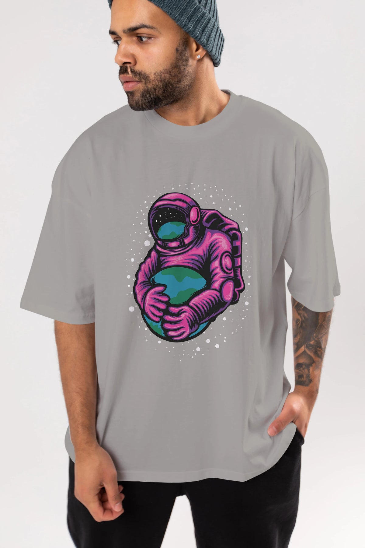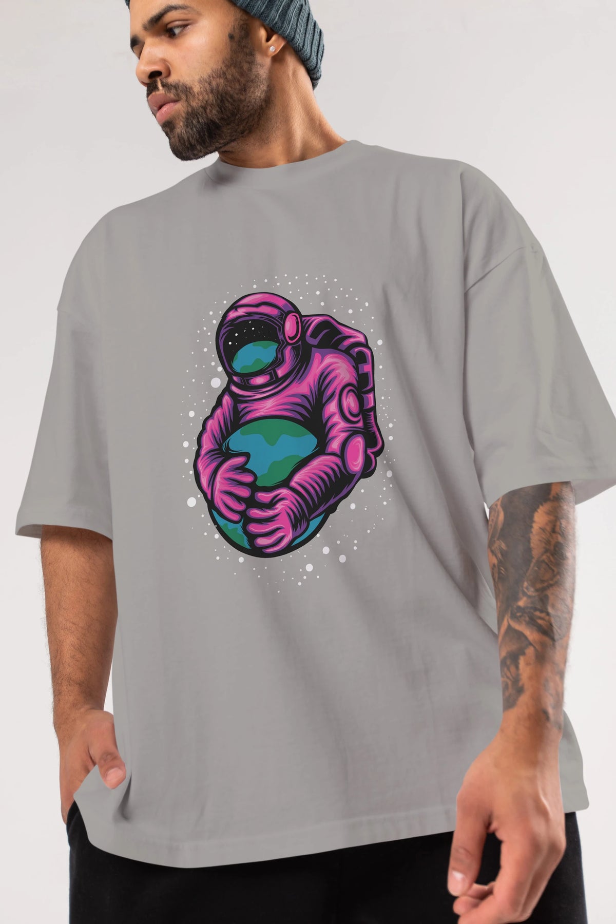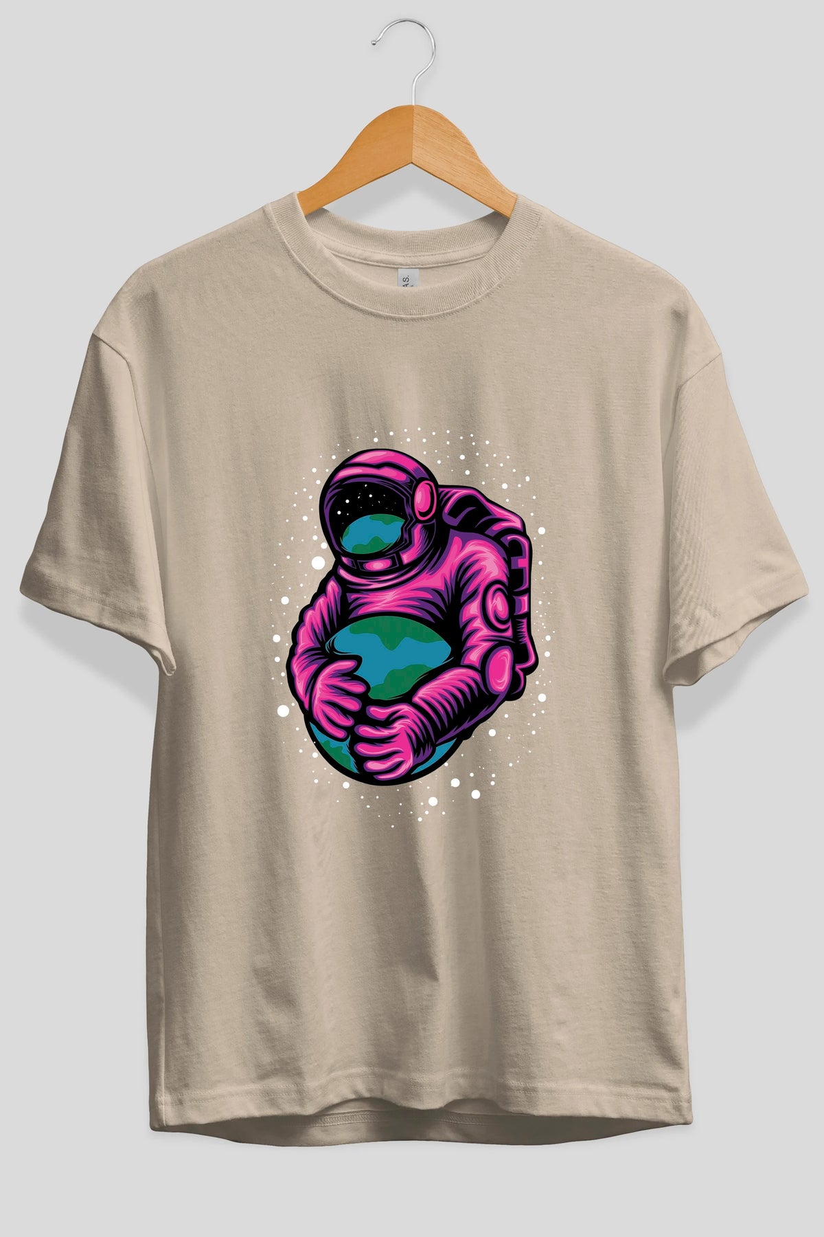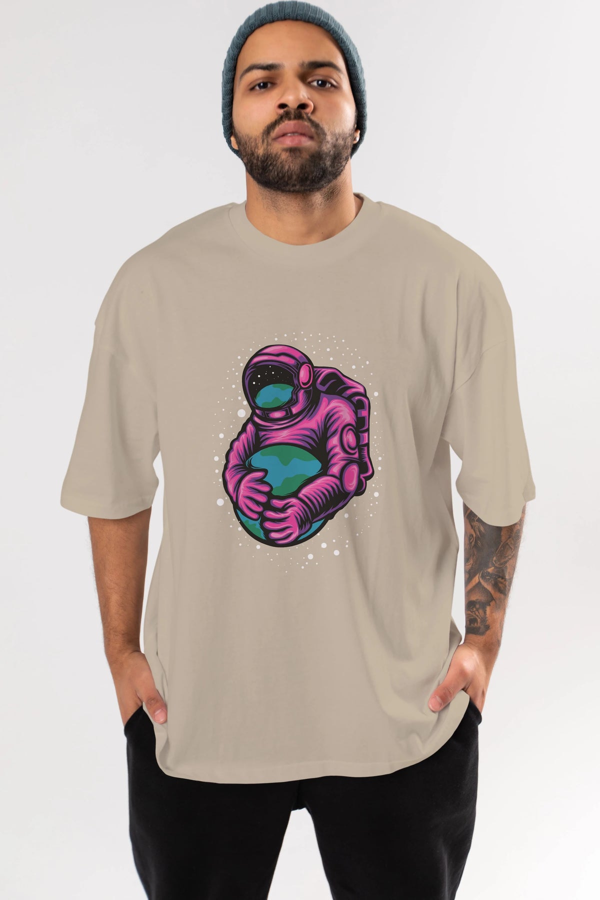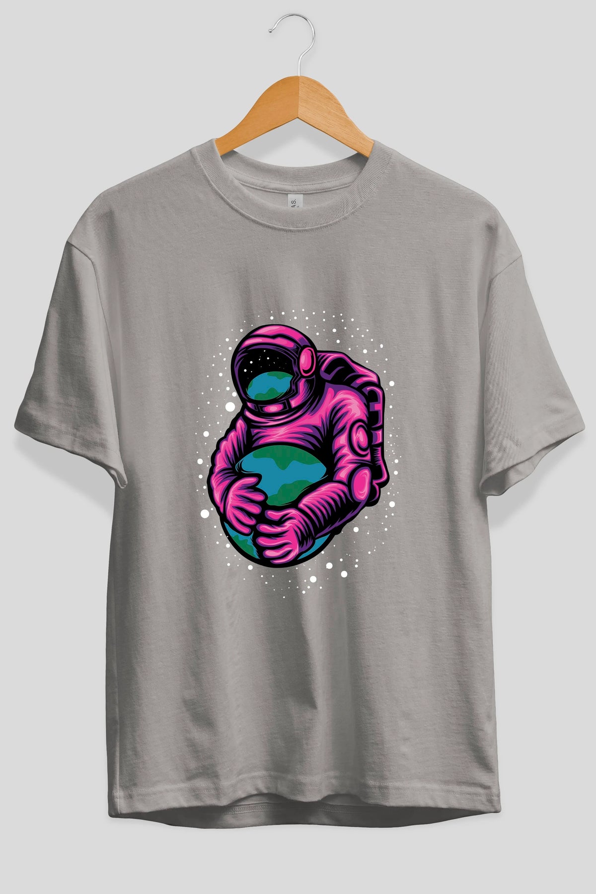 Astronaut Holding Up The Earth Ön Baskılı Oversize t-shirt Erkek Kadın Unisex