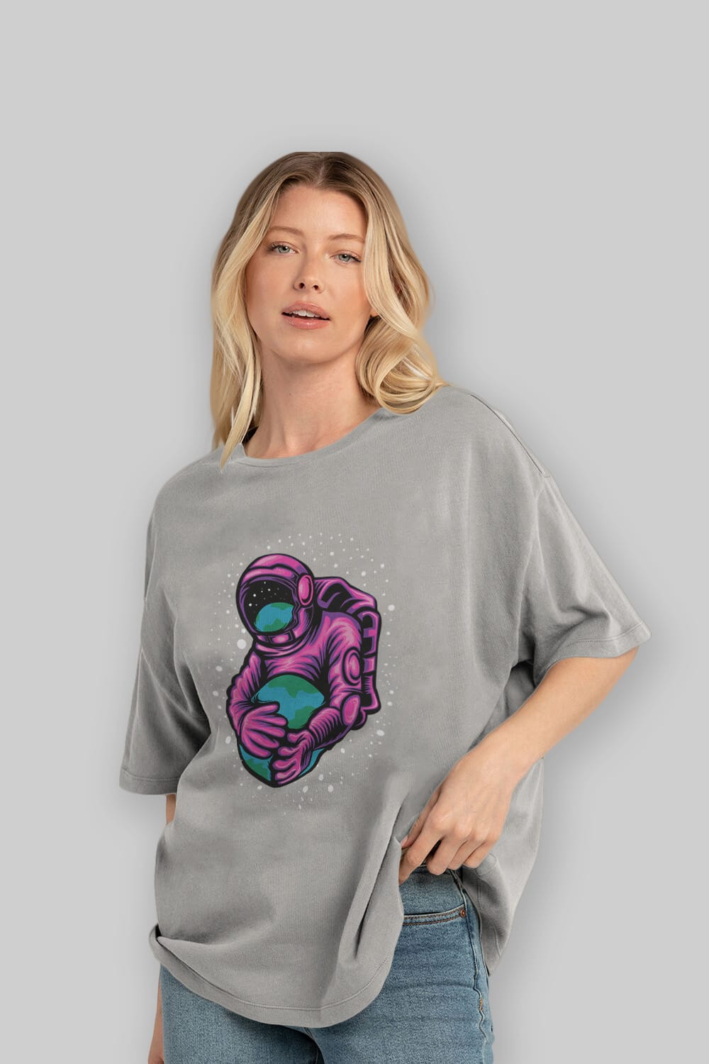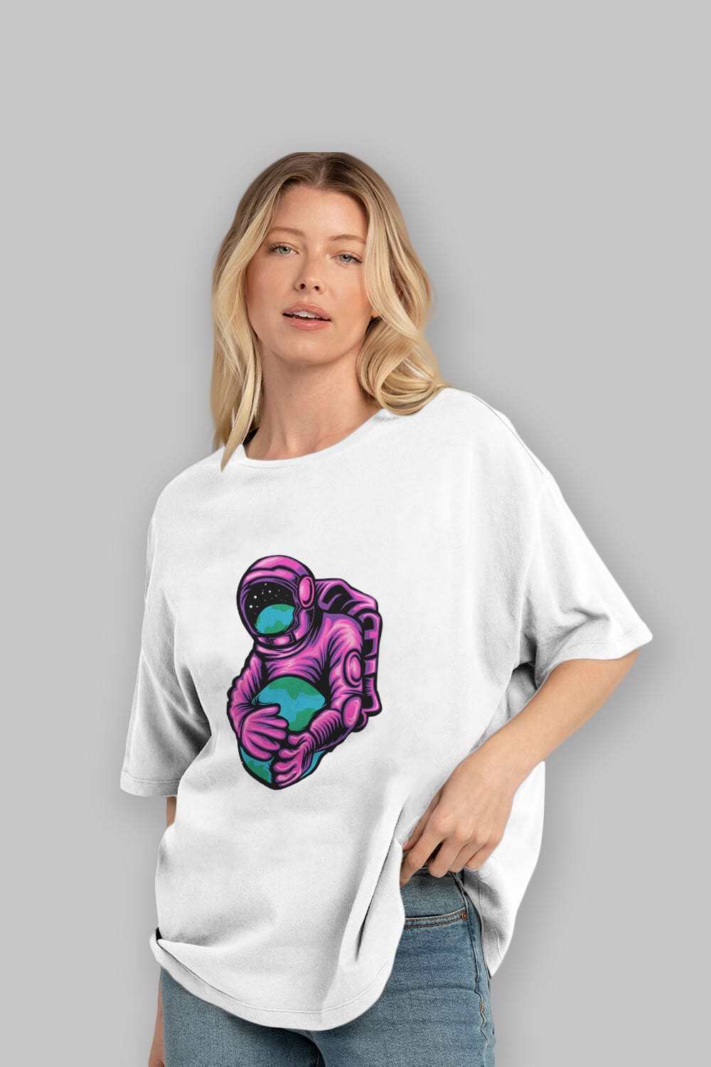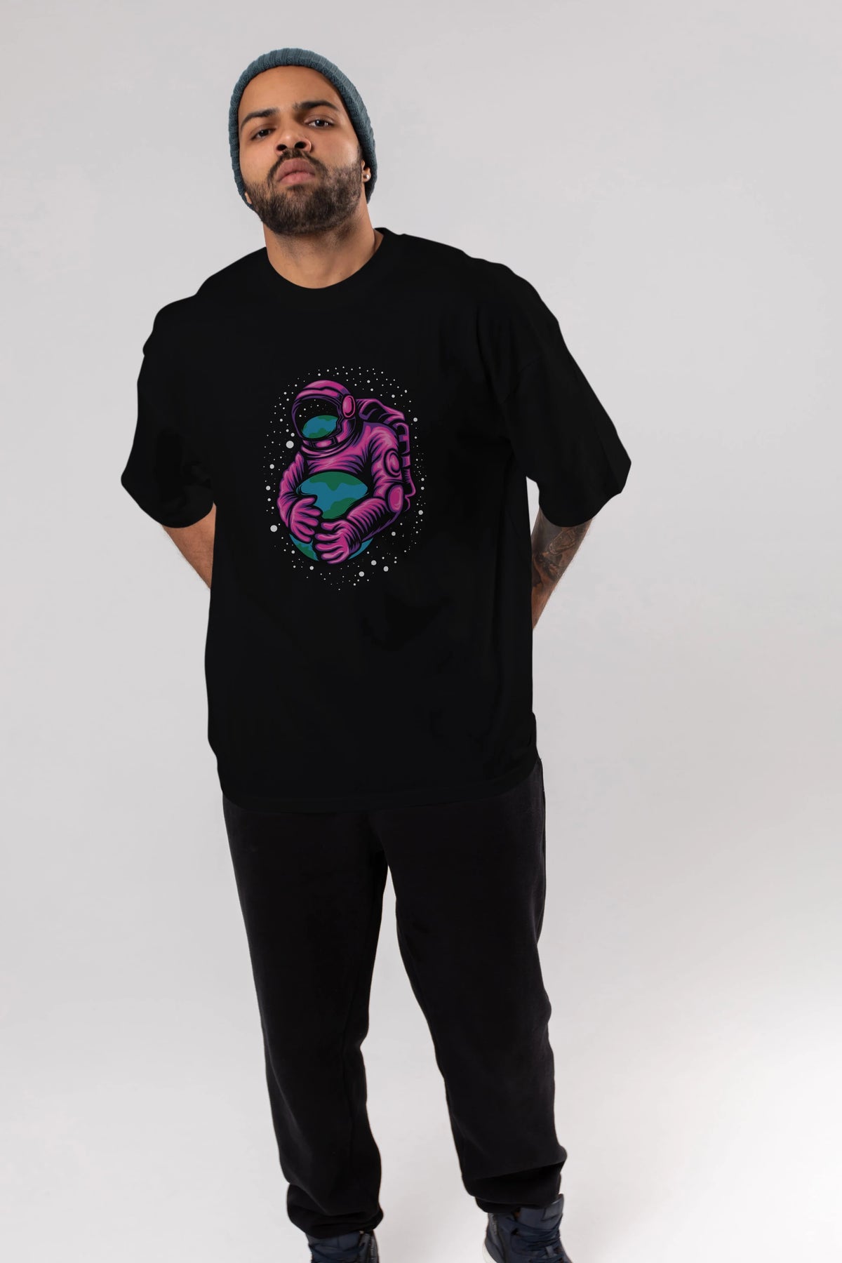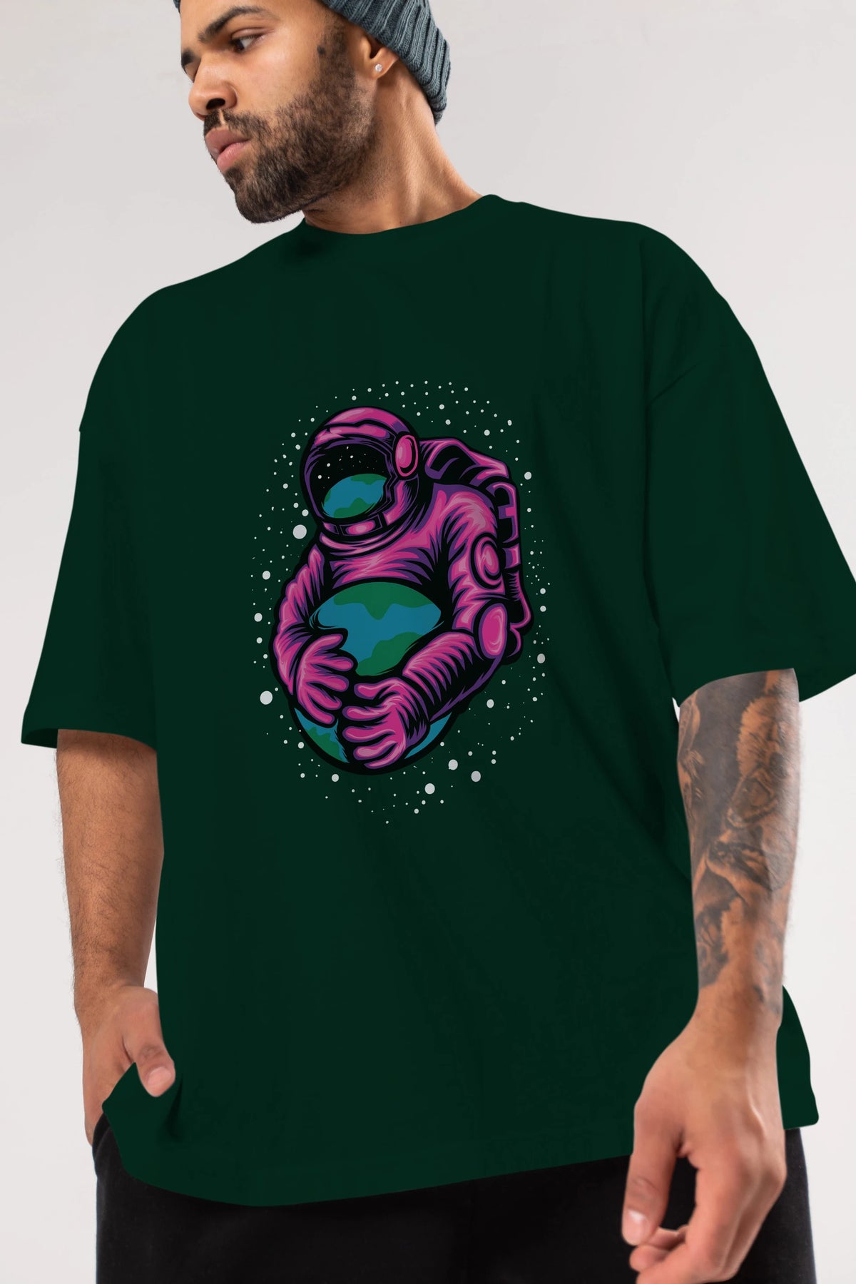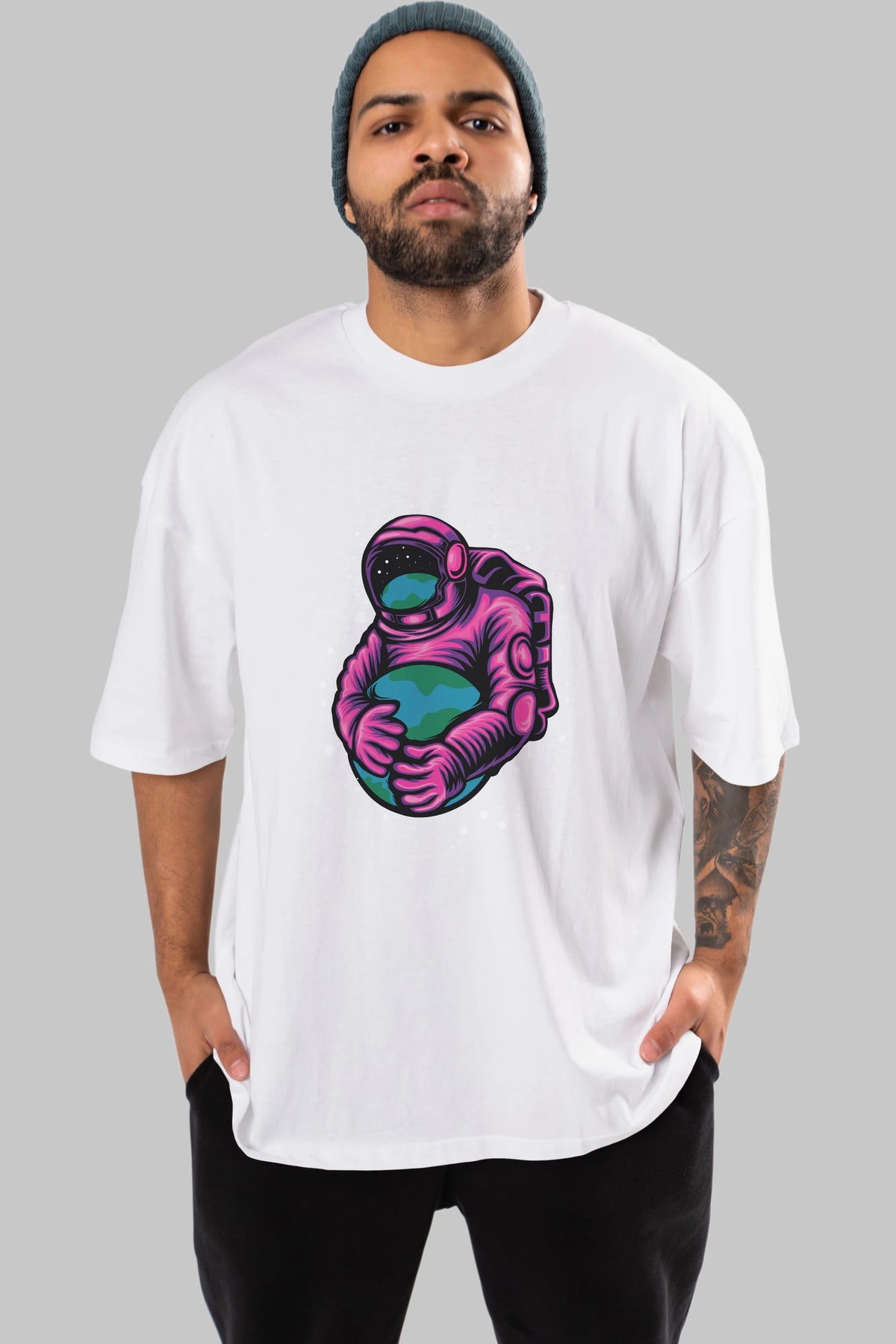 Astronaut Holding Up The Earth Ön Baskılı Oversize t-shirt Erkek Kadın Unisex