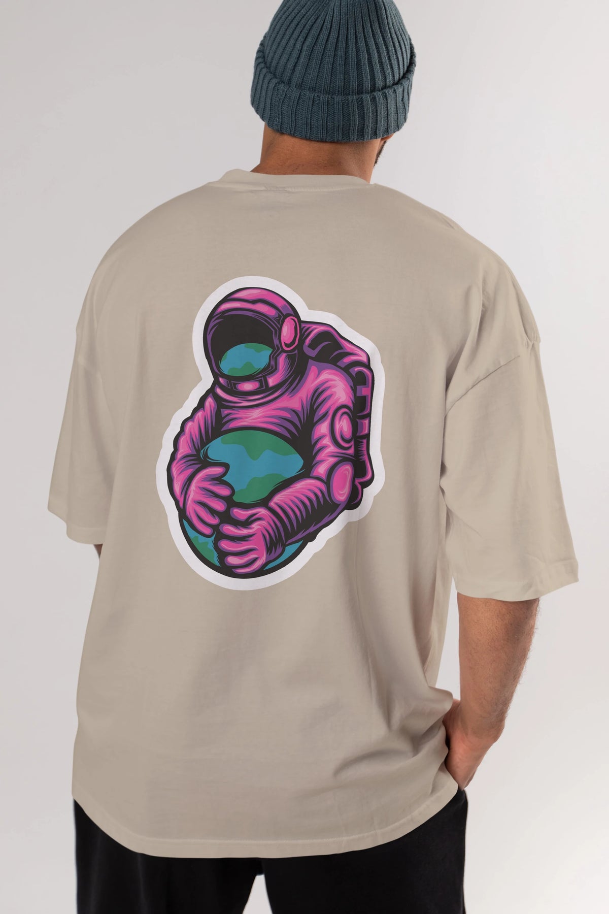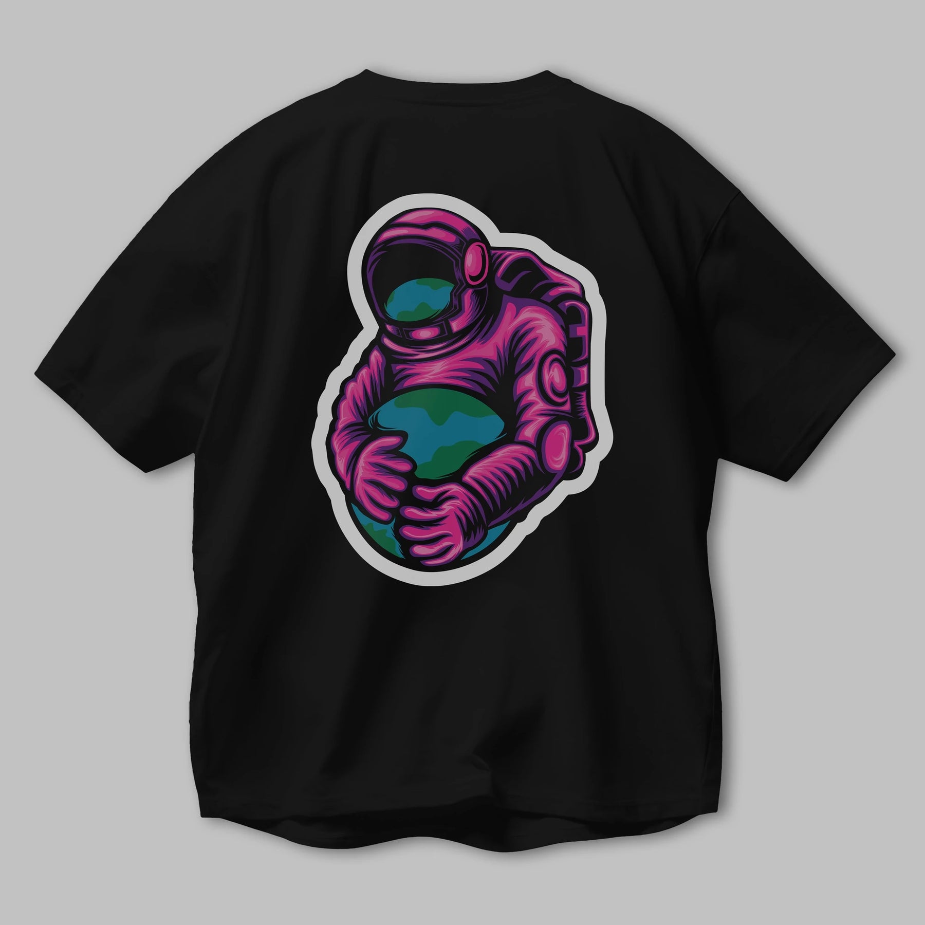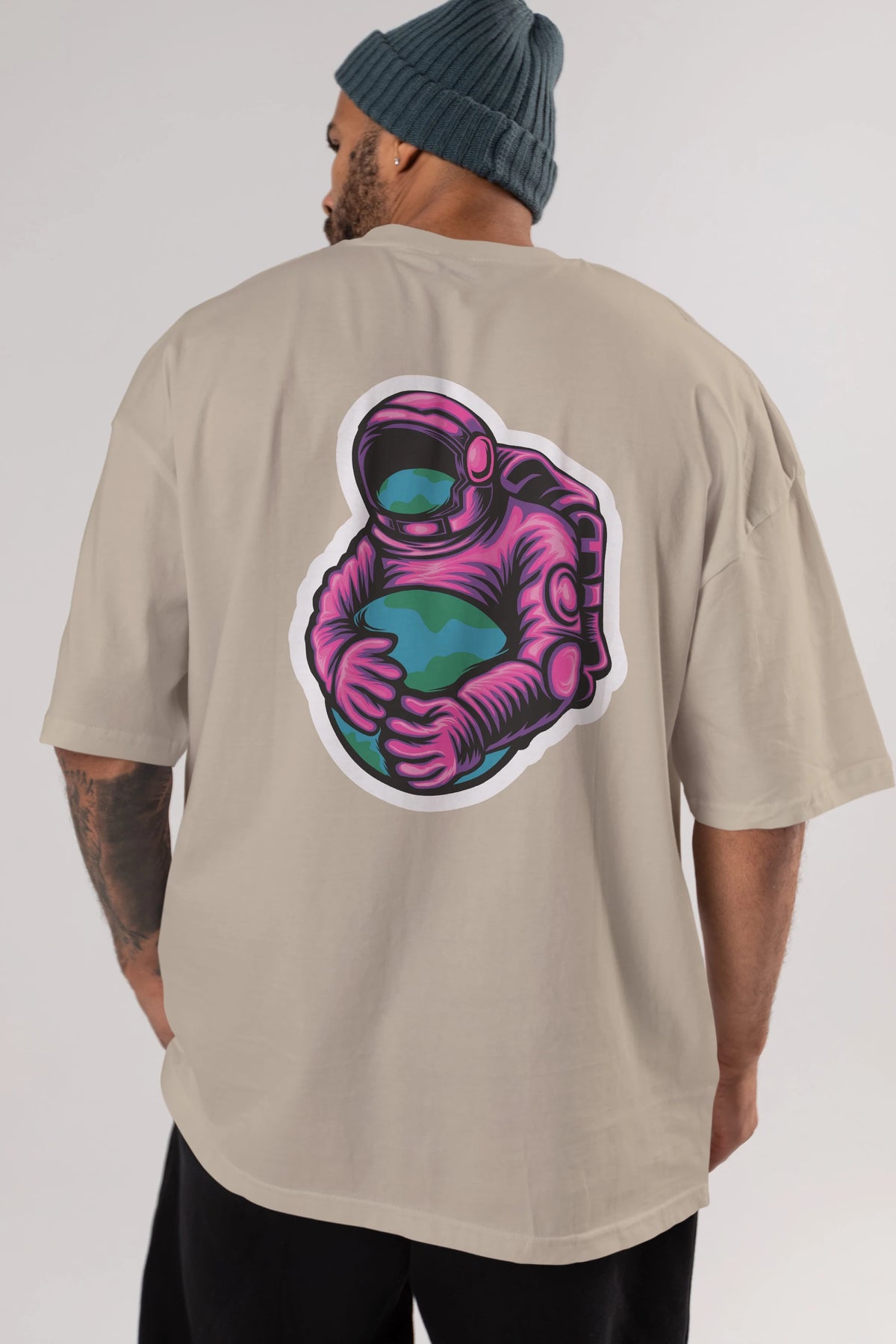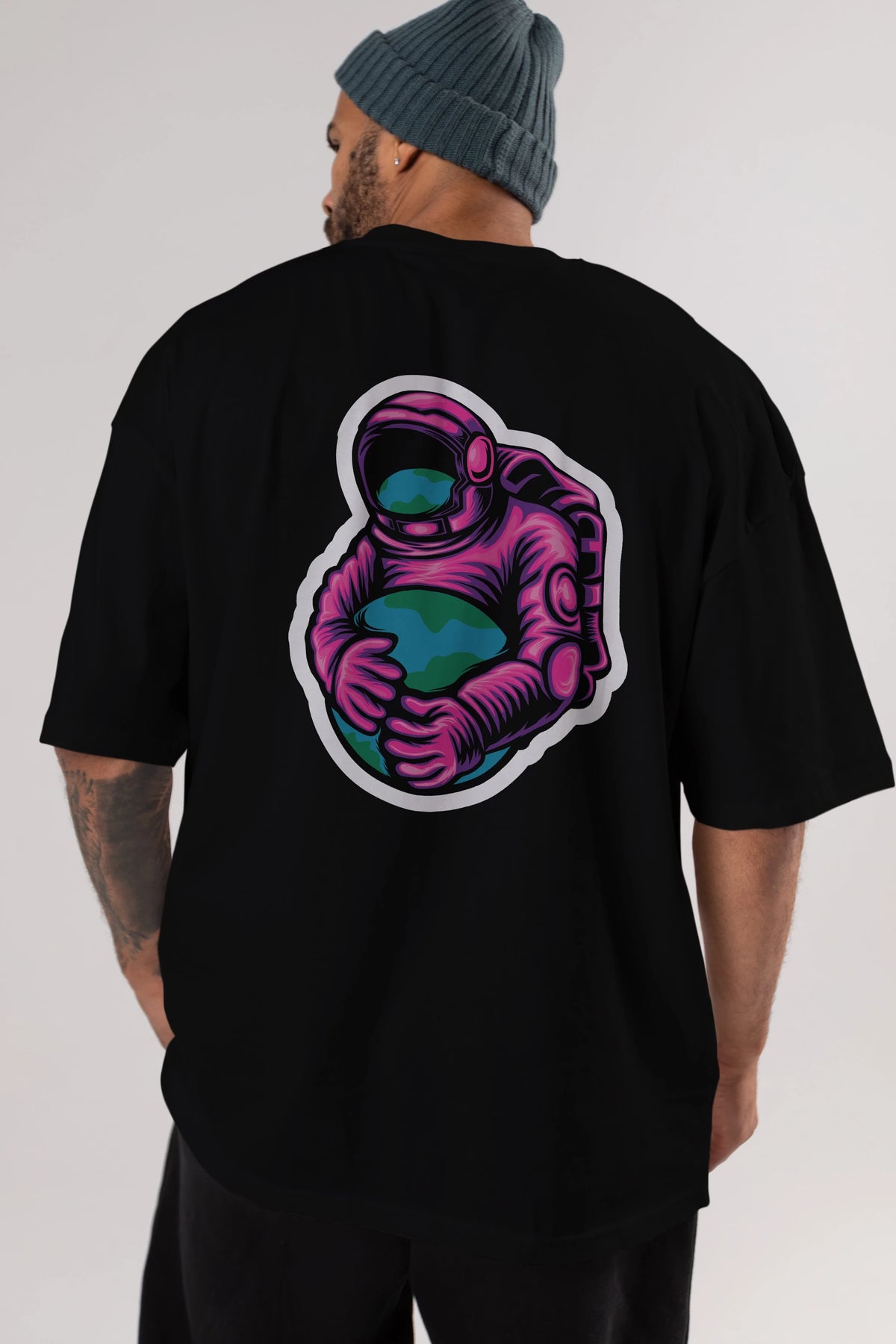Astronaut Holding Up The Earth Sticker Arka Baskılı Oversize t-shirt Erkek Kadın Unisex