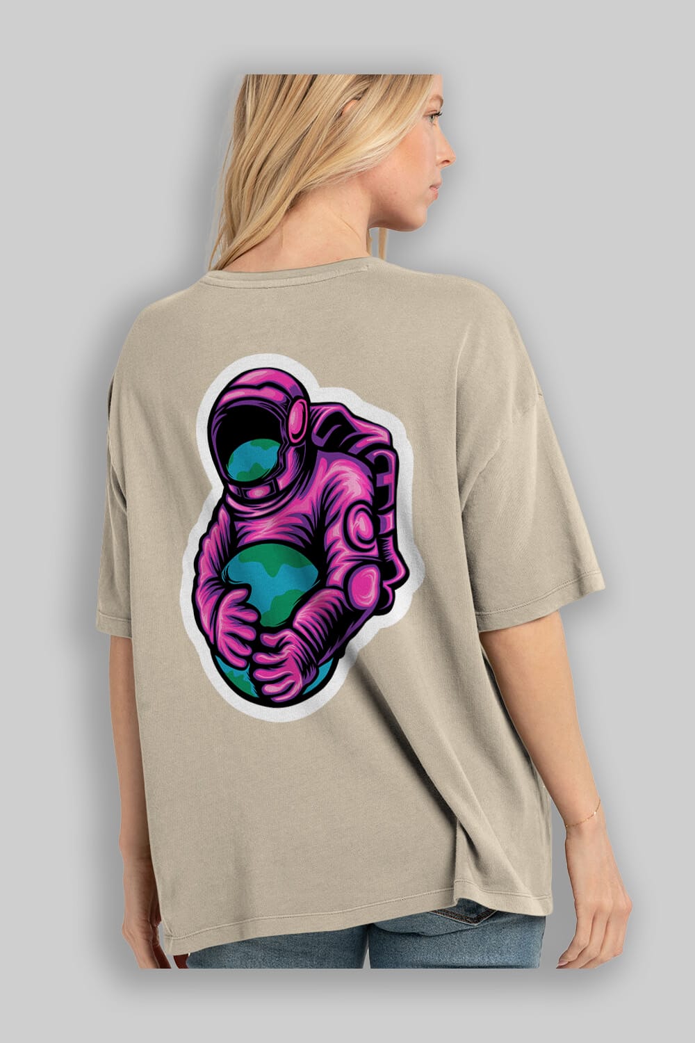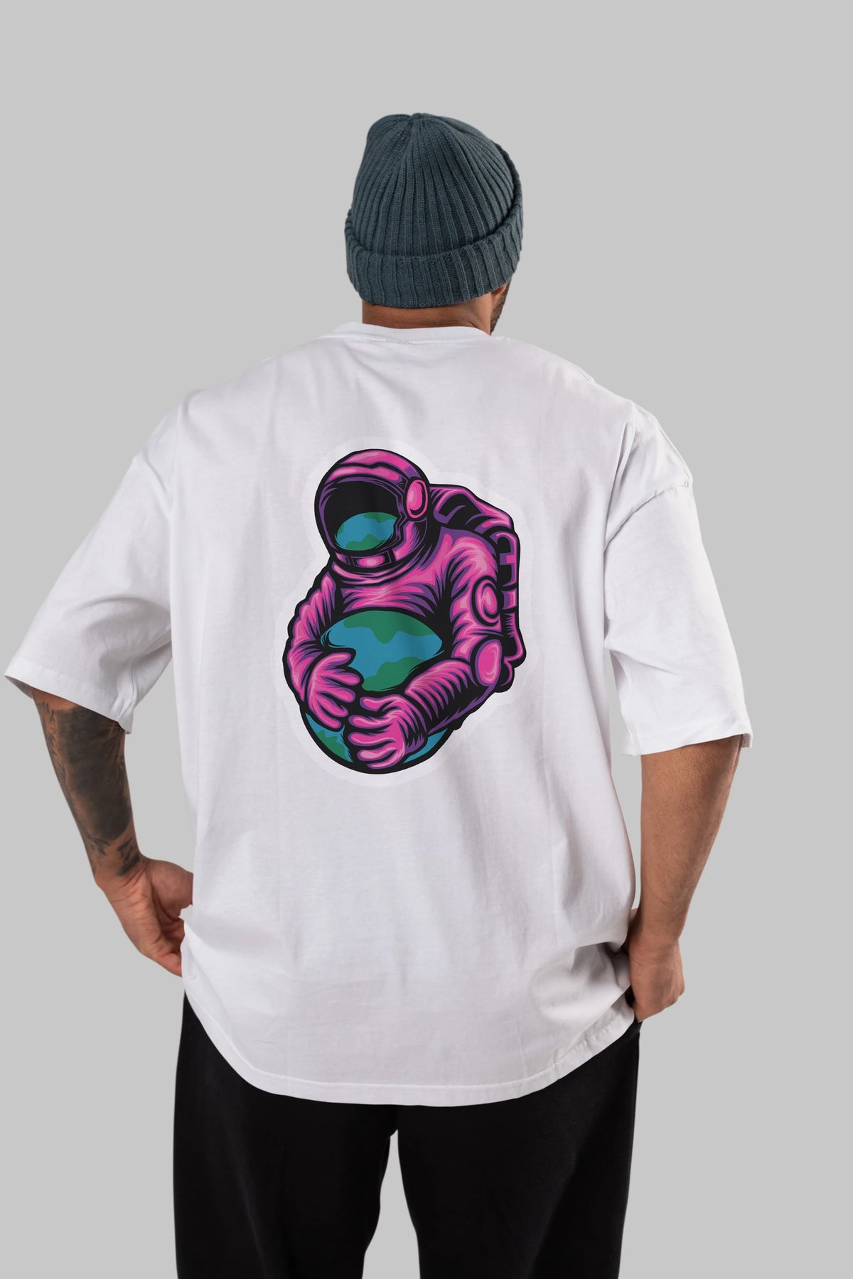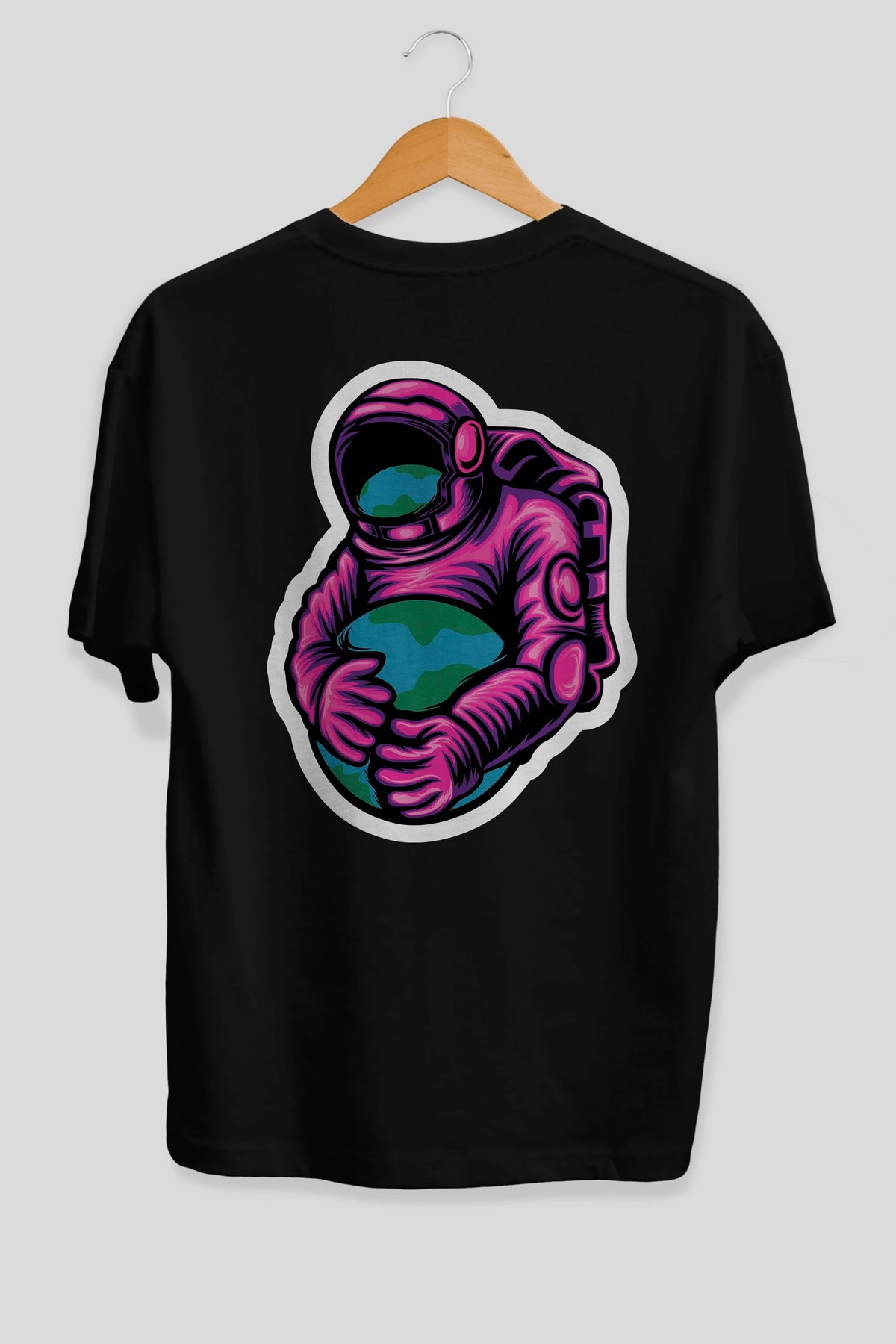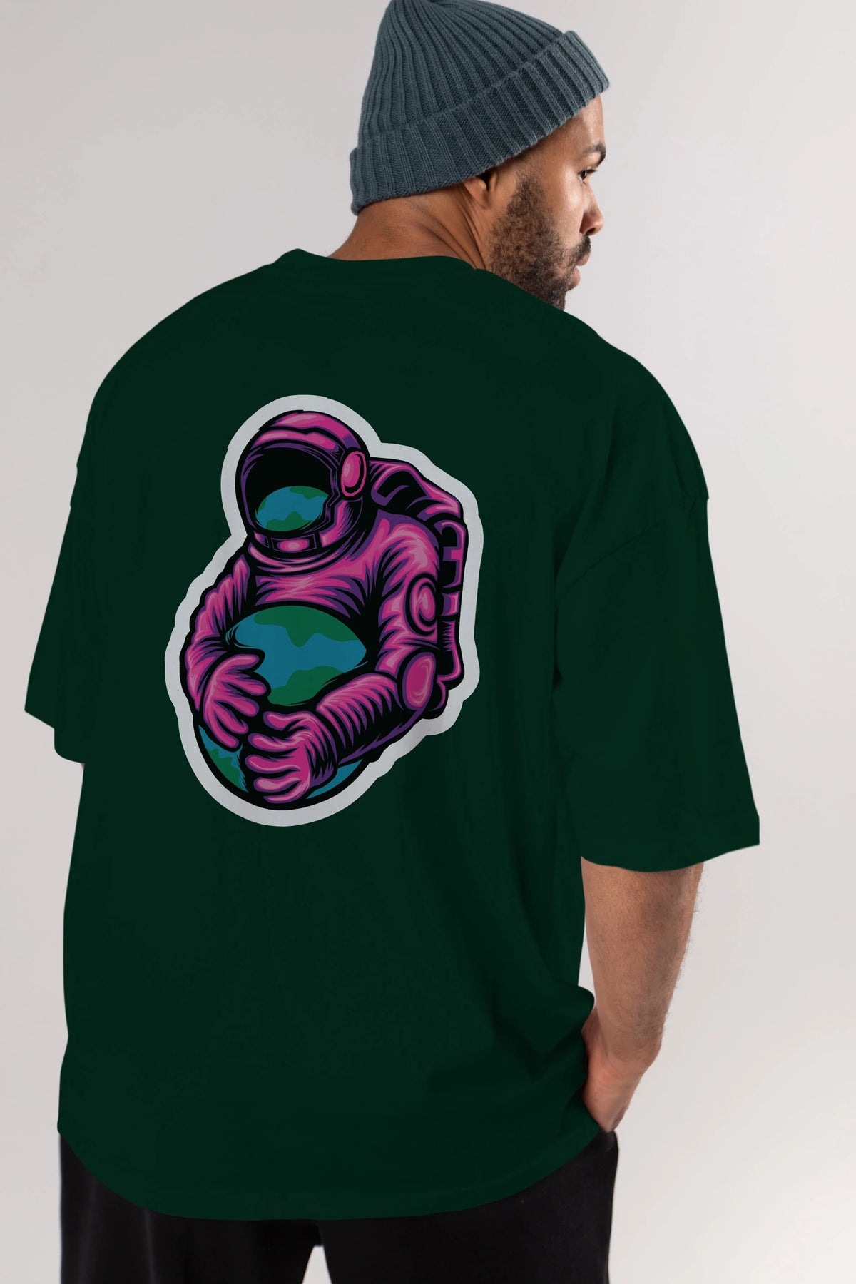 Astronaut Holding Up The Earth Sticker Arka Baskılı Oversize t-shirt Erkek Kadın Unisex
