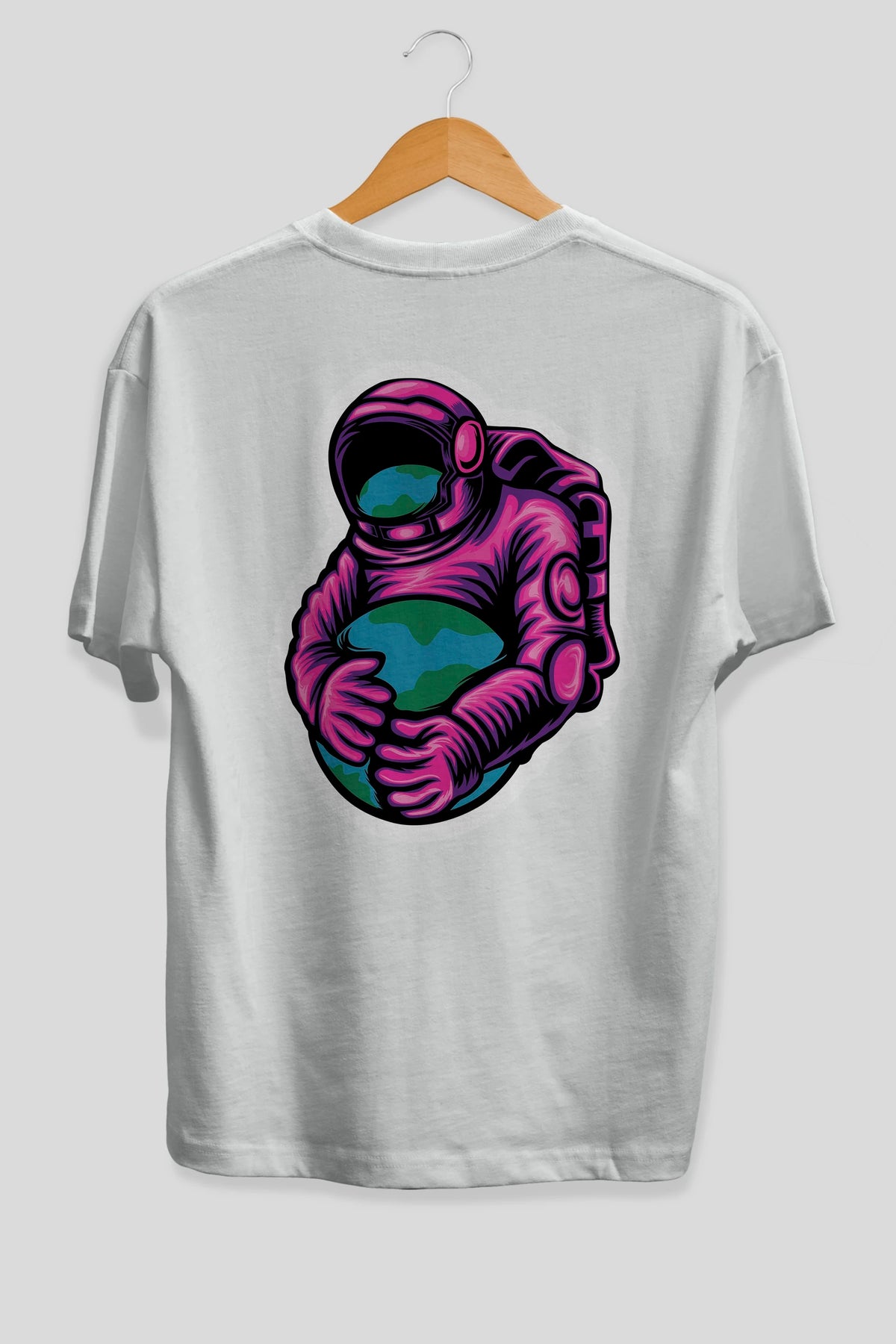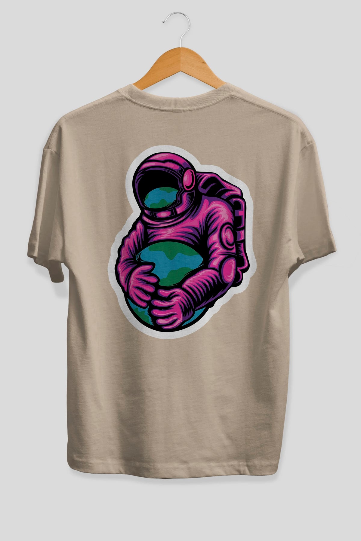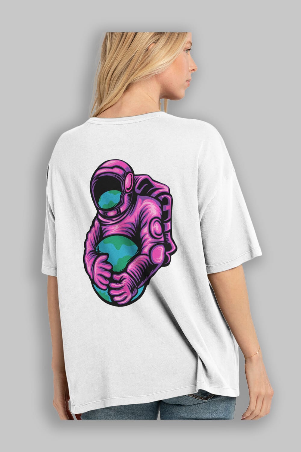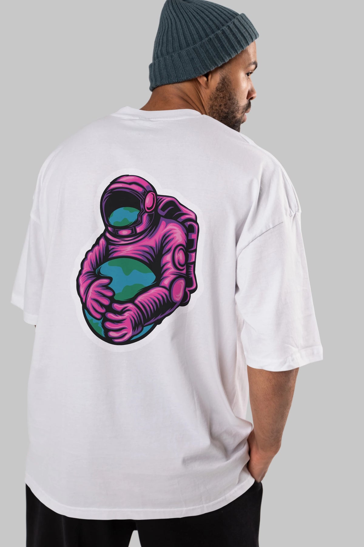 Astronaut Holding Up The Earth Sticker Arka Baskılı Oversize t-shirt Erkek Kadın Unisex