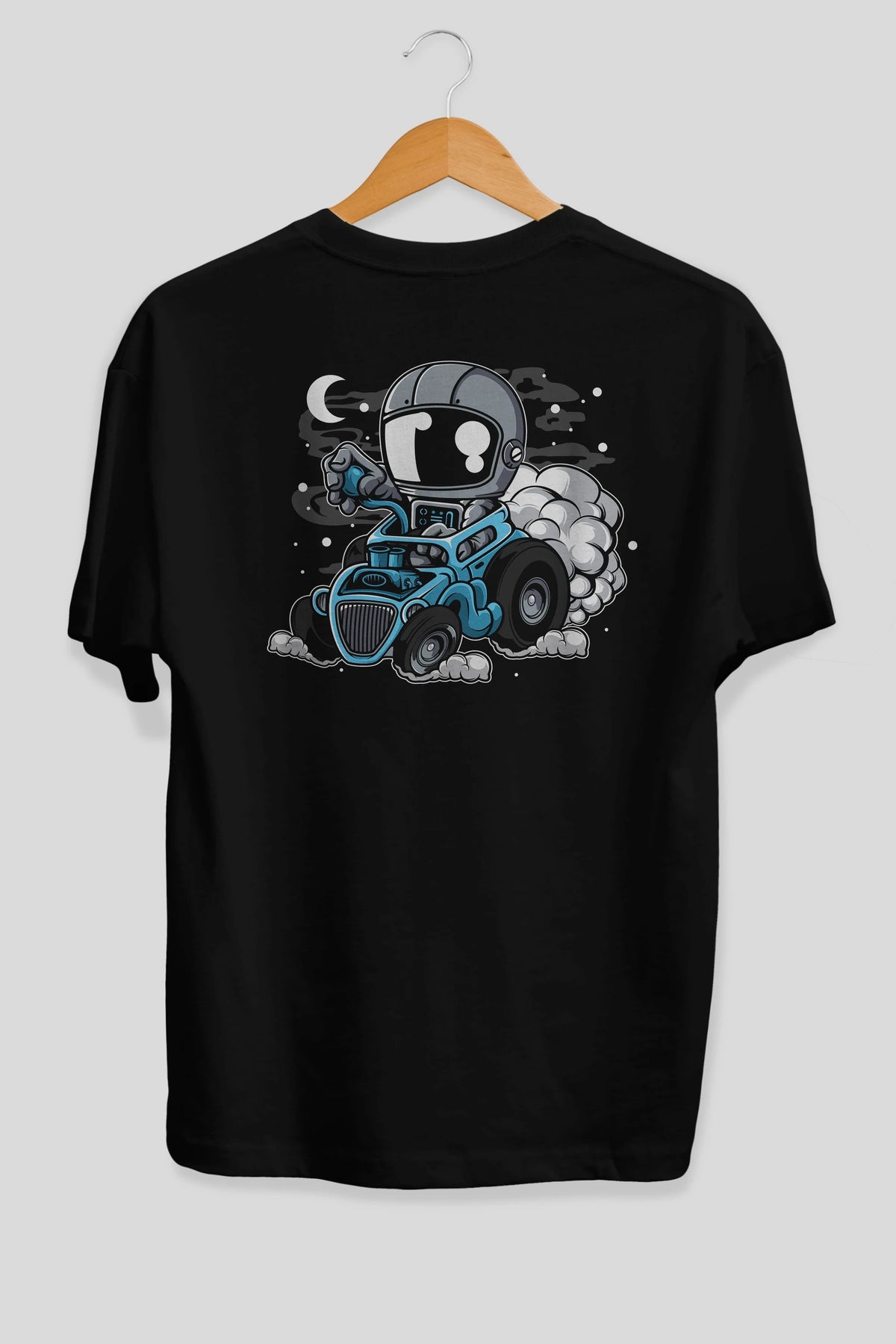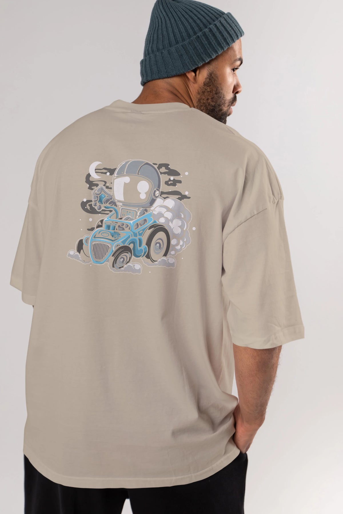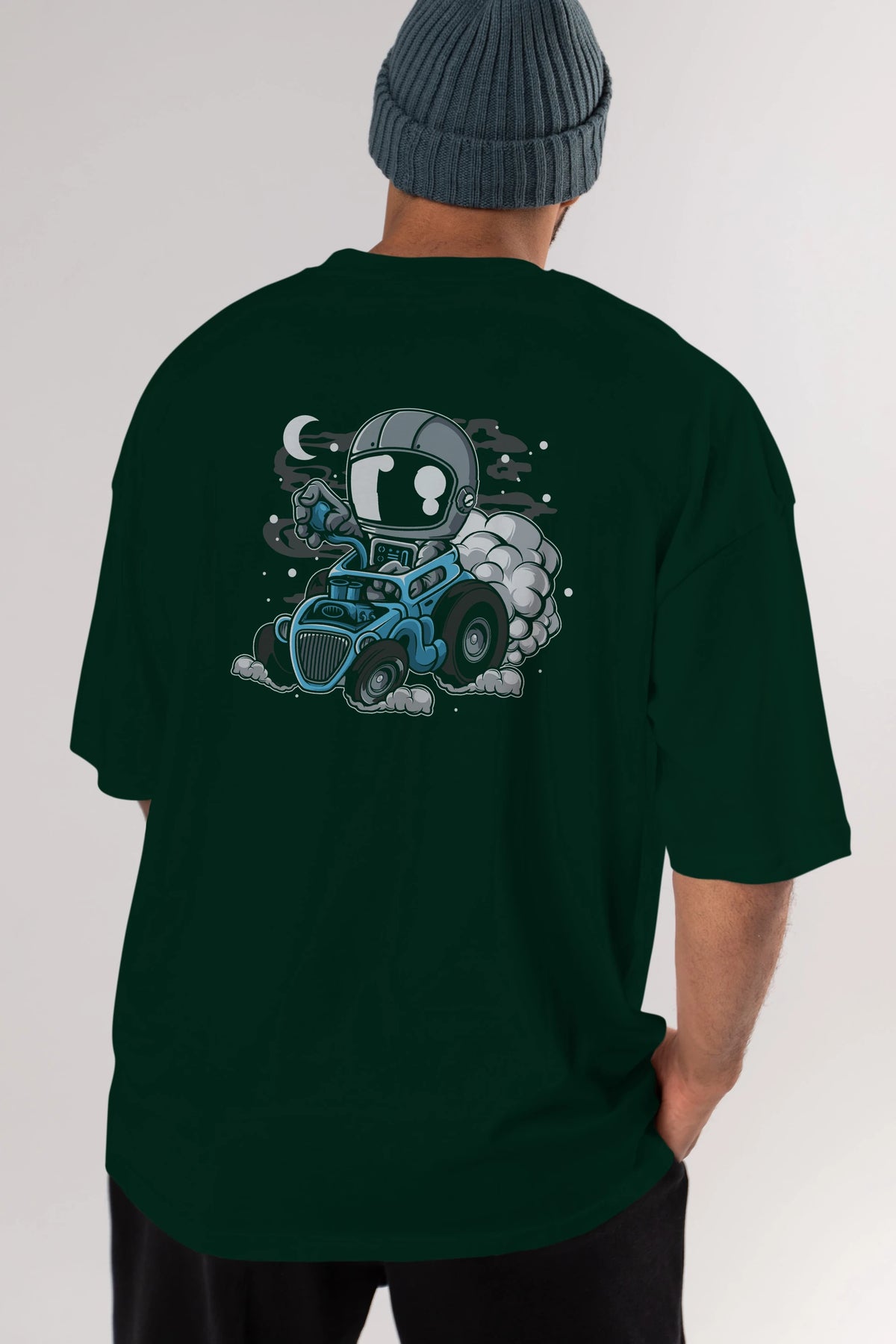Astronaut Hotrod Arka Baskılı Oversize t-shirt Erkek Kadın Unisex