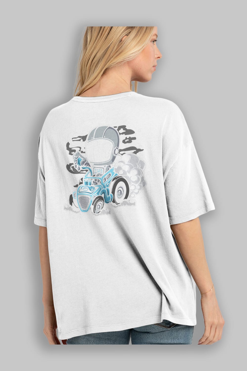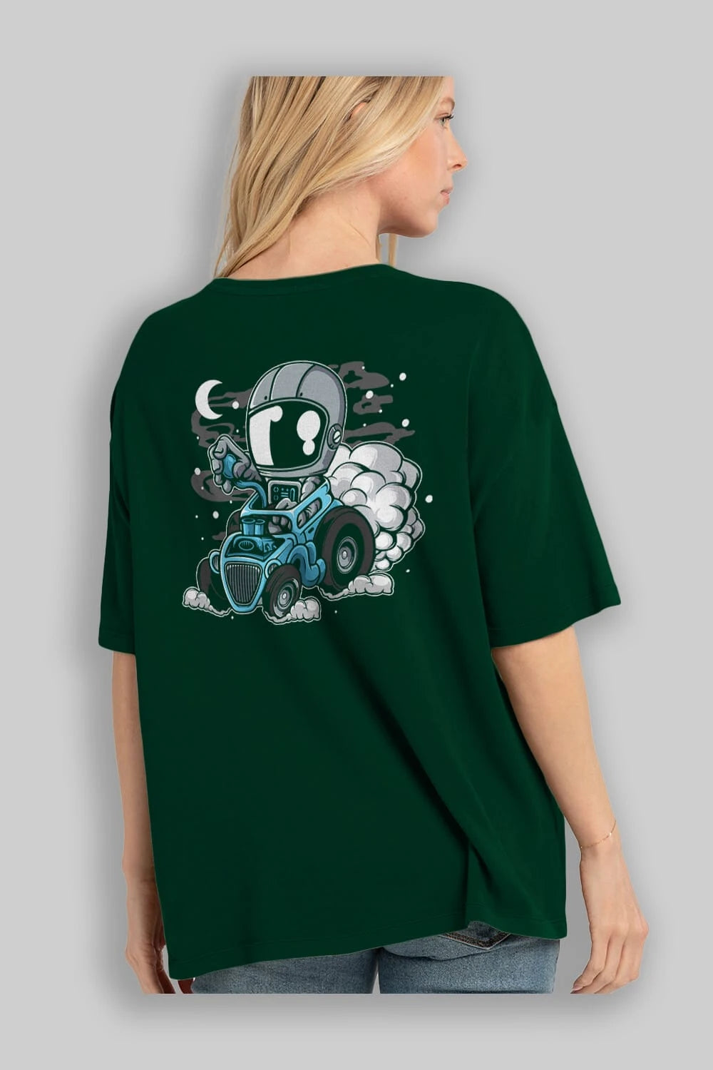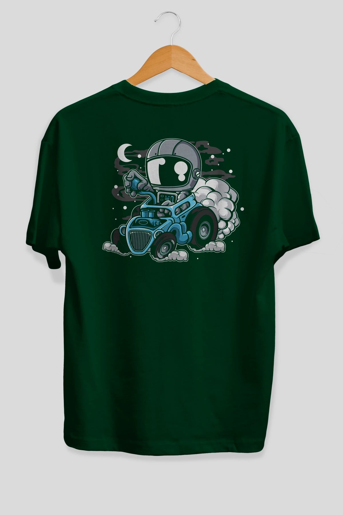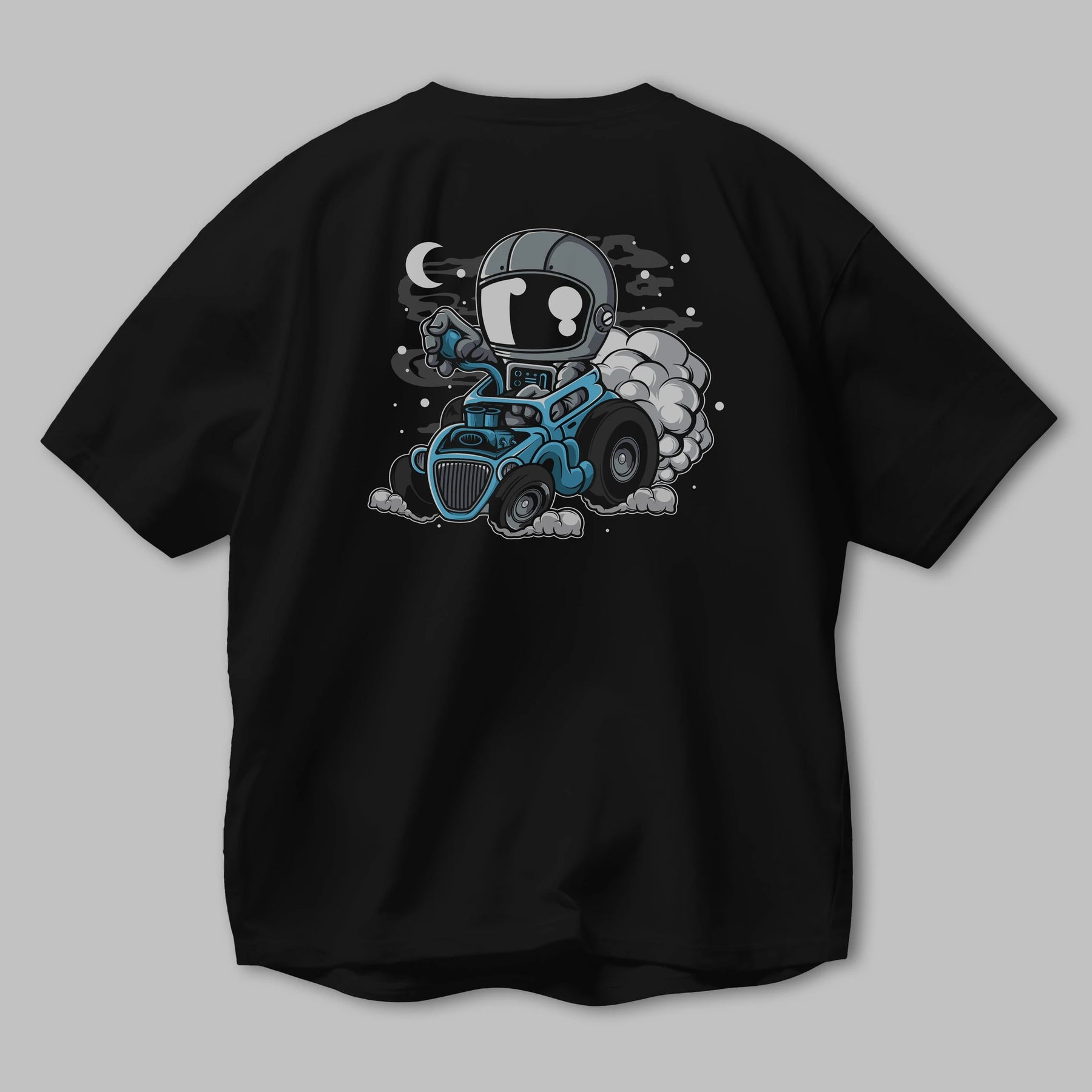 Astronaut Hotrod Arka Baskılı Oversize t-shirt Erkek Kadın Unisex