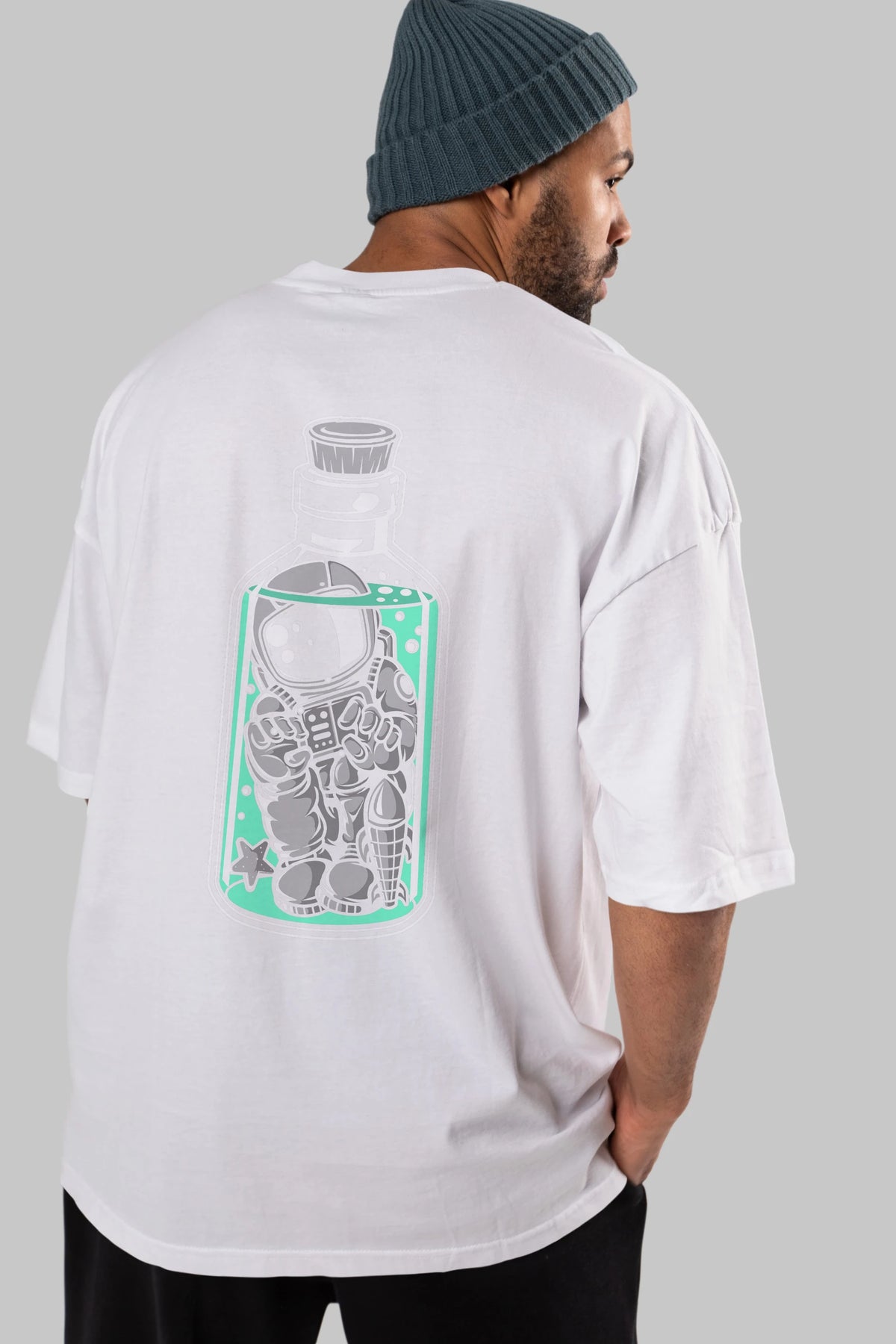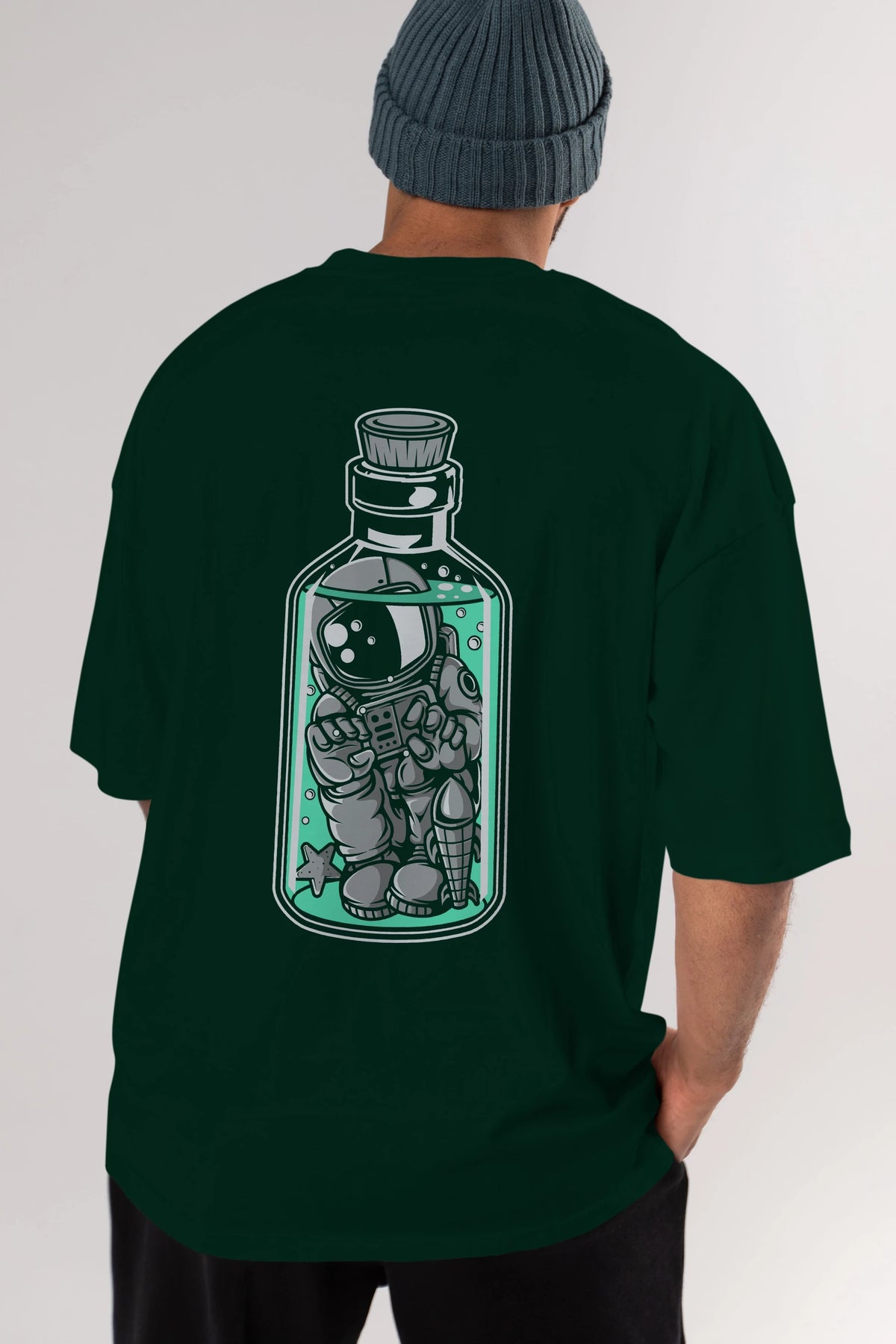 Astronaut in The Bottle Arka Baskılı Oversize t-shirt Erkek Kadın Unisex