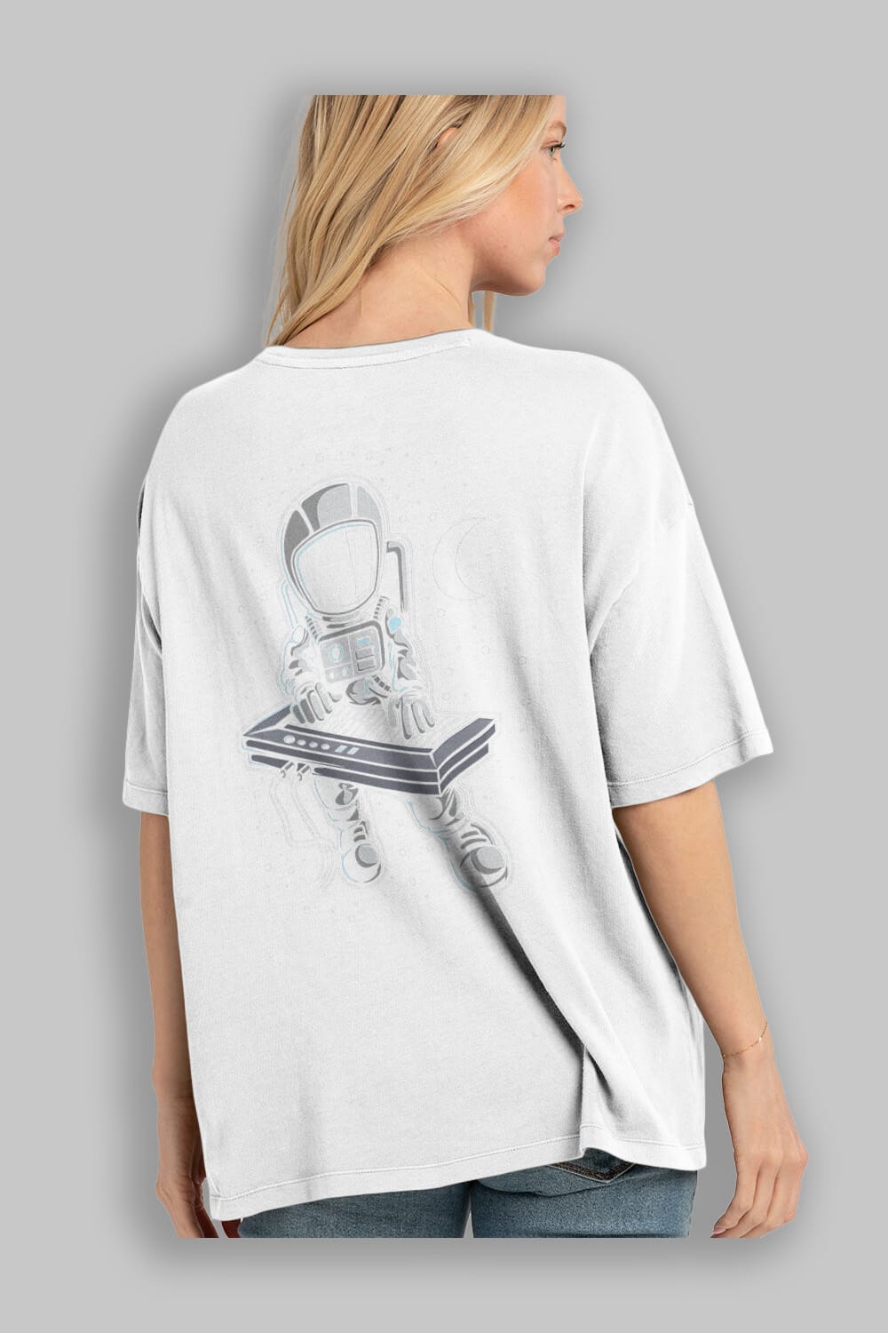 Astronaut Keyboard (2) Arka Baskılı Oversize t-shirt Erkek Kadın Unisex