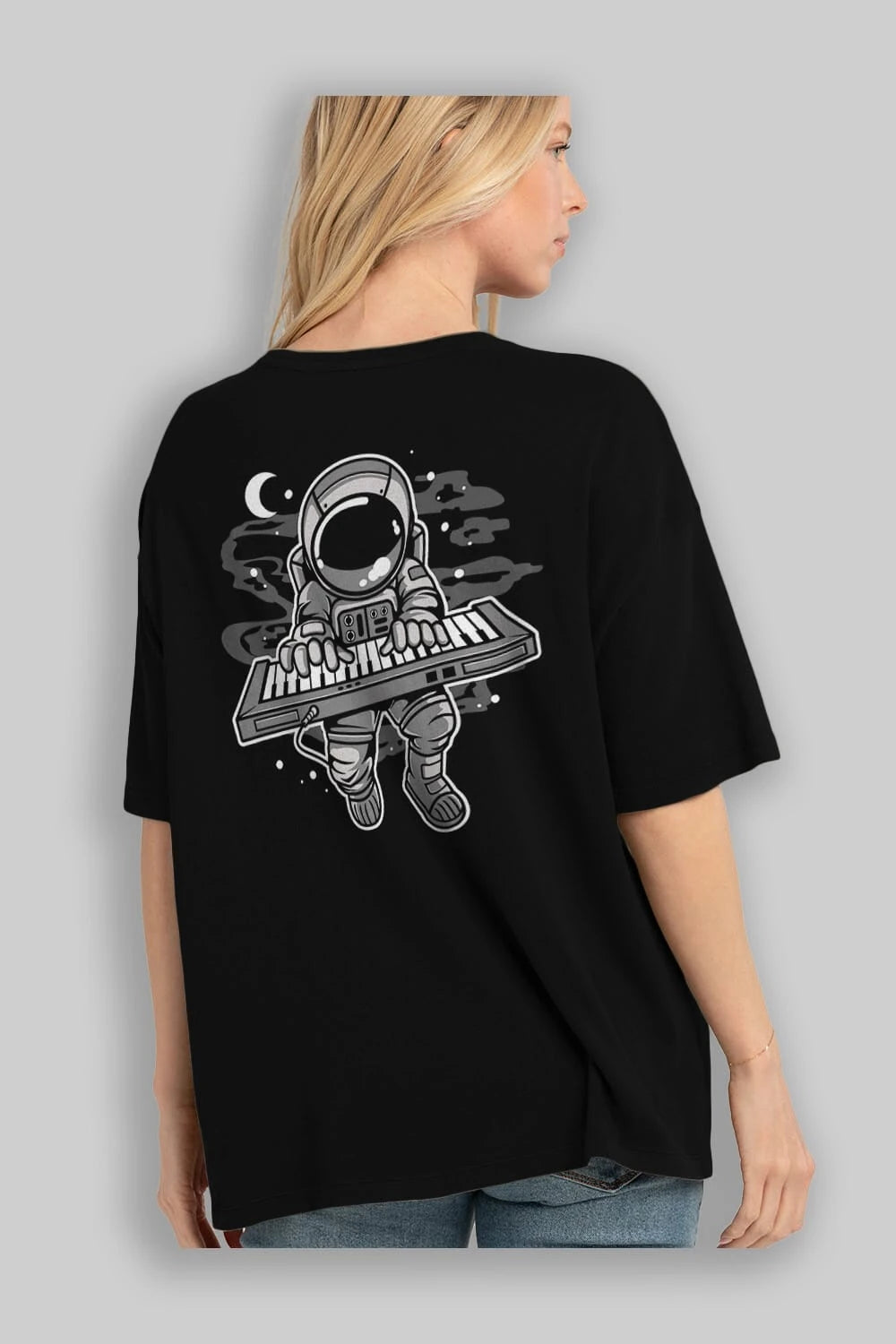 Astronaut Keyboard Arka Baskılı Oversize t-shirt Erkek Kadın Unisex