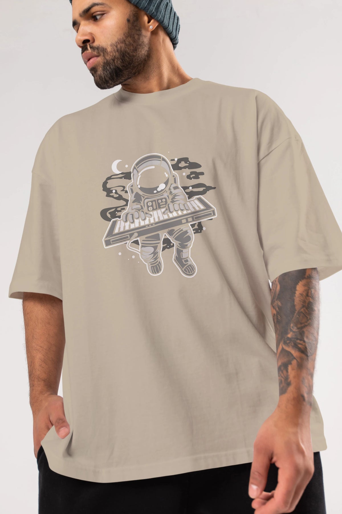 Astronaut Keyboard Ön Baskılı Oversize t-shirt Erkek Kadın Unisex