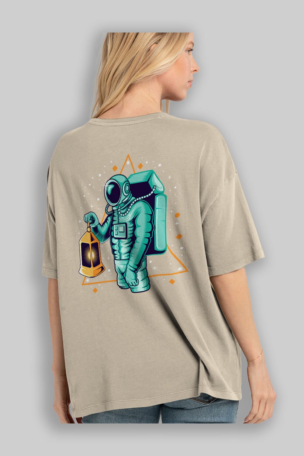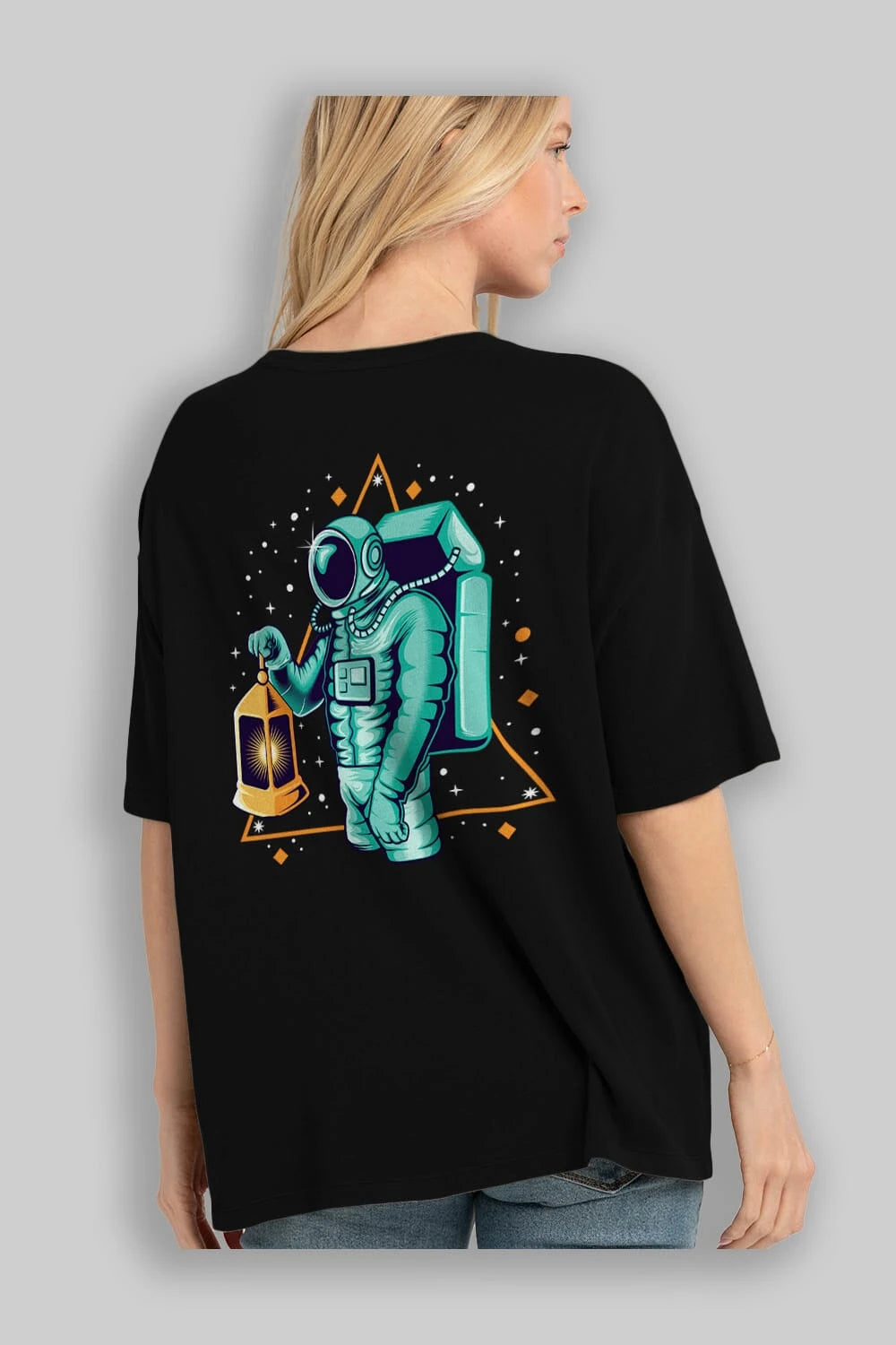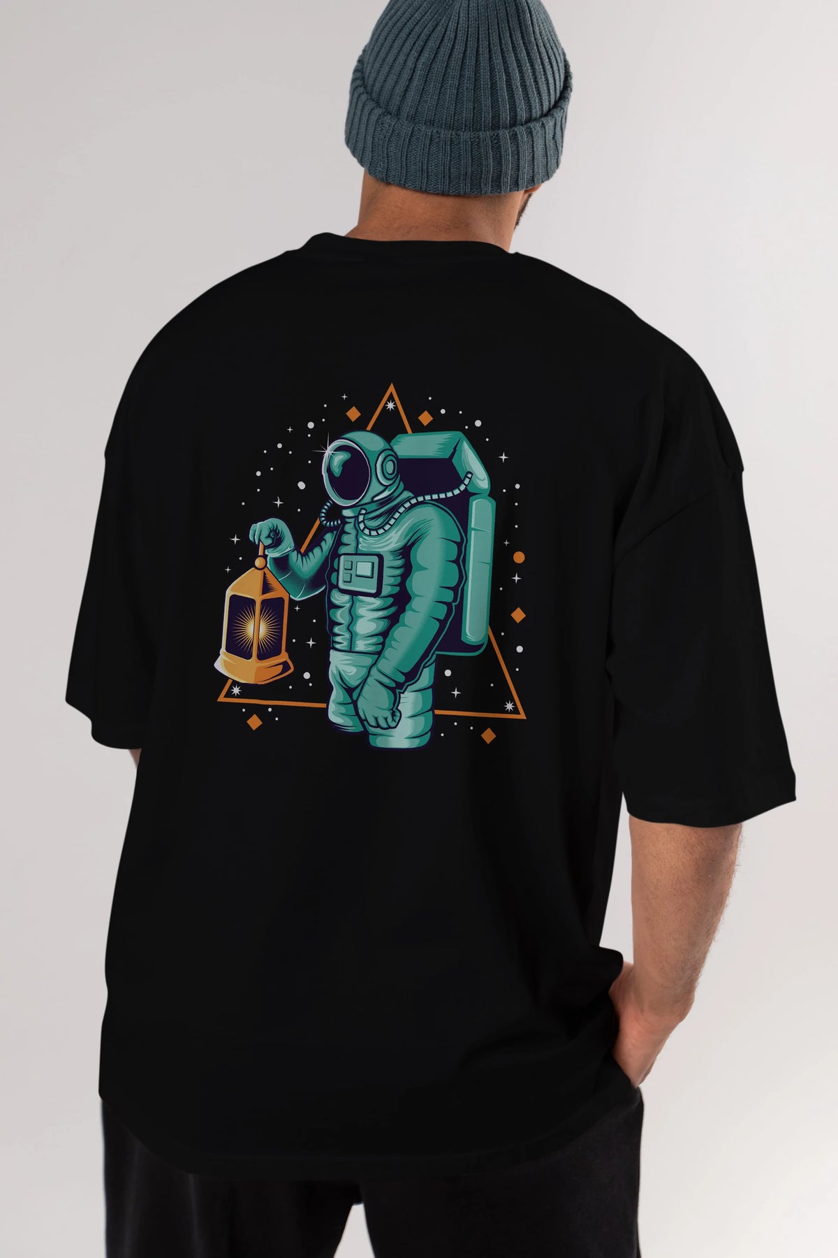 Astronaut Lantern Arka Baskılı Oversize t-shirt Erkek Kadın Unisex