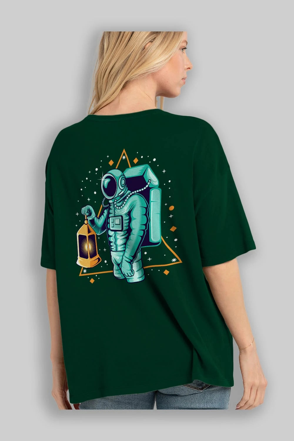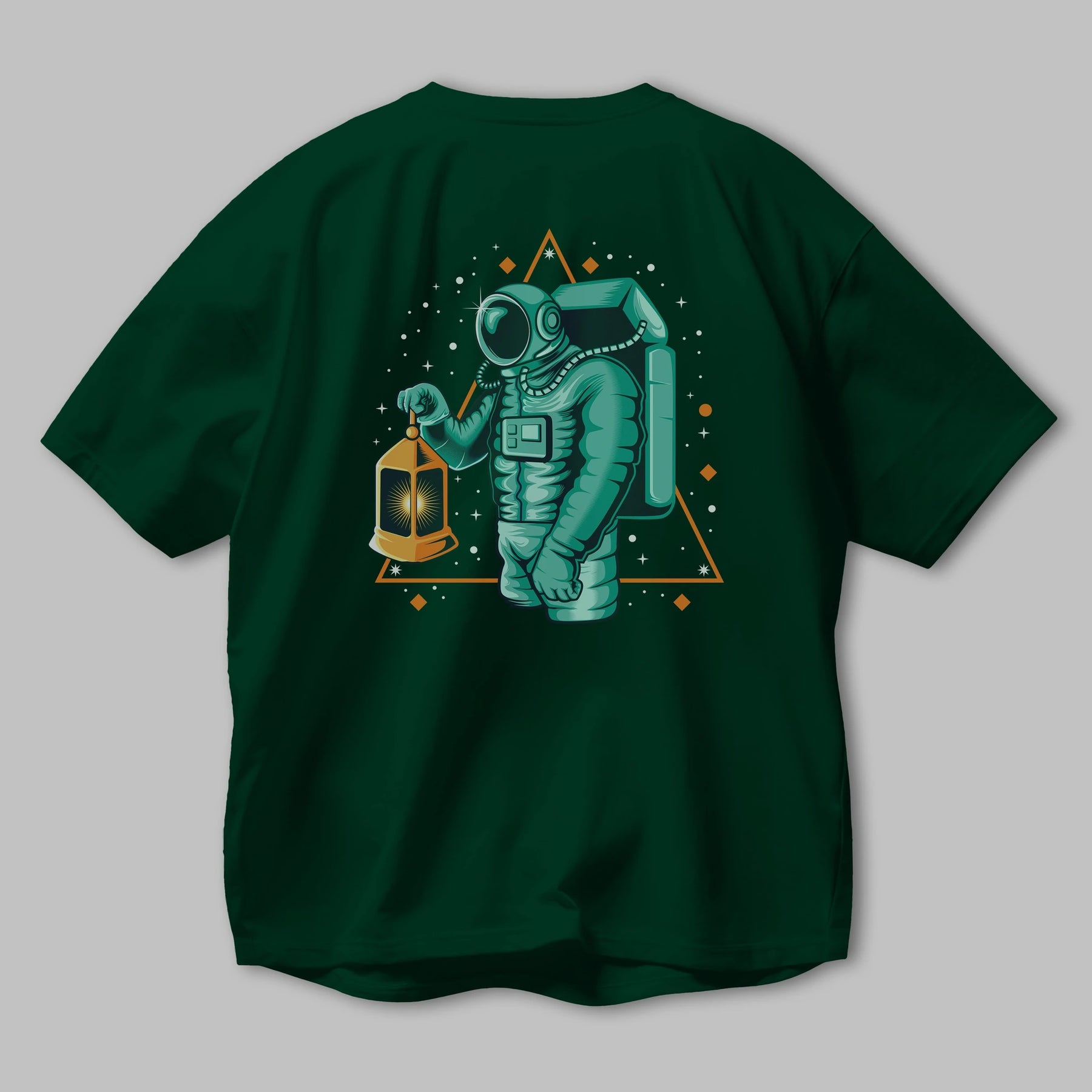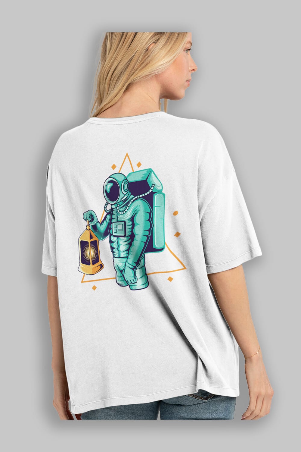 Astronaut Lantern Arka Baskılı Oversize t-shirt Erkek Kadın Unisex