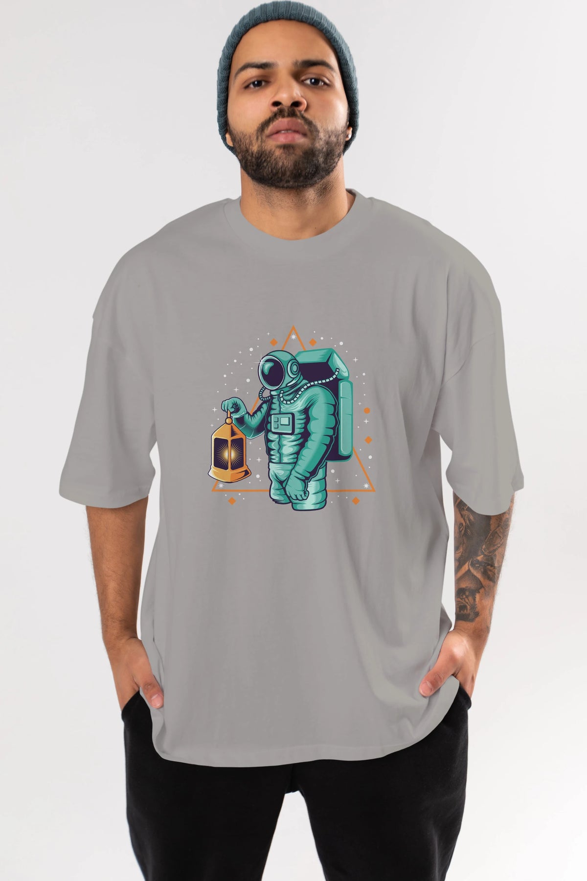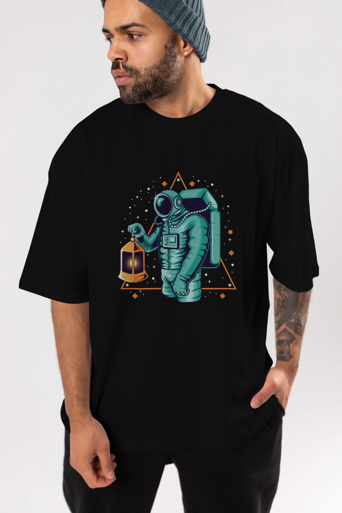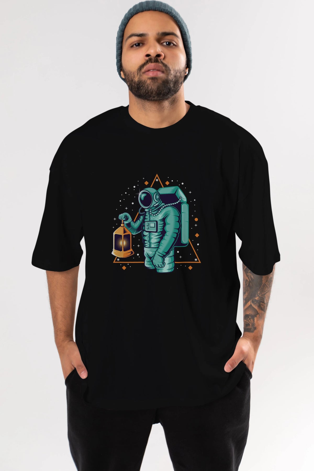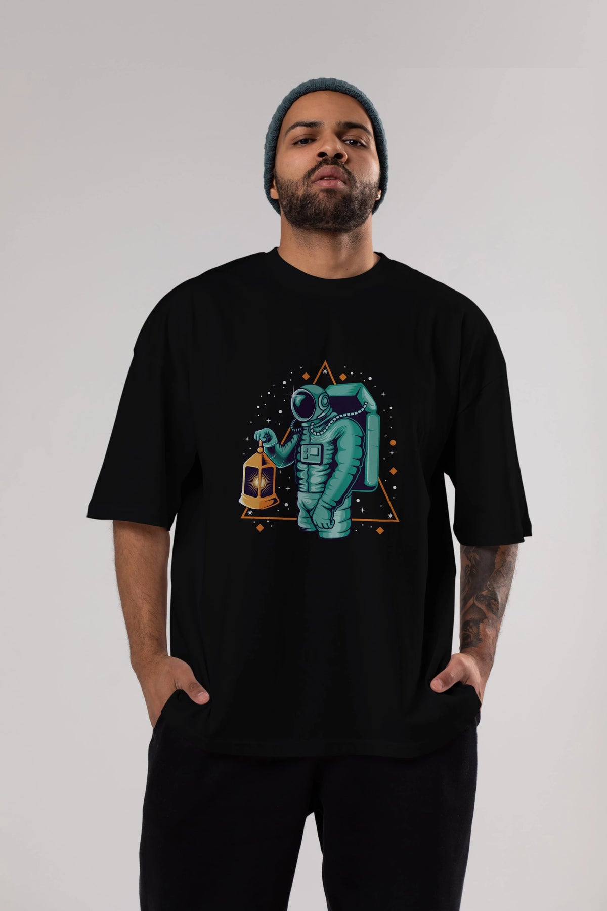 Astronaut Lantern Ön Baskılı Oversize t-shirt Erkek Kadın Unisex