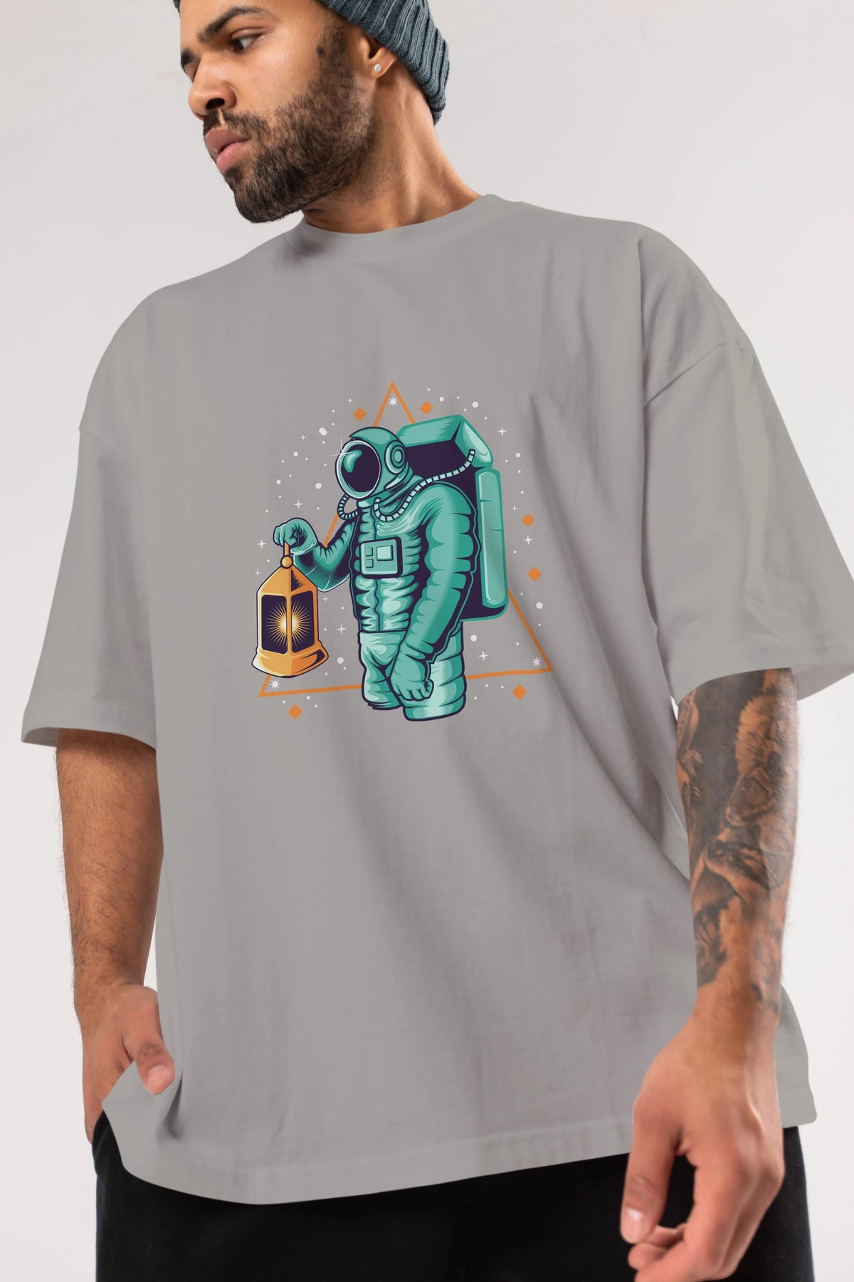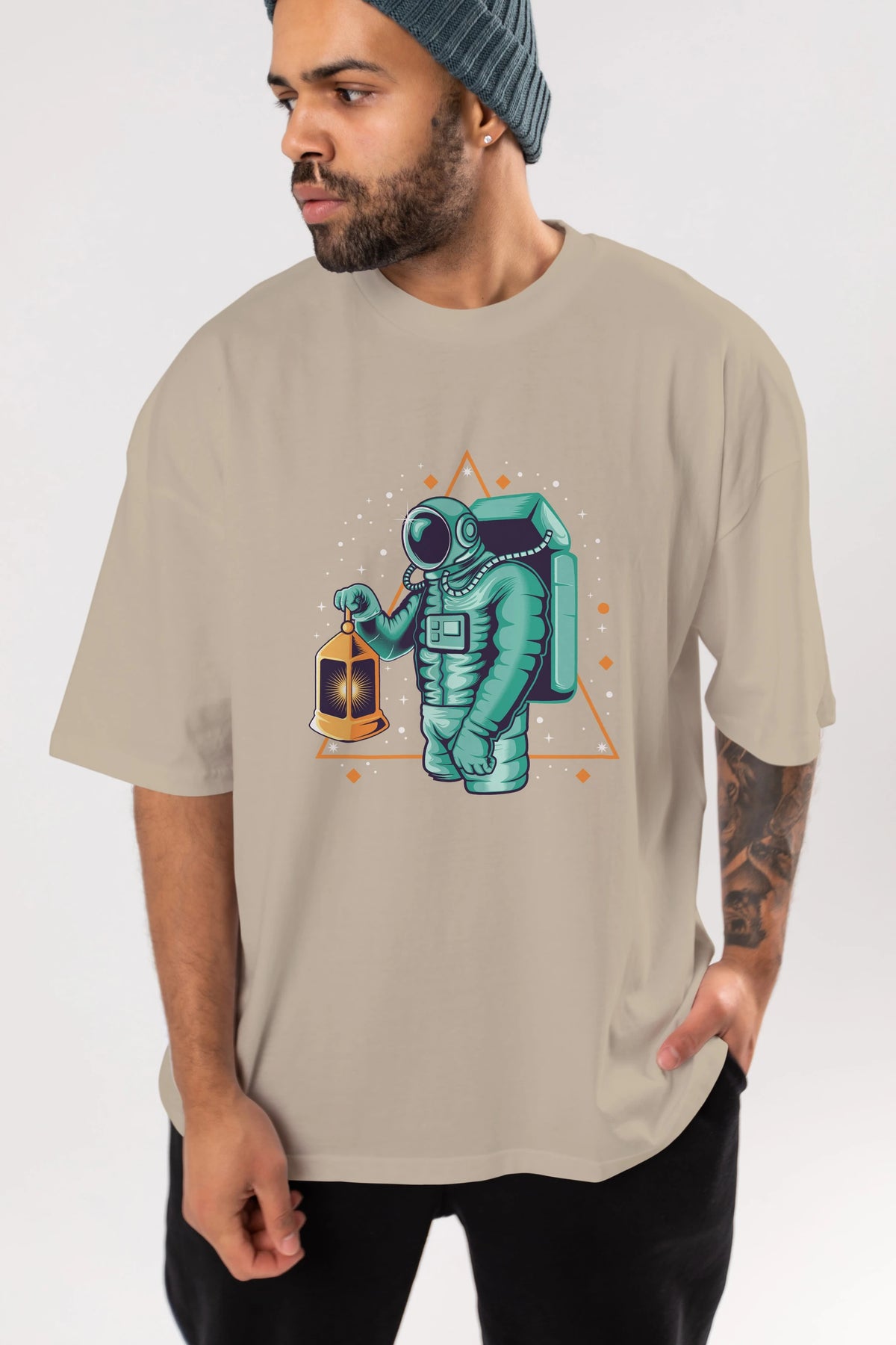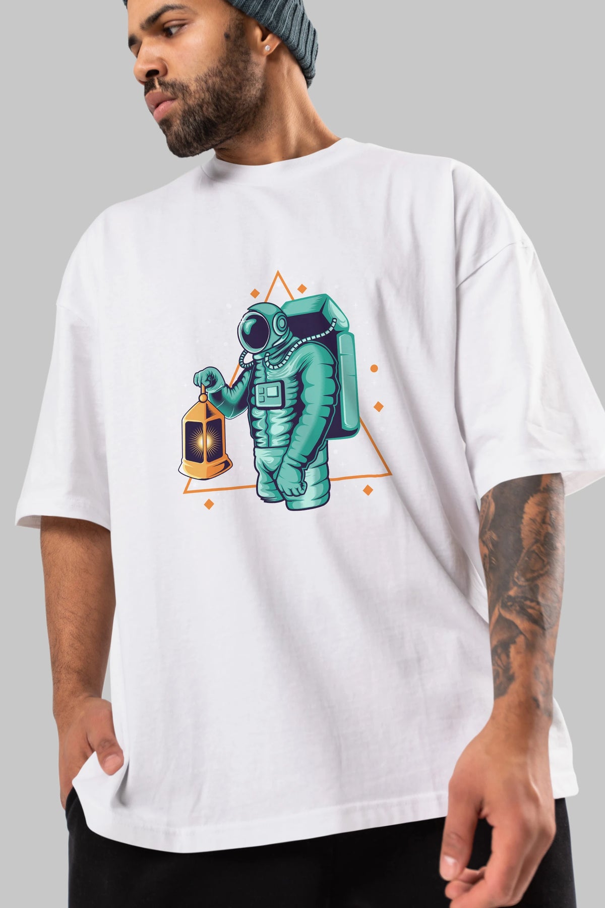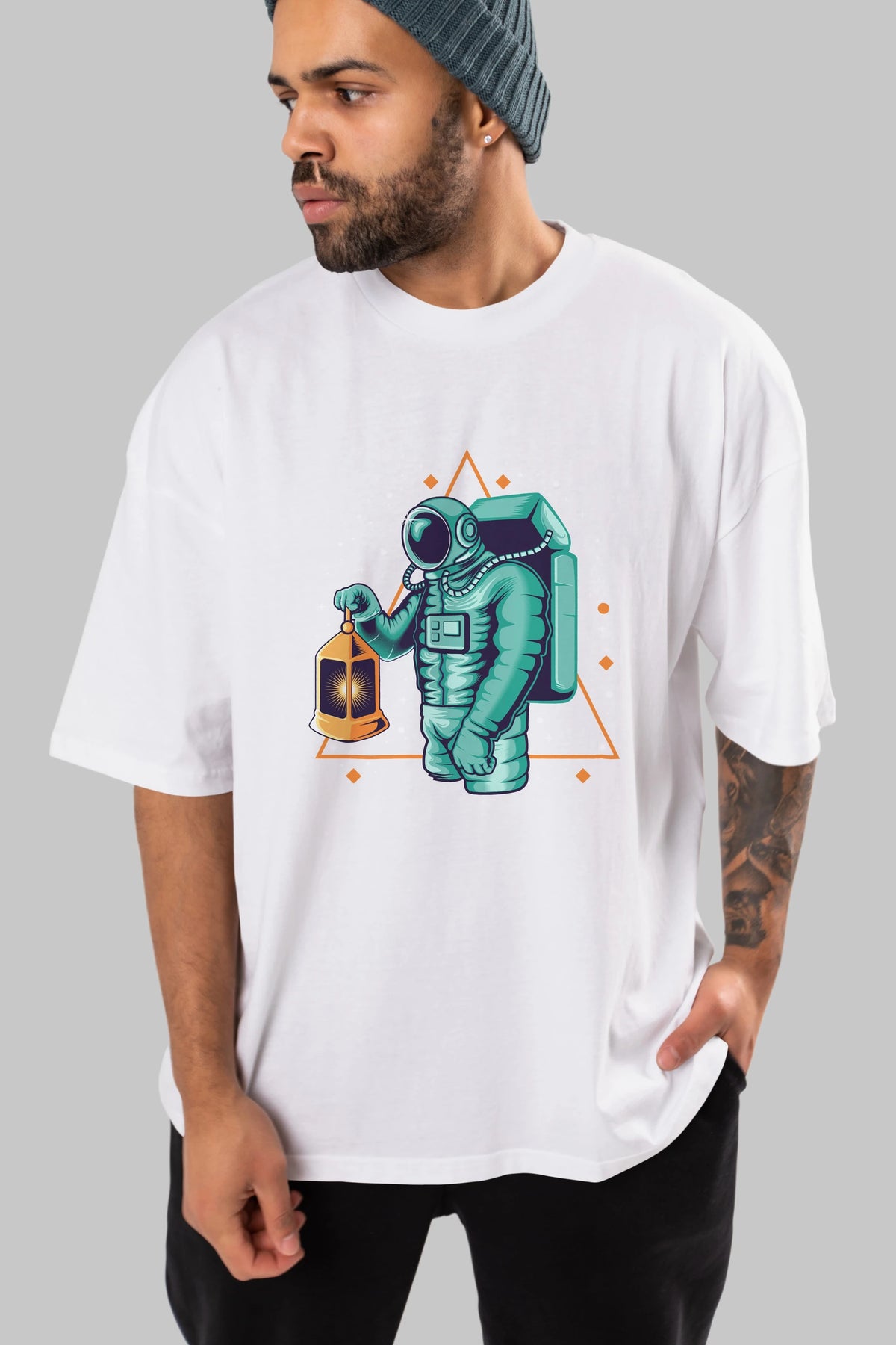 Astronaut Lantern Ön Baskılı Oversize t-shirt Erkek Kadın Unisex