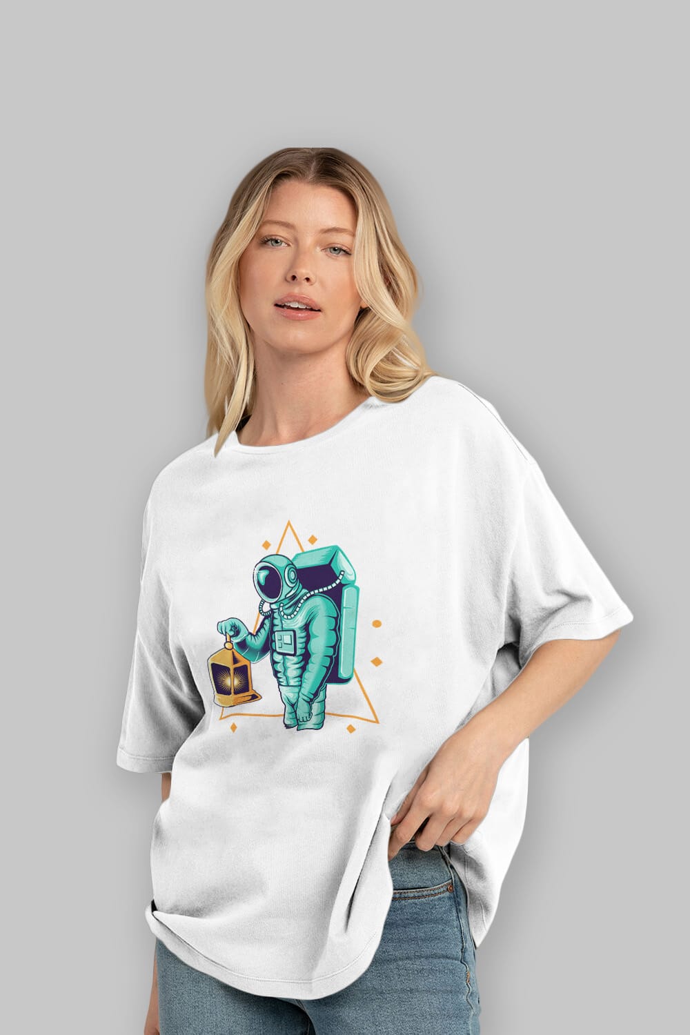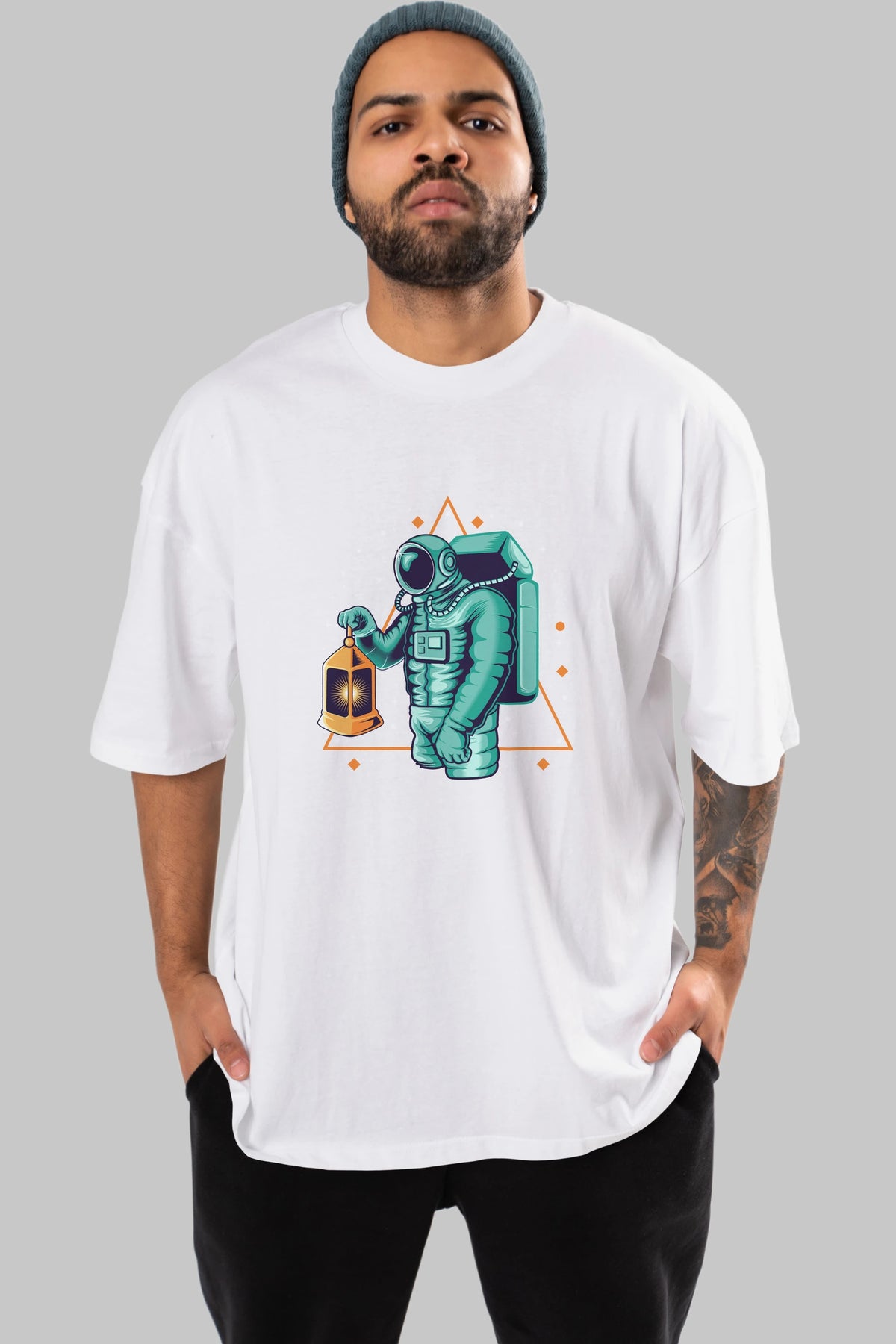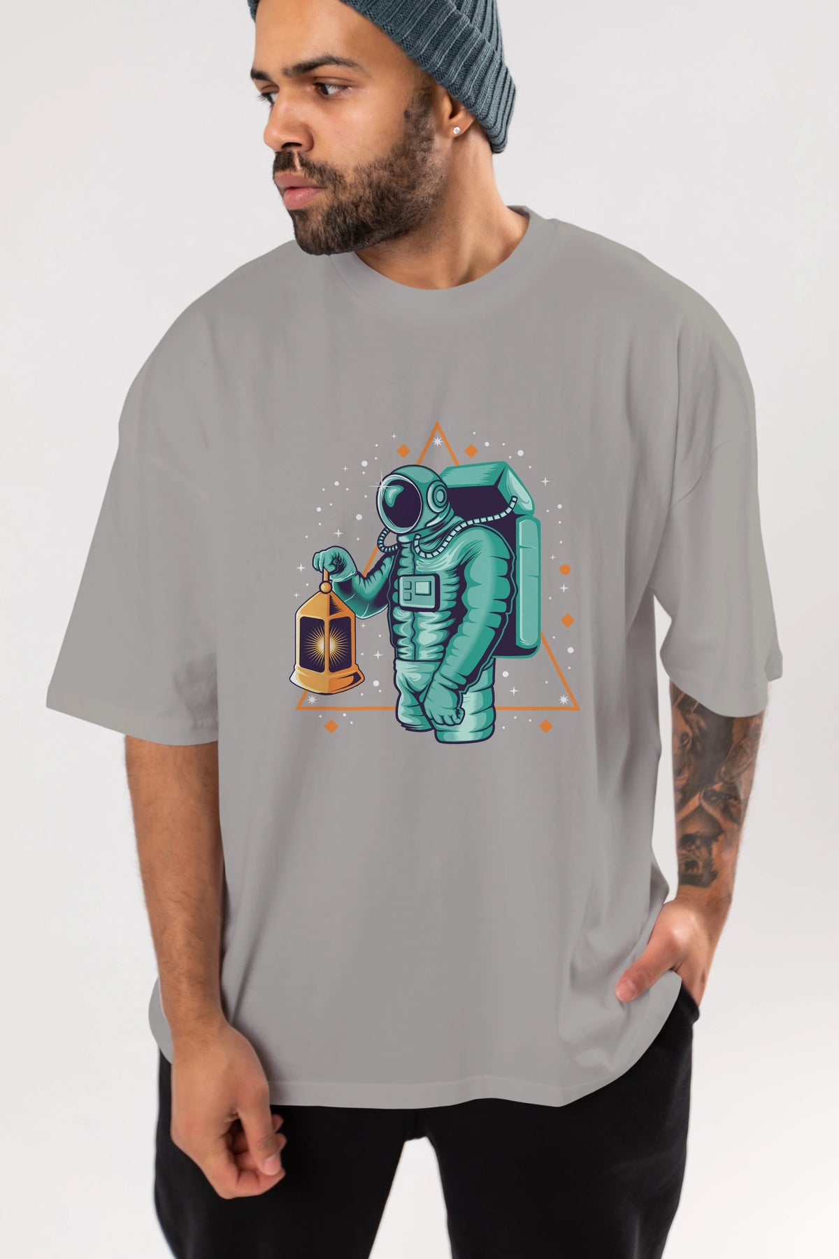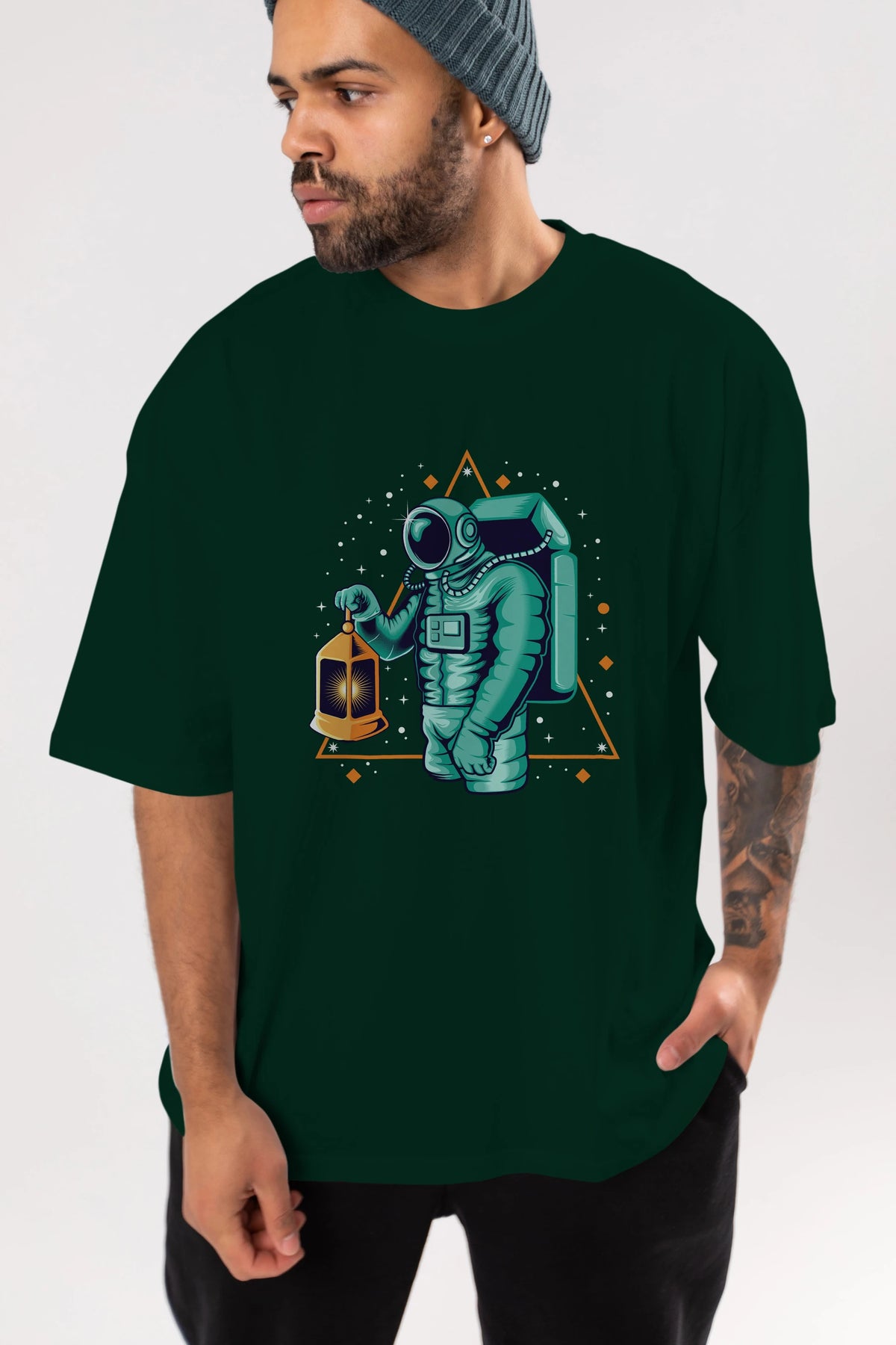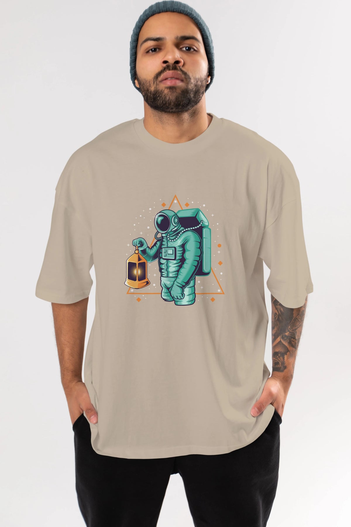Astronaut Lantern Ön Baskılı Oversize t-shirt Erkek Kadın Unisex