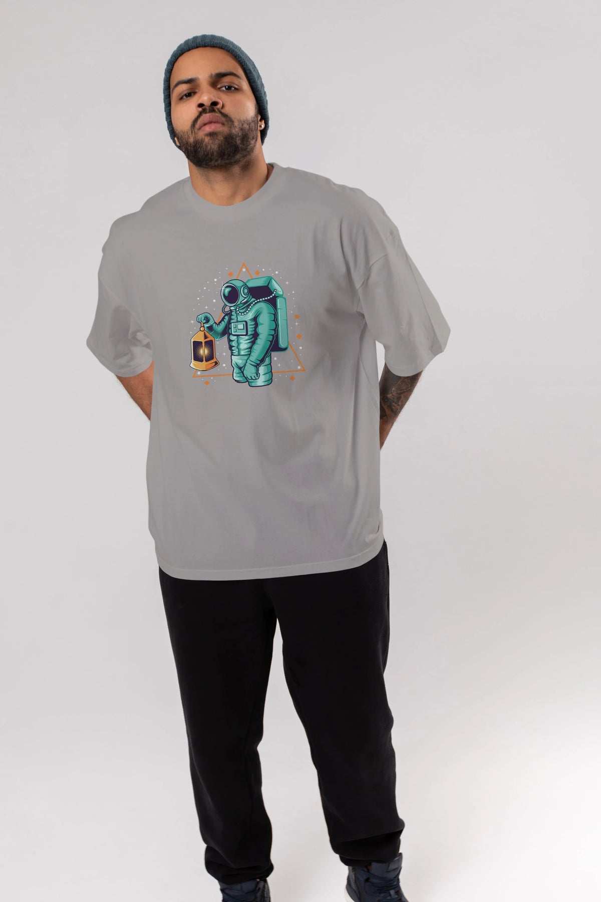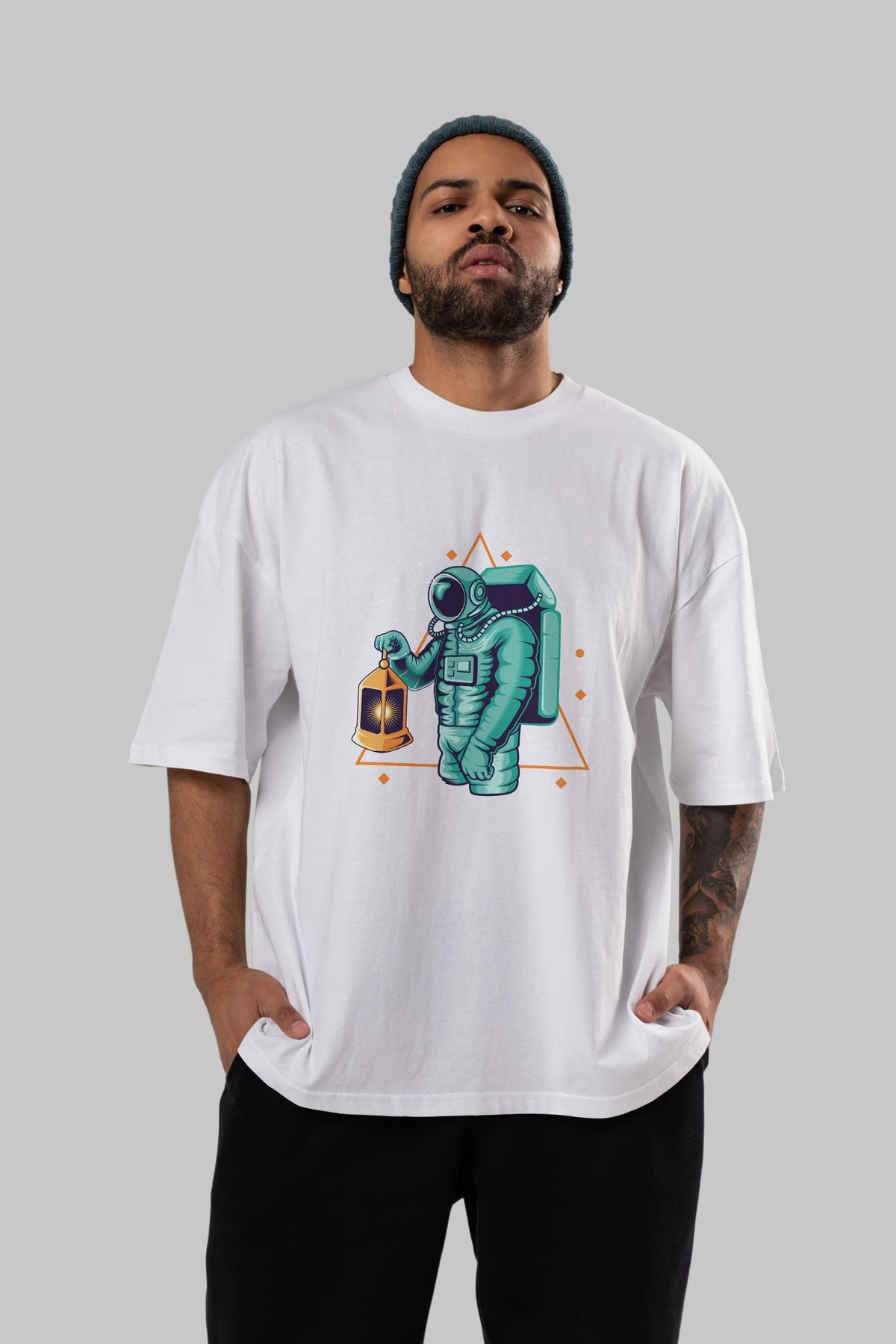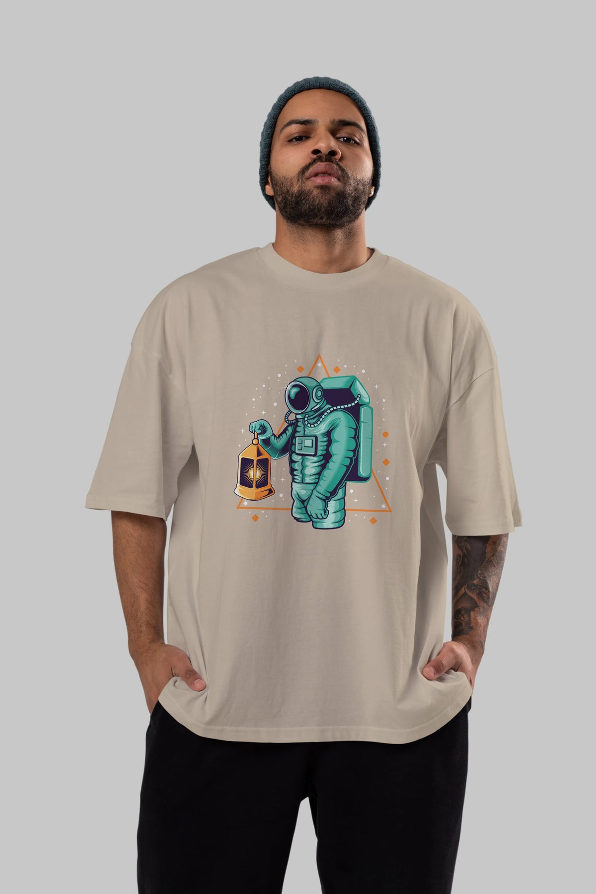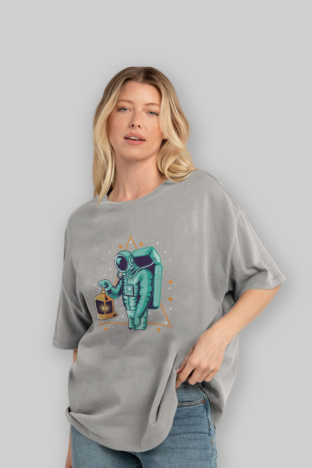 Astronaut Lantern Ön Baskılı Oversize t-shirt Erkek Kadın Unisex