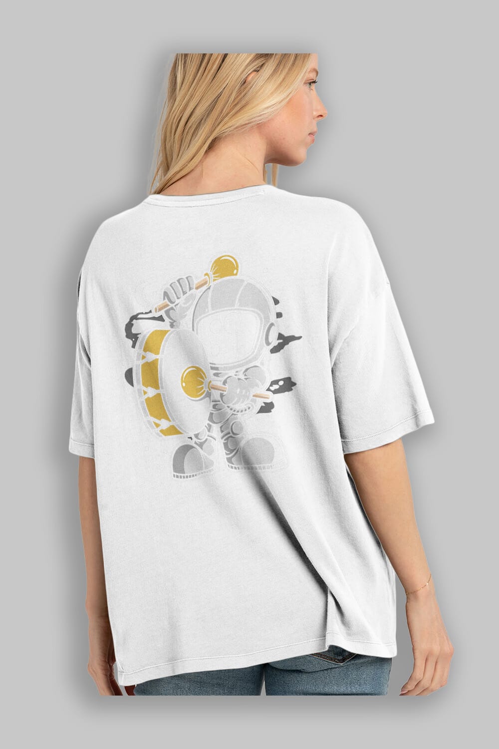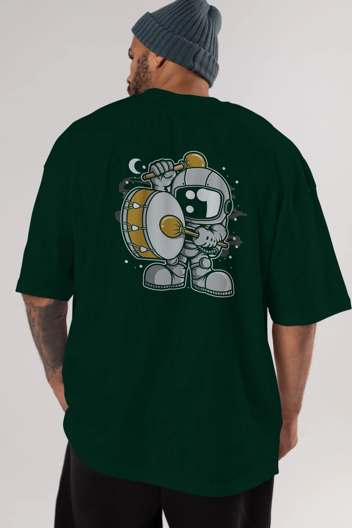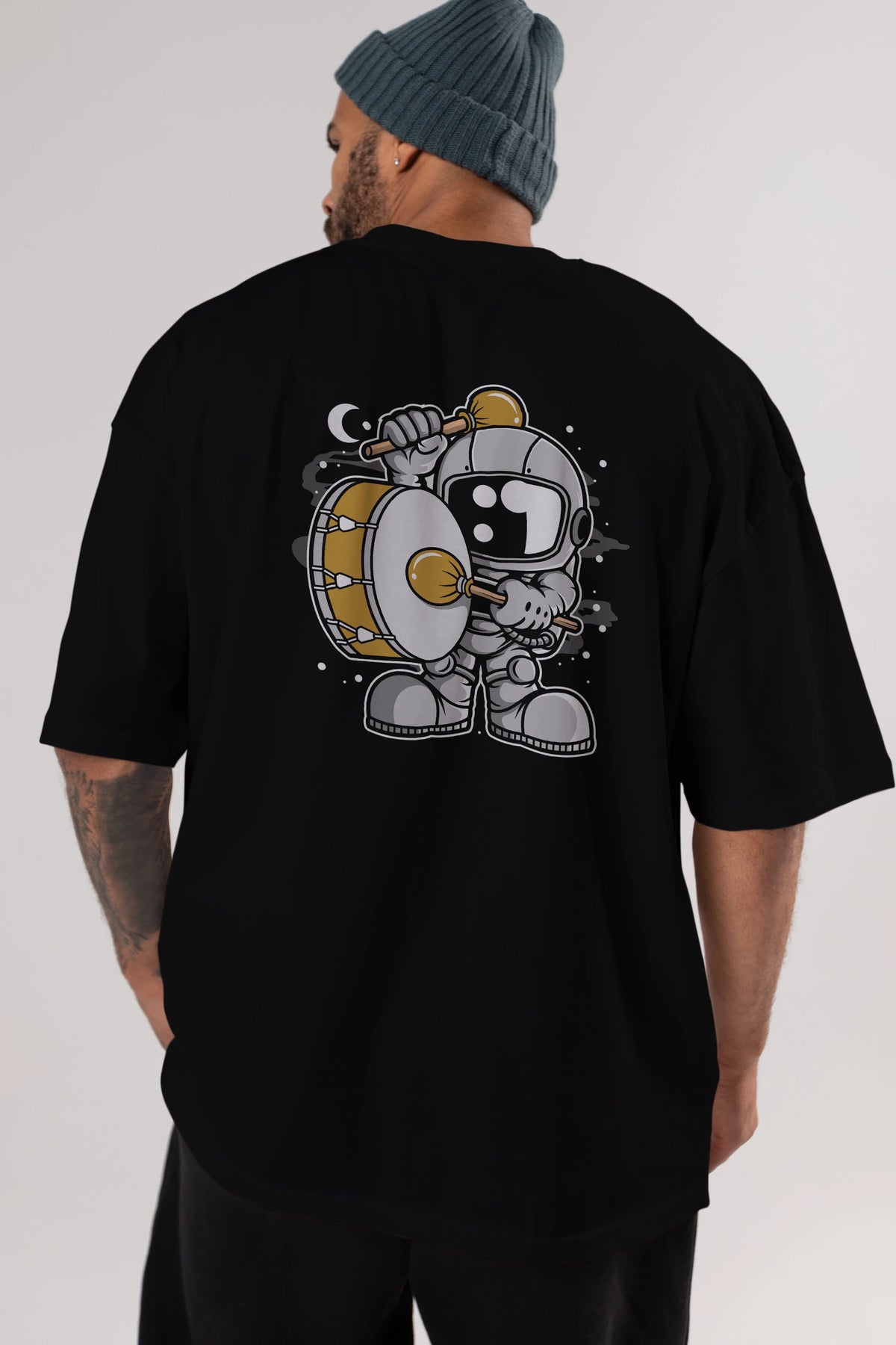 Astronaut Marching Band Arka Baskılı Oversize t-shirt Erkek Kadın Unisex