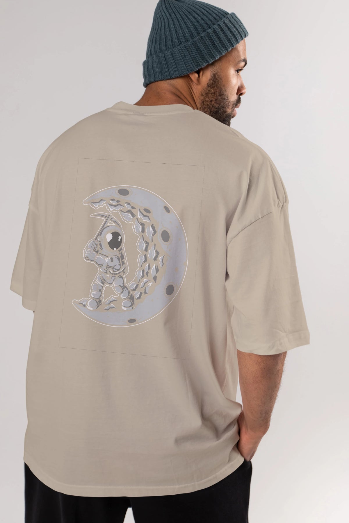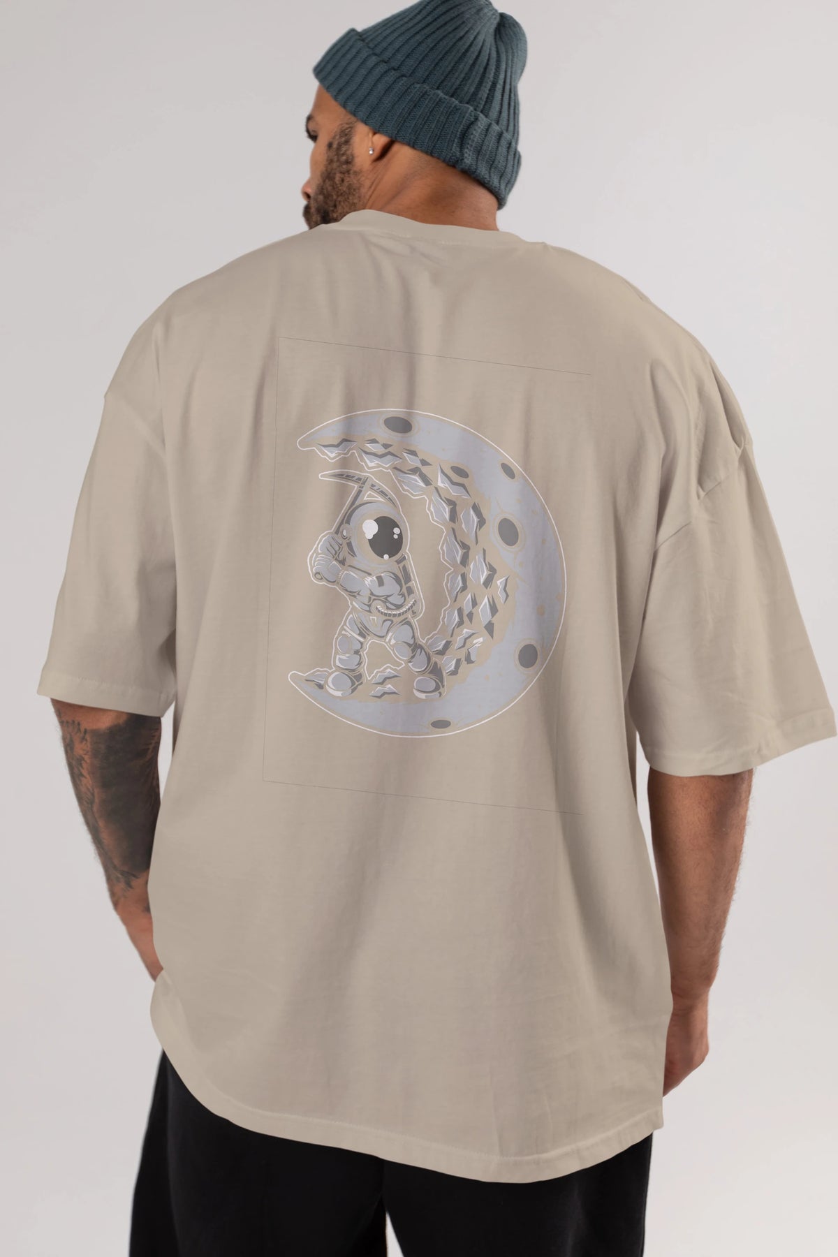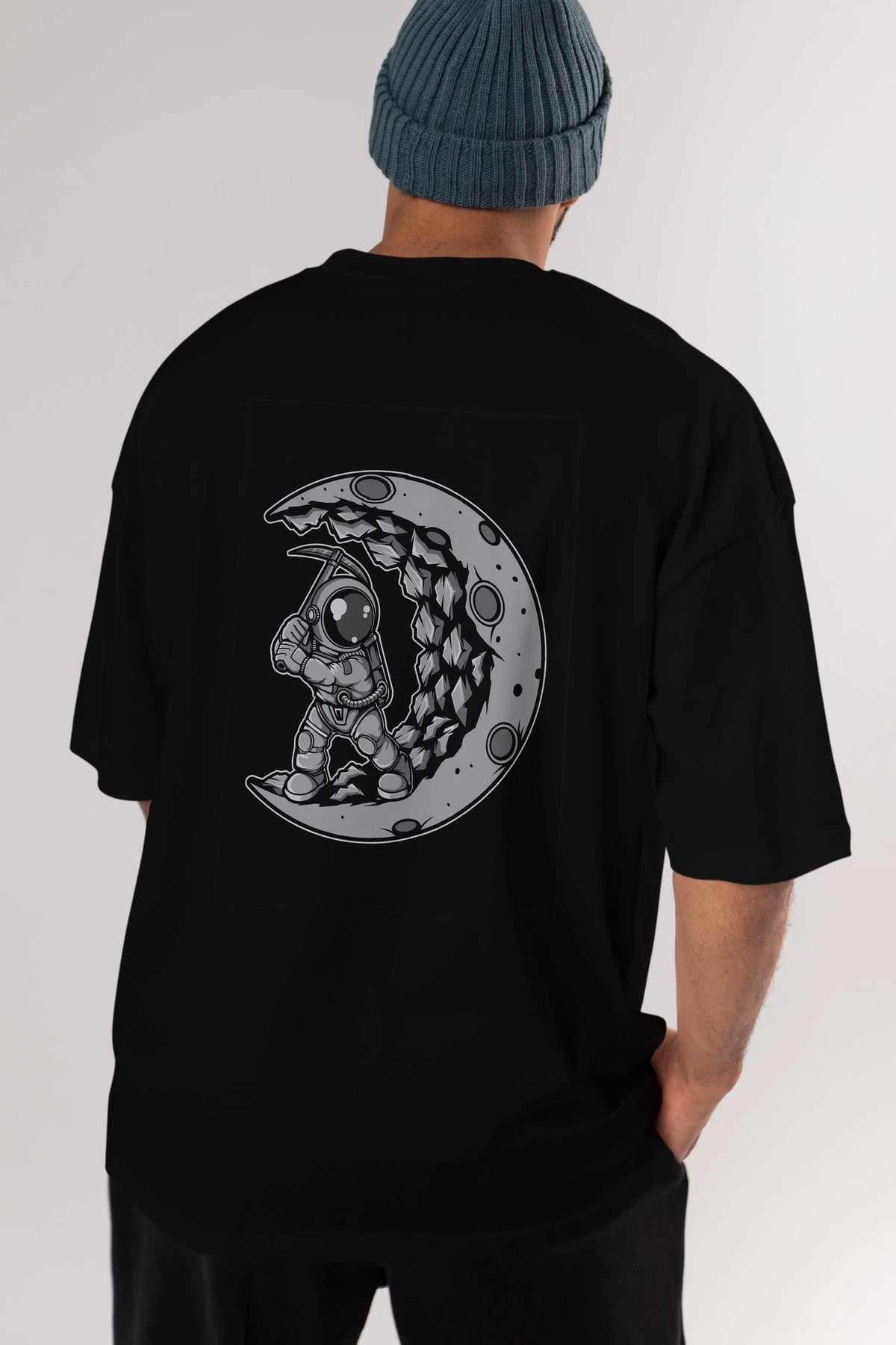 Astronaut Moon Digger Arka Baskılı Oversize t-shirt Erkek Kadın Unisex