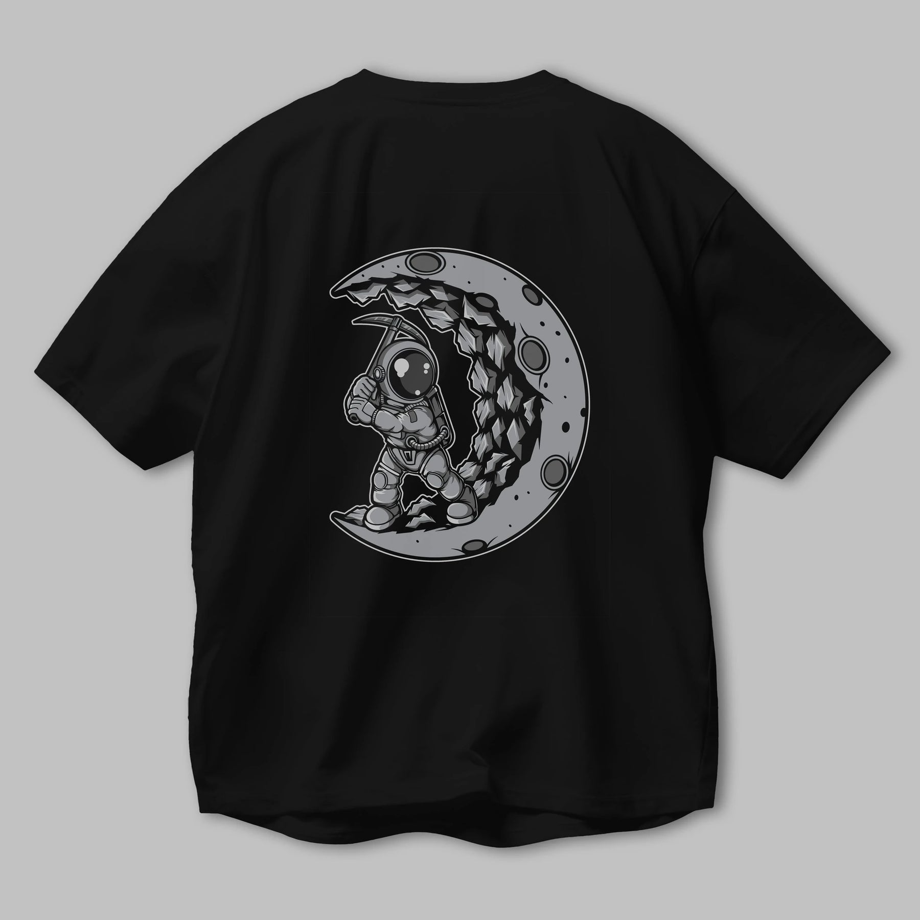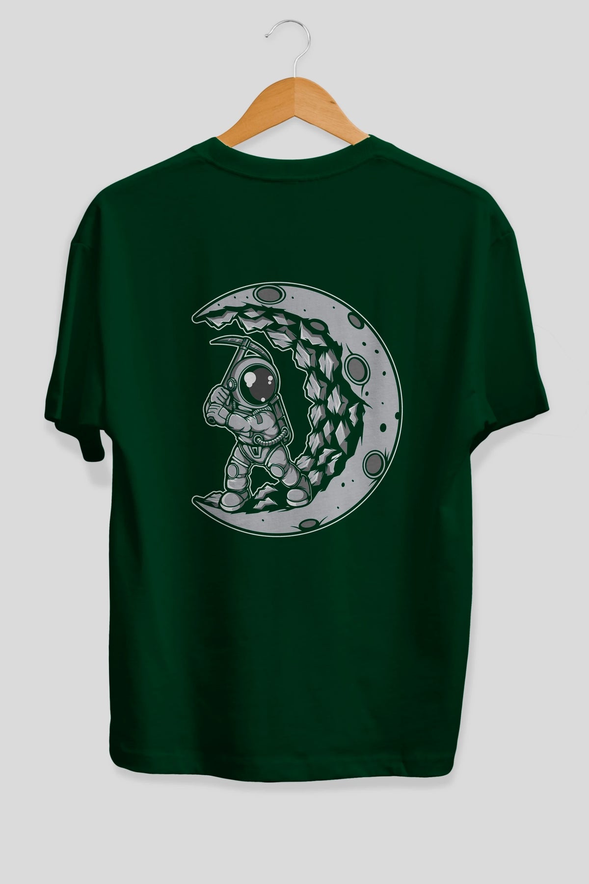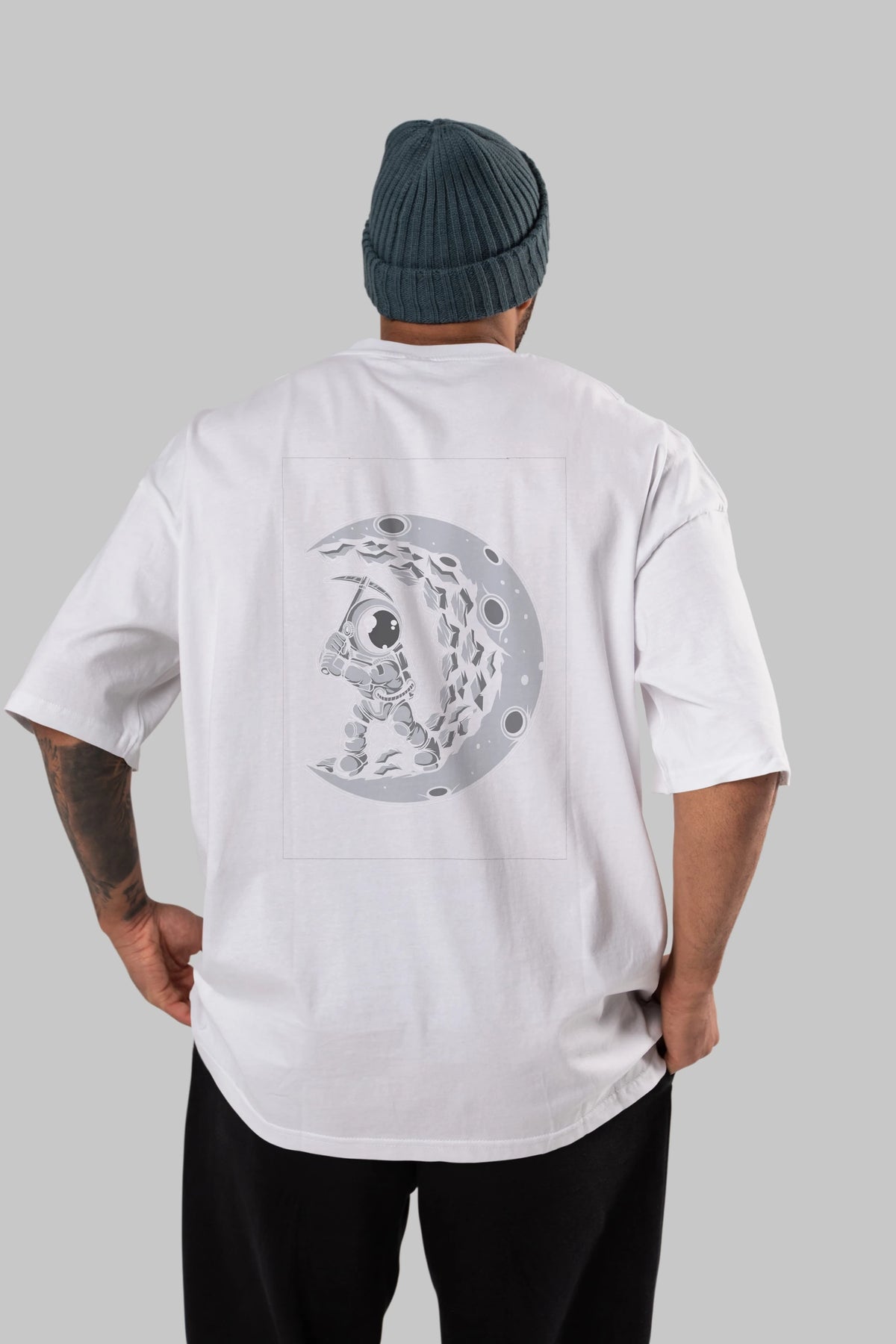 Astronaut Moon Digger Arka Baskılı Oversize t-shirt Erkek Kadın Unisex