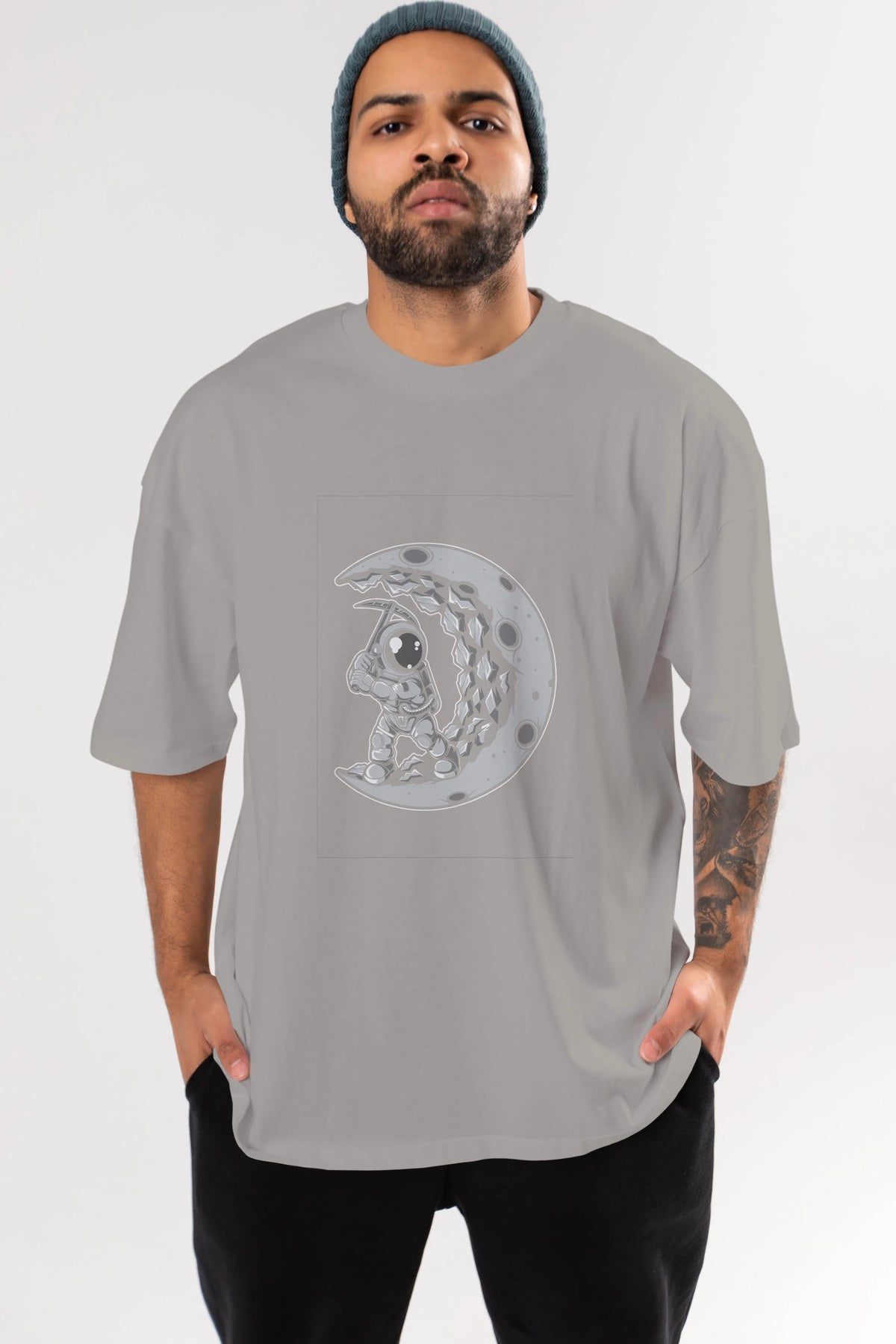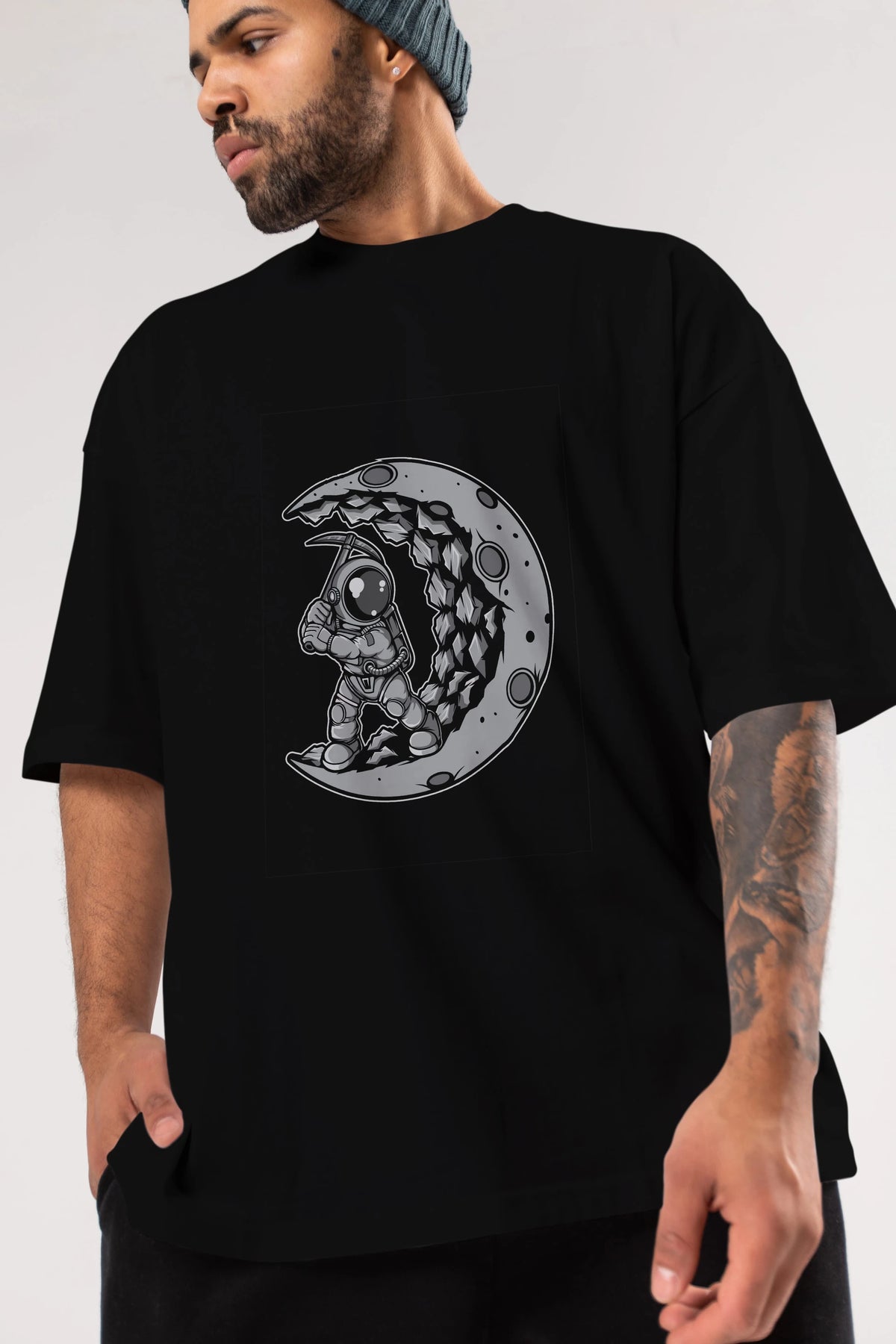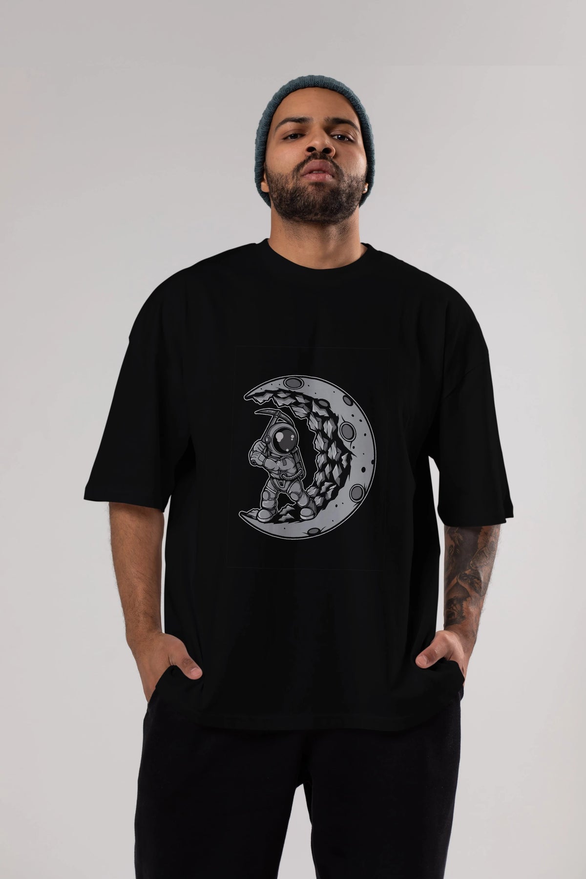 Astronaut Moon Digger Ön Baskılı Oversize t-shirt Erkek Kadın Unisex