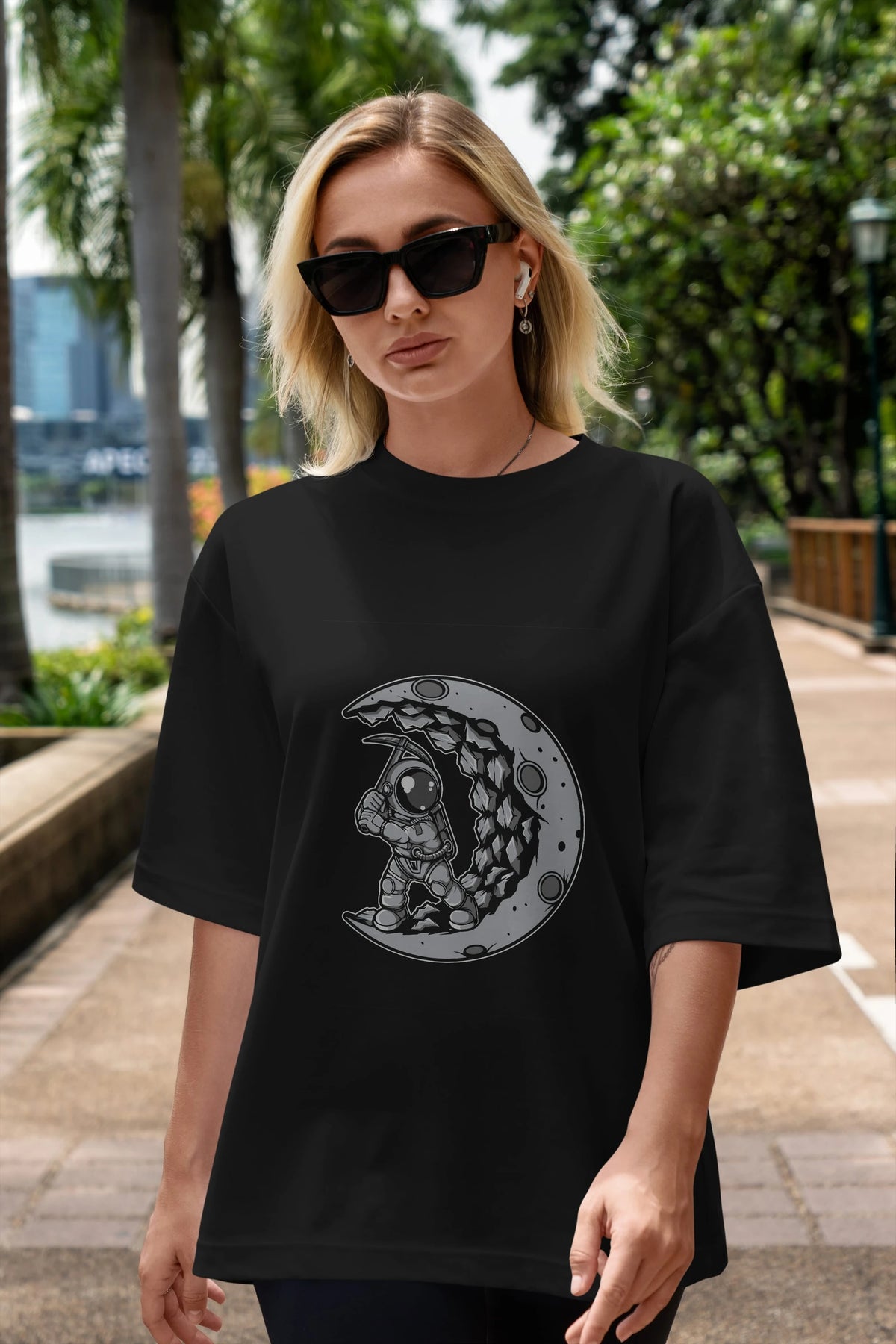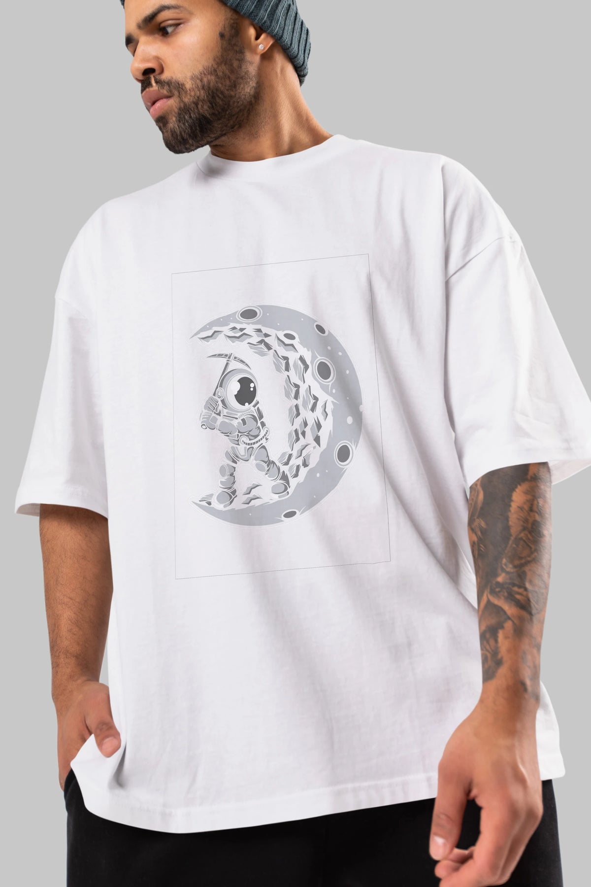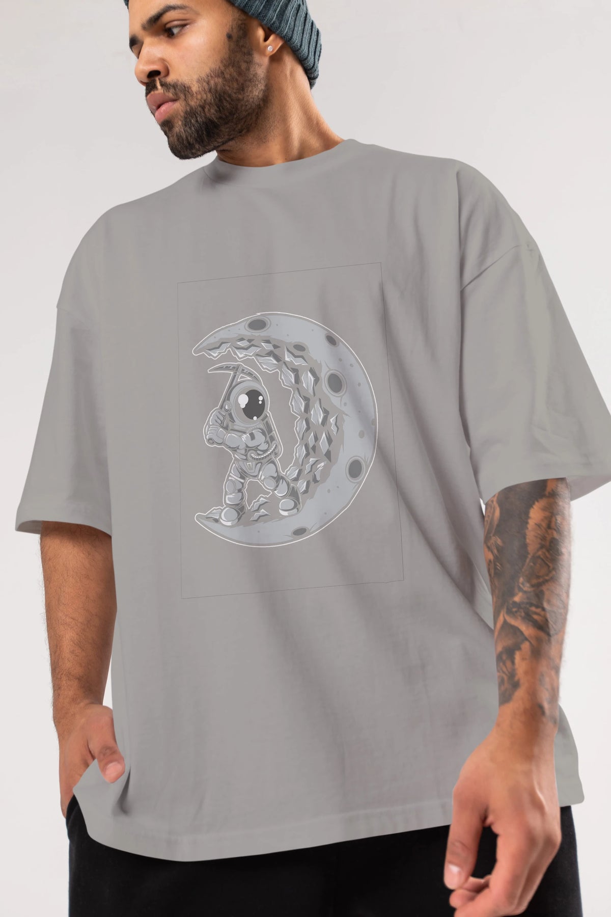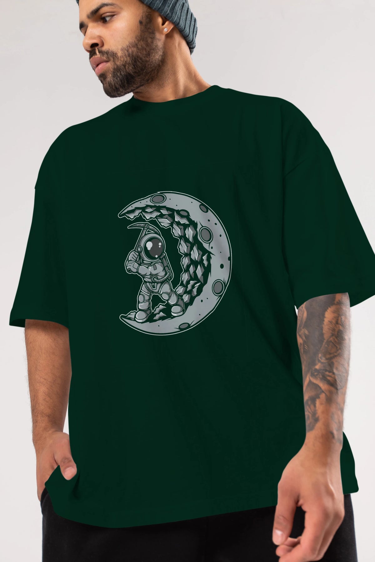 Astronaut Moon Digger Ön Baskılı Oversize t-shirt Erkek Kadın Unisex