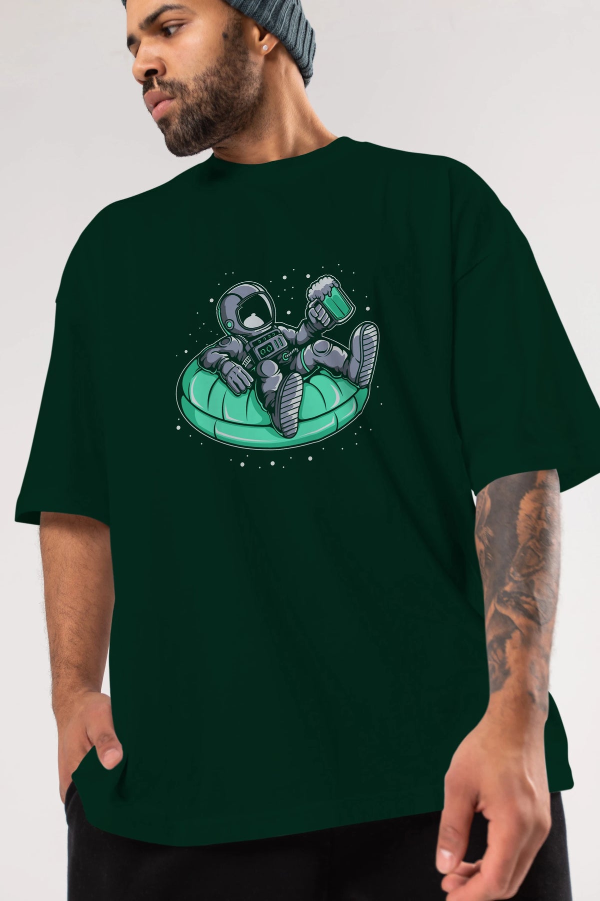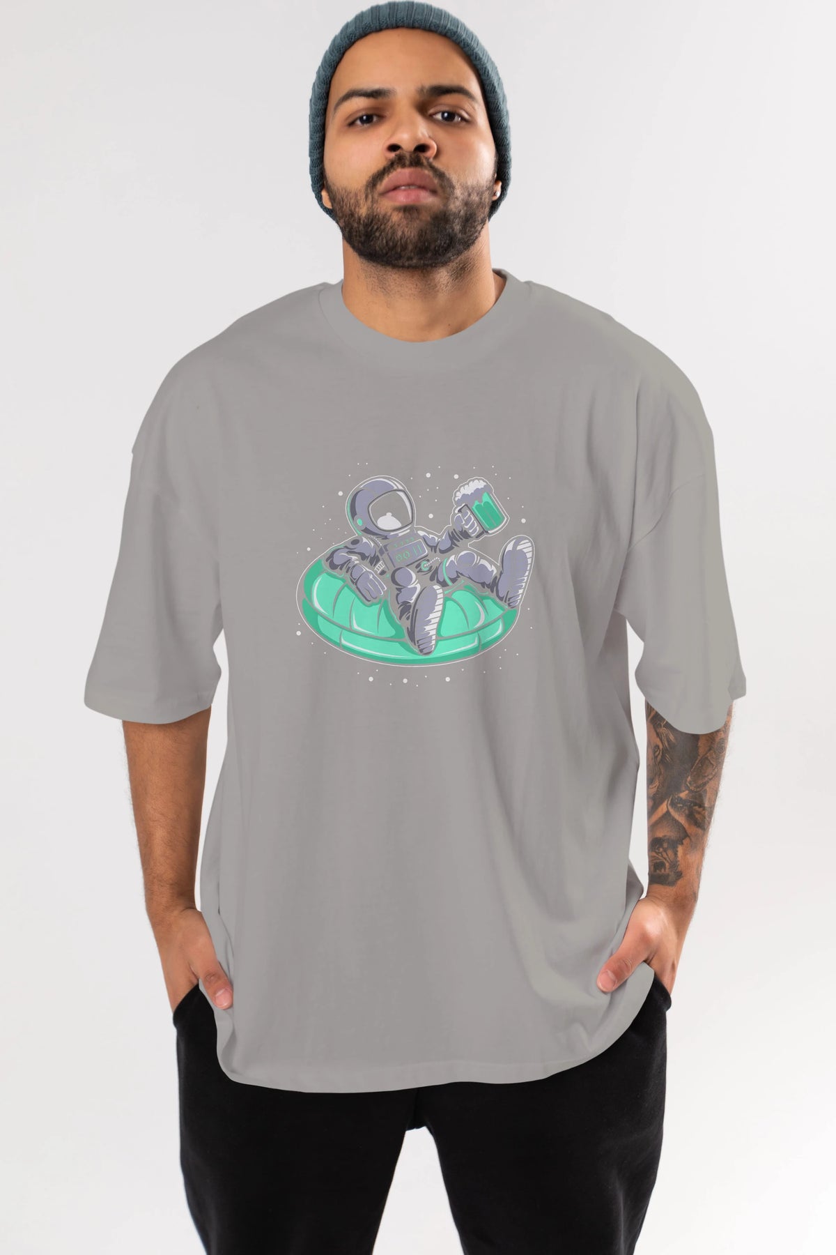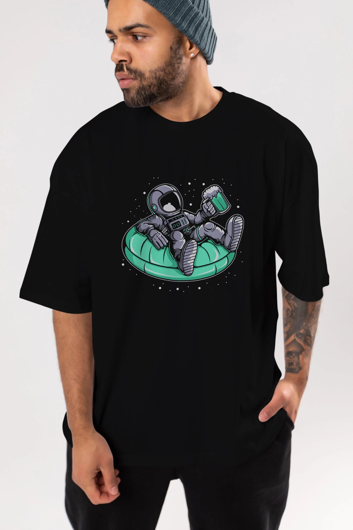 Astronaut Pool Float Ön Baskılı Oversize t-shirt Erkek Kadın Unisex