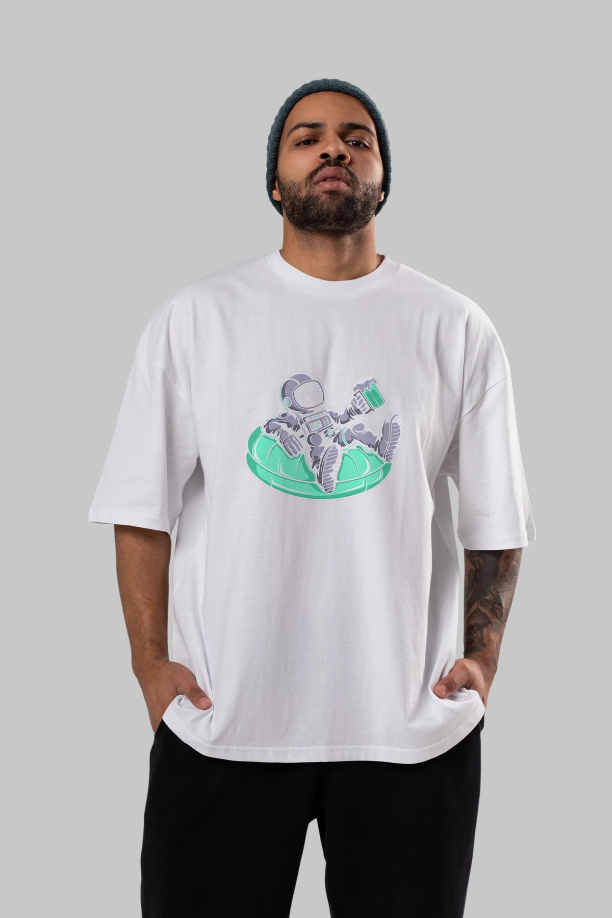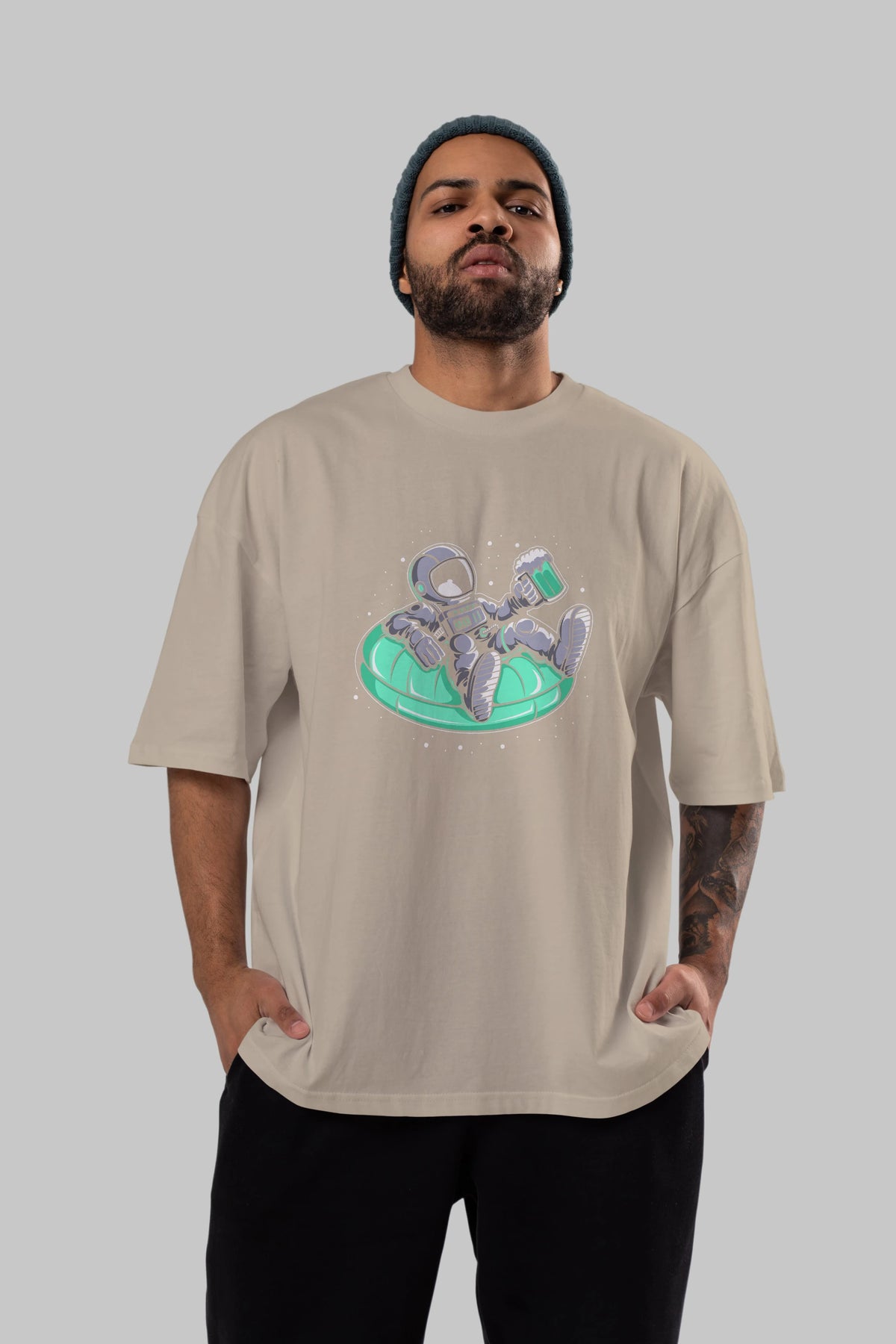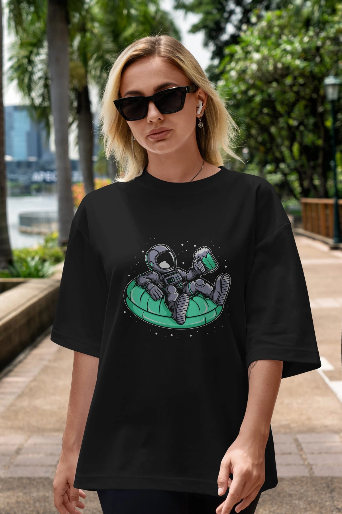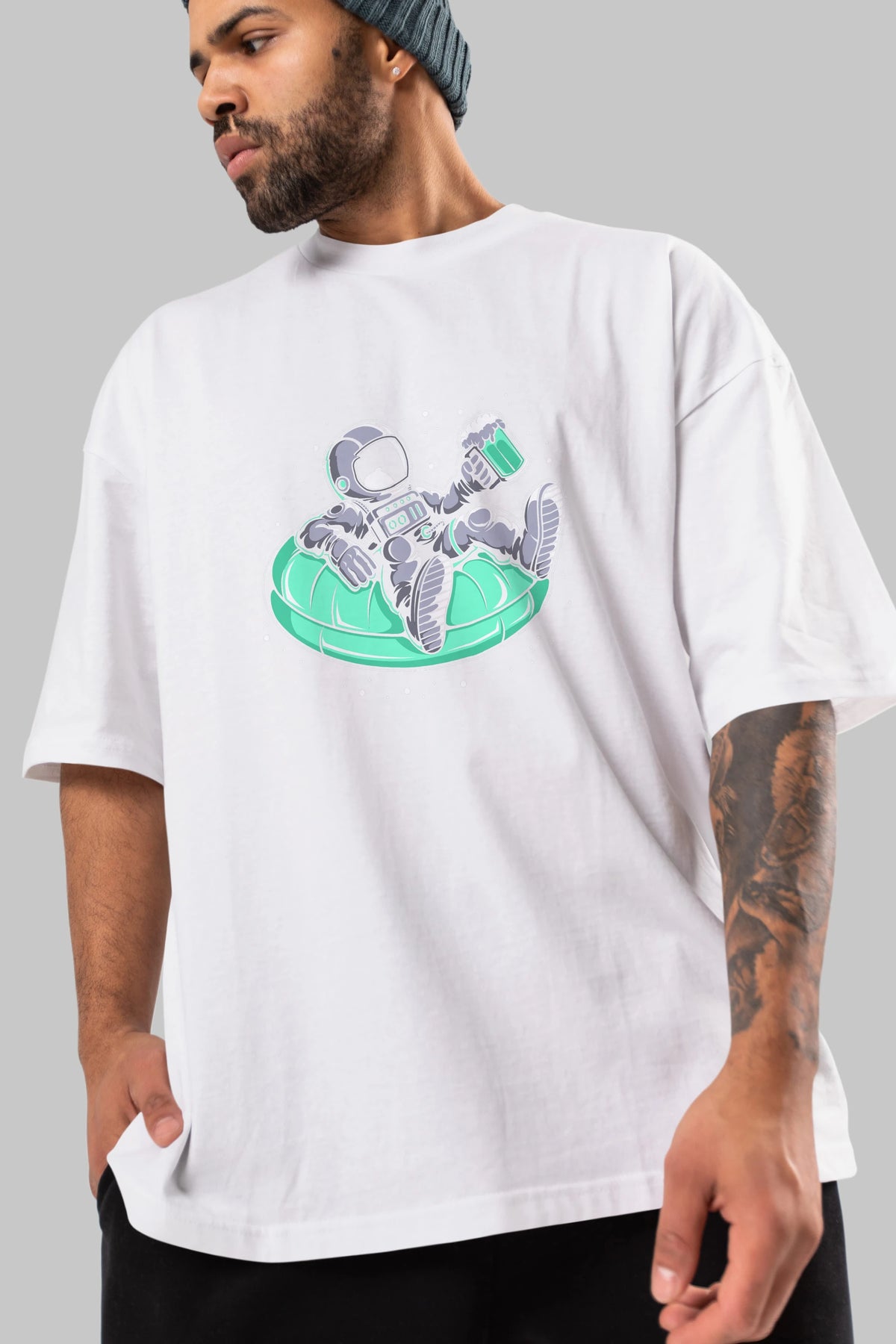 Astronaut Pool Float Ön Baskılı Oversize t-shirt Erkek Kadın Unisex