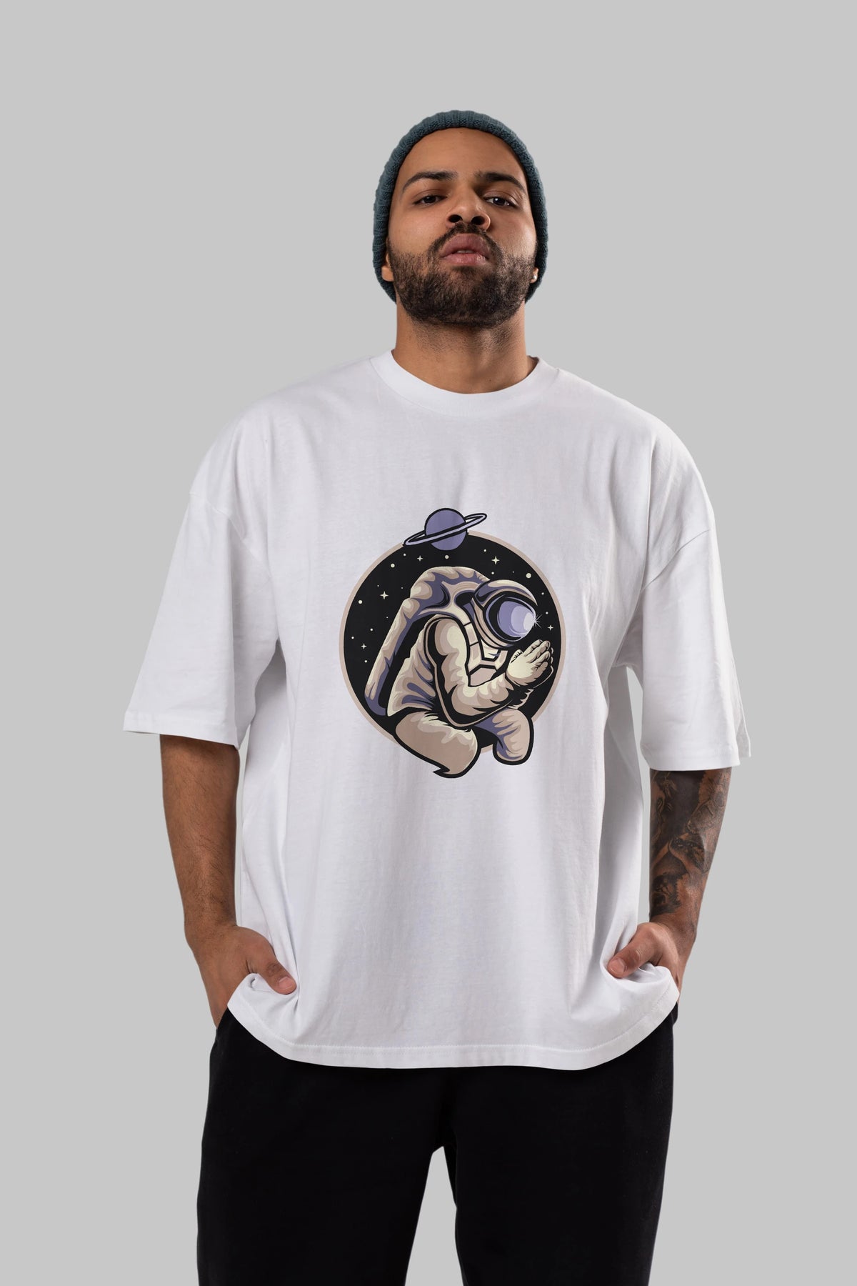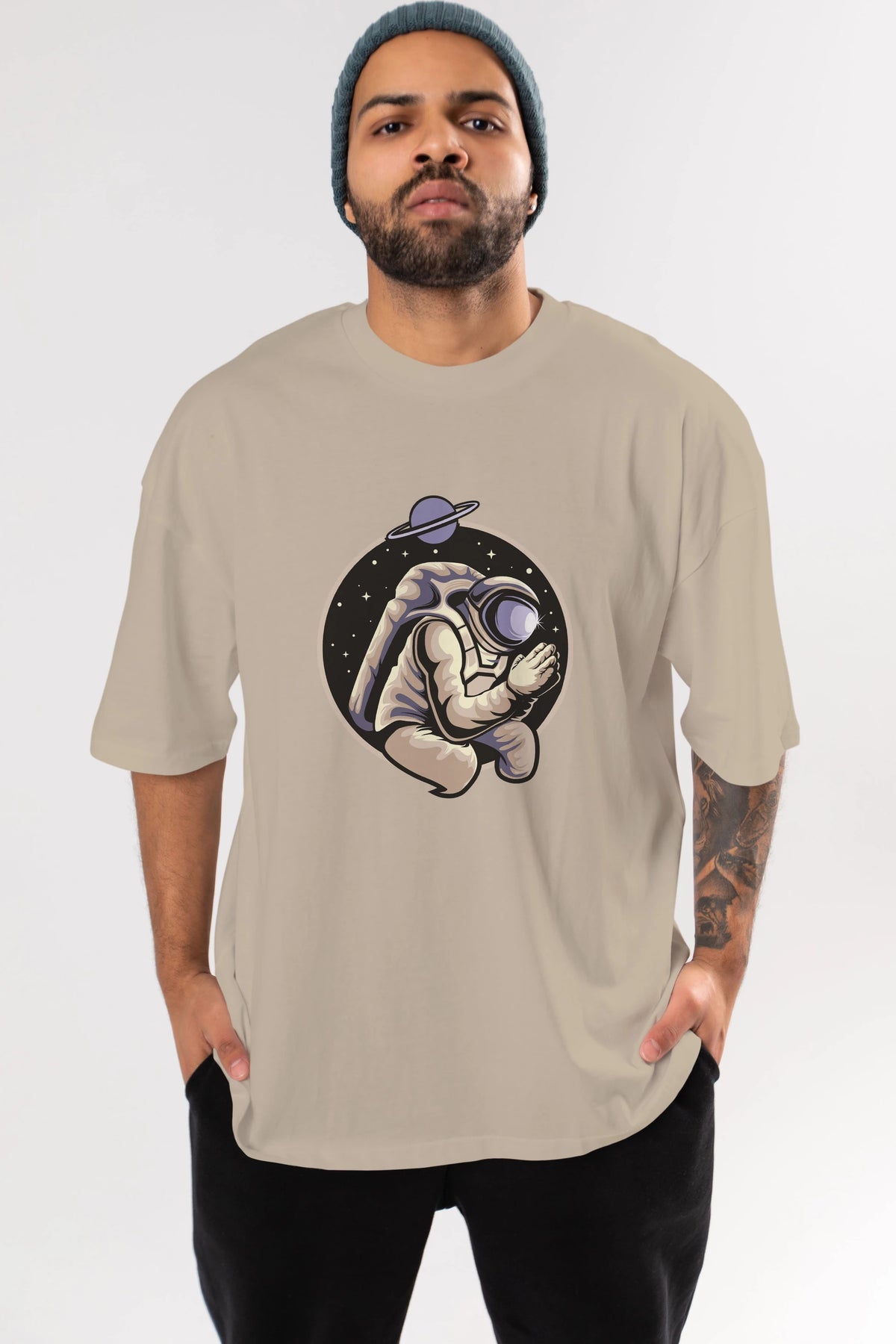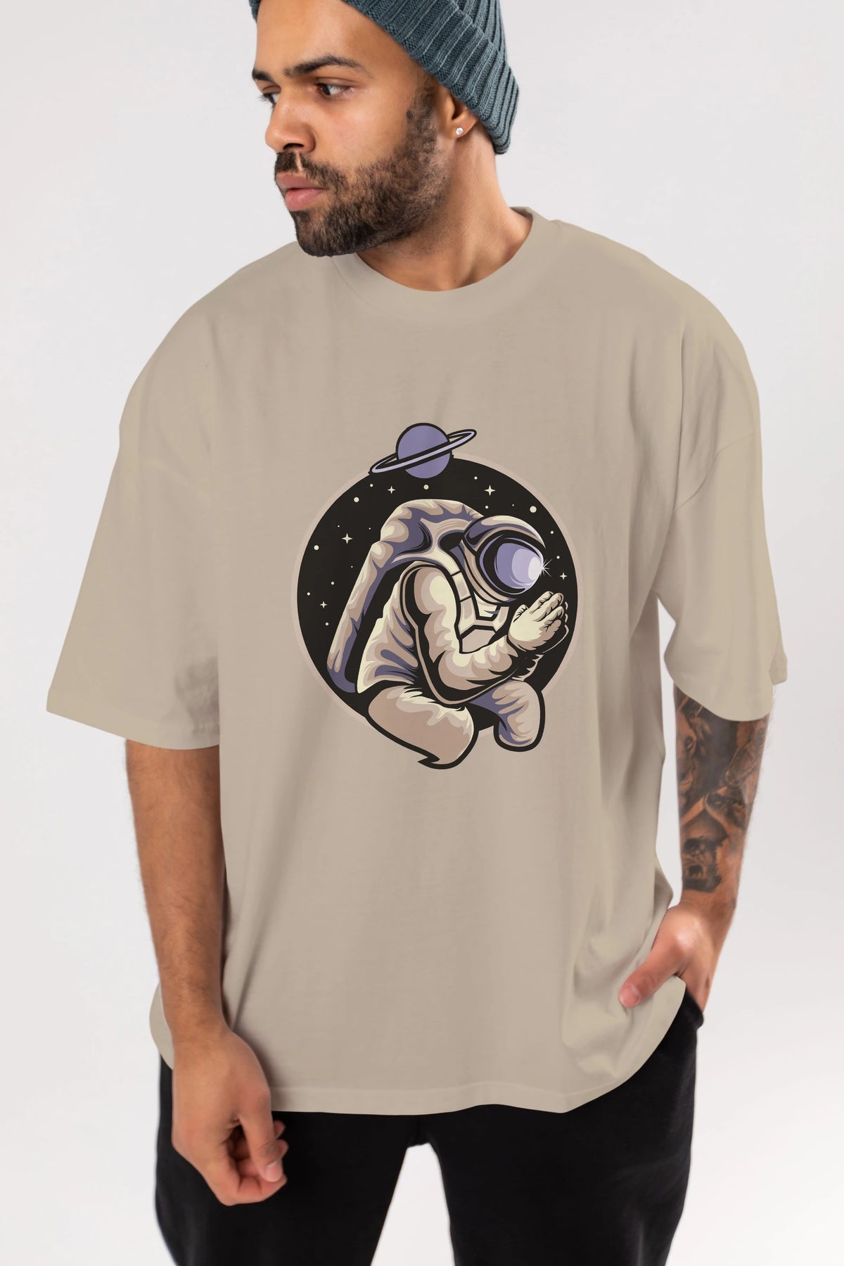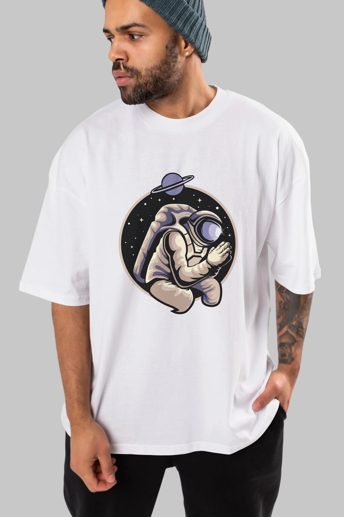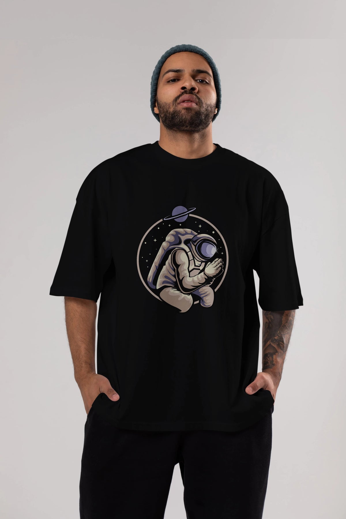 Astronaut Praying Ön Baskılı Oversize t-shirt Erkek Kadın Unisex