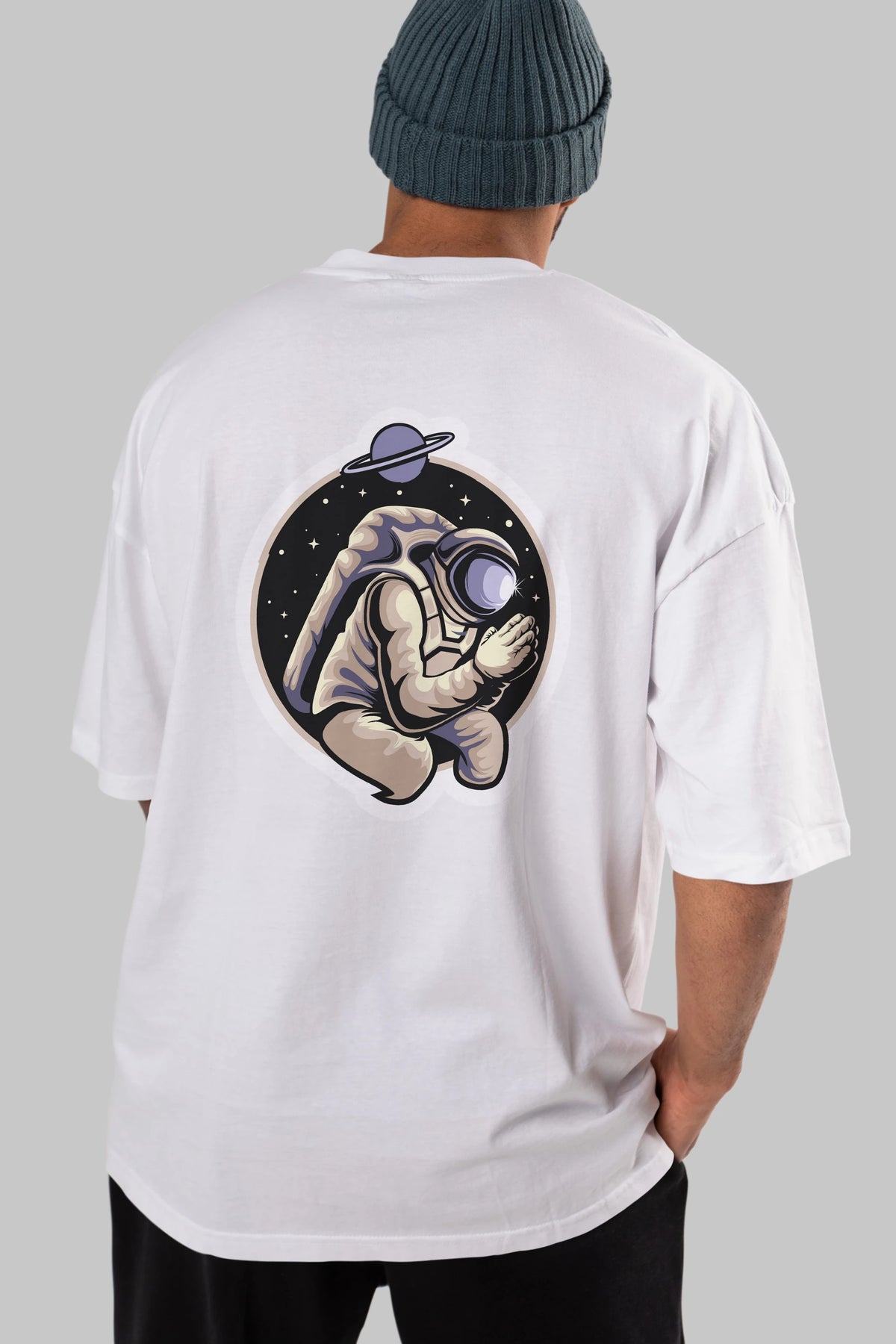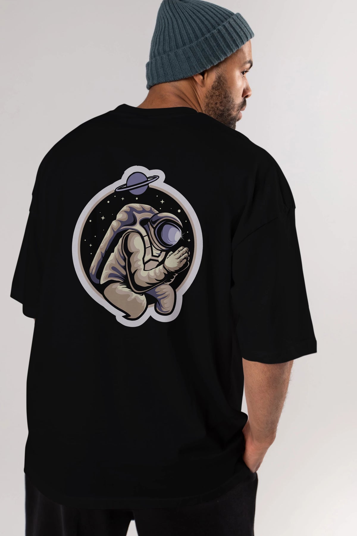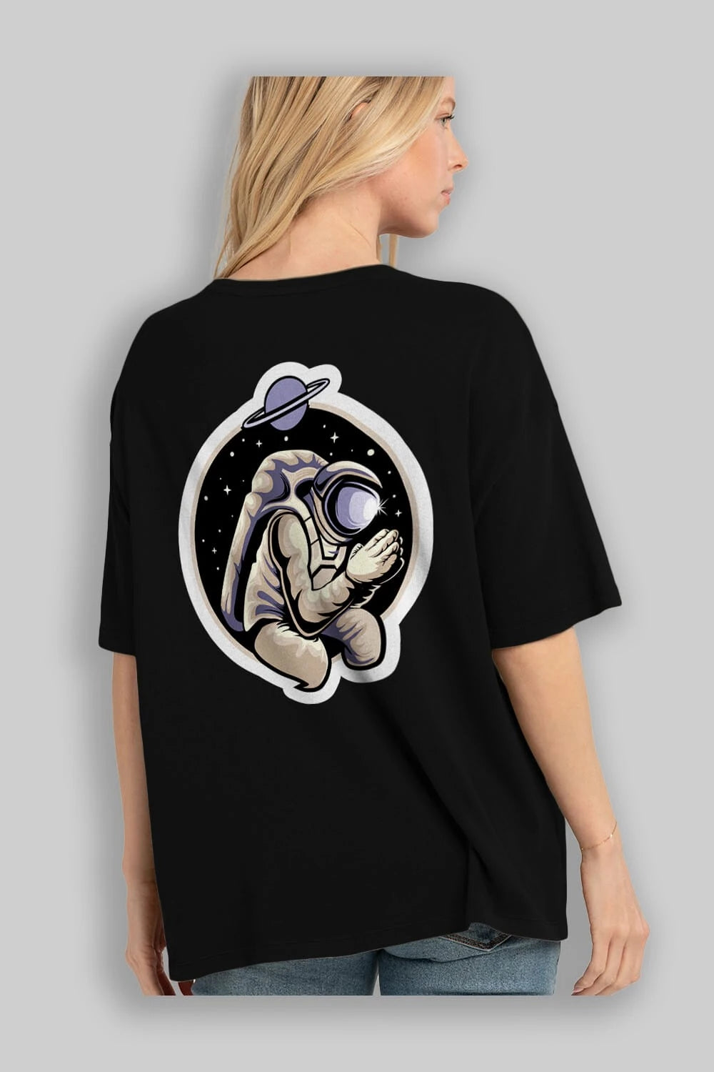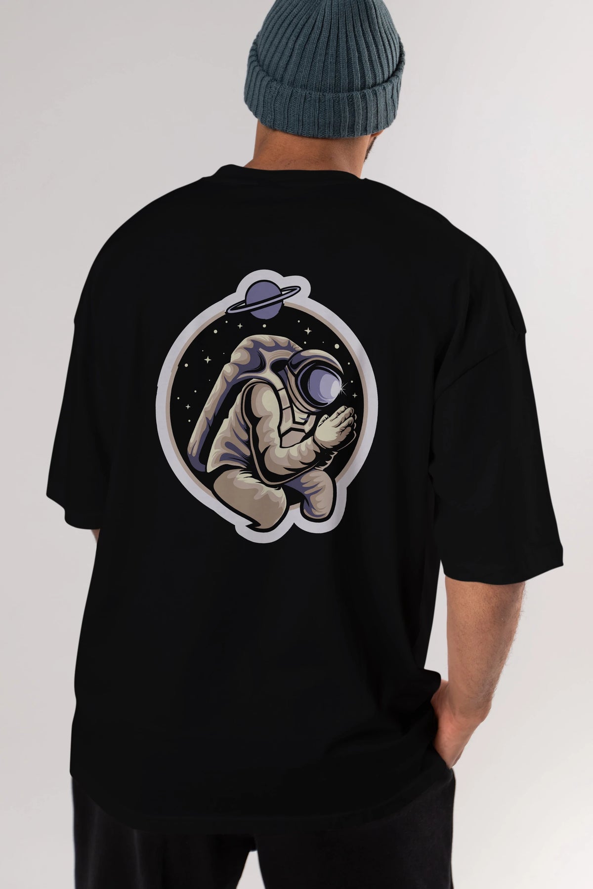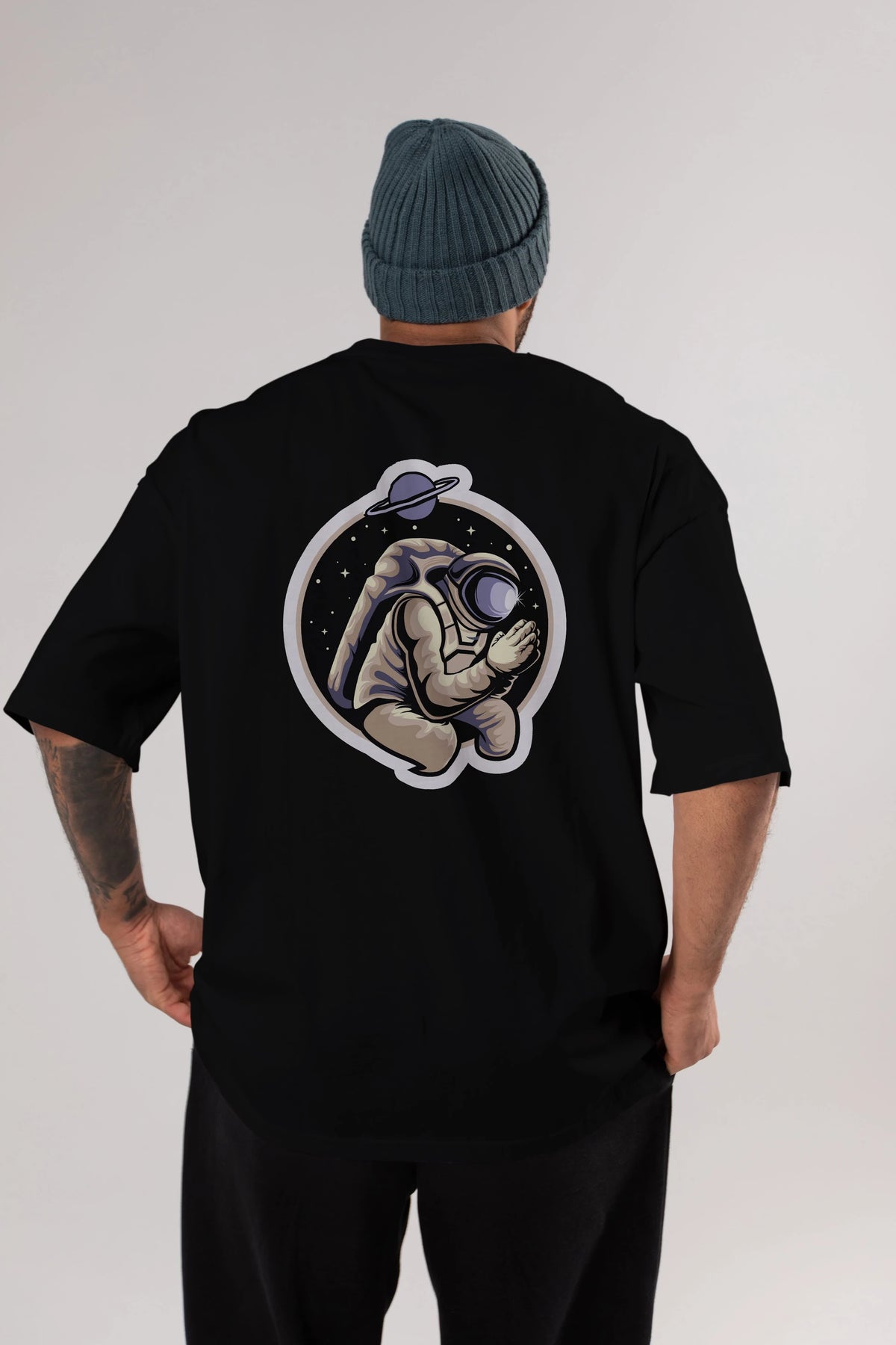 Astronaut Praying Sticker Arka Baskılı Oversize t-shirt Erkek Kadın Unisex