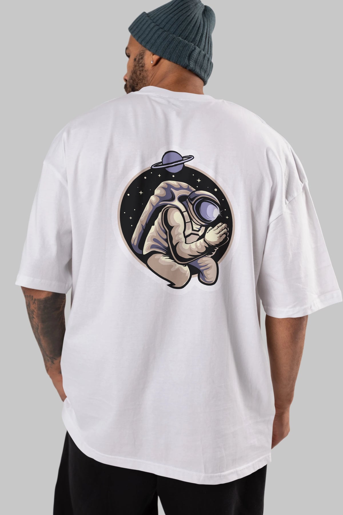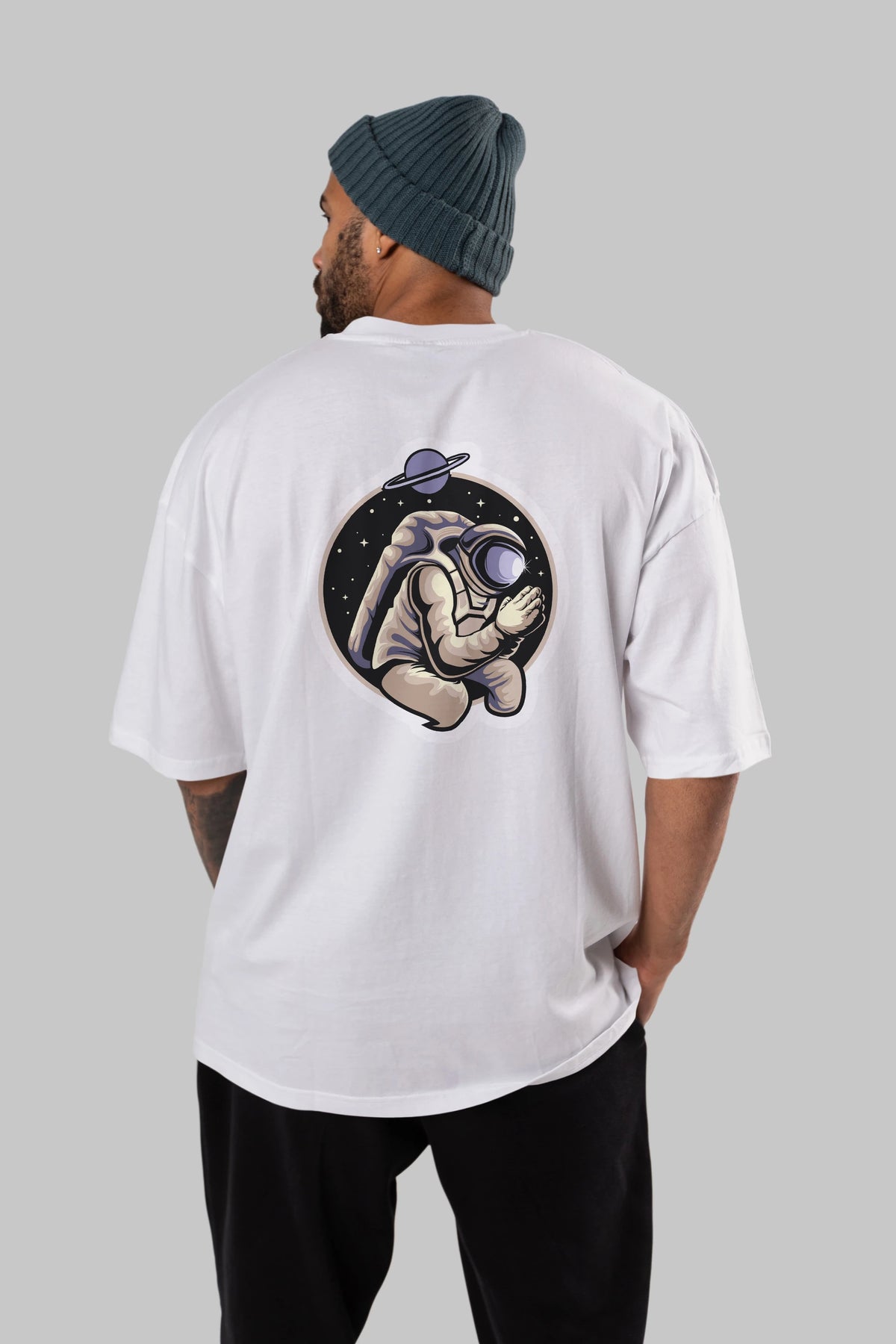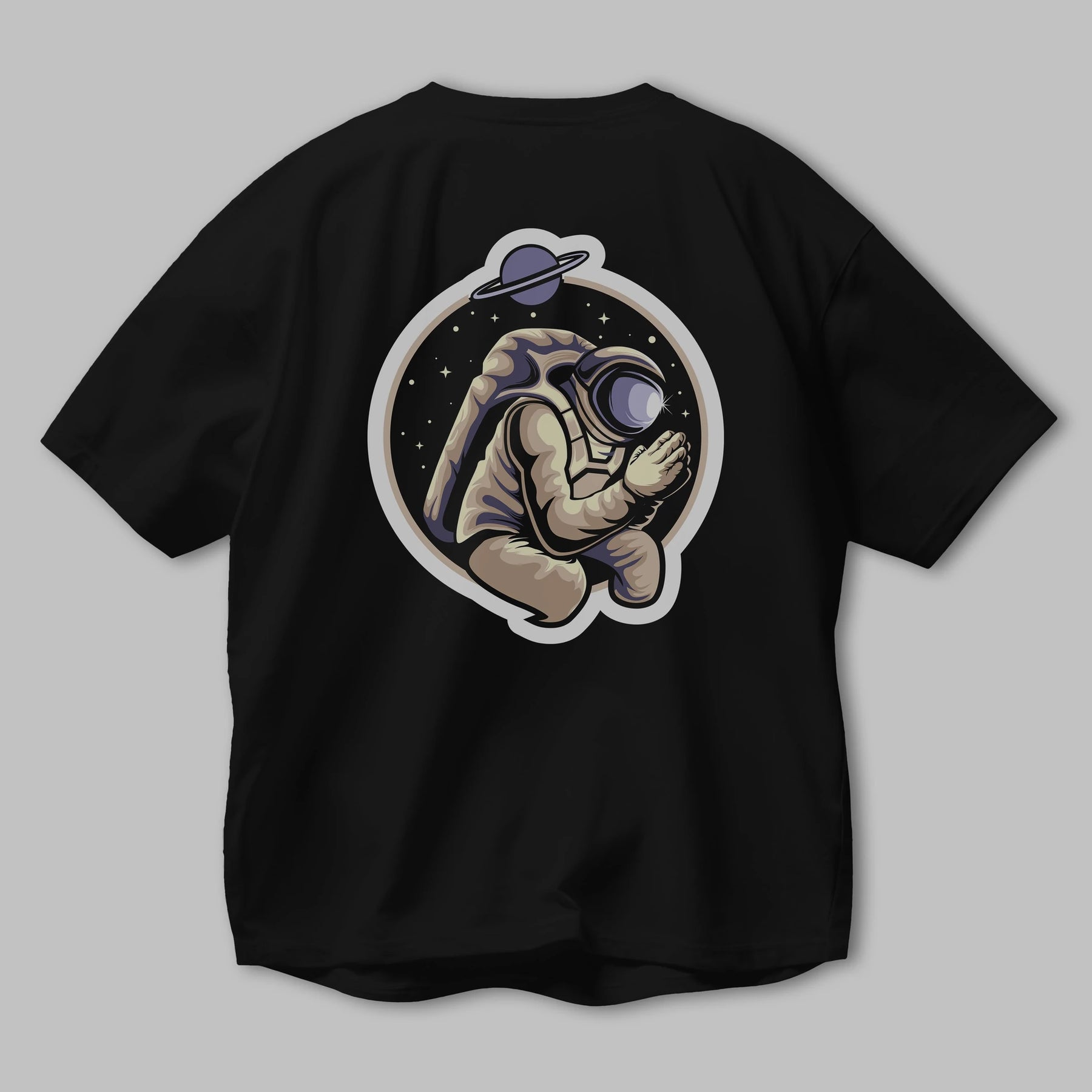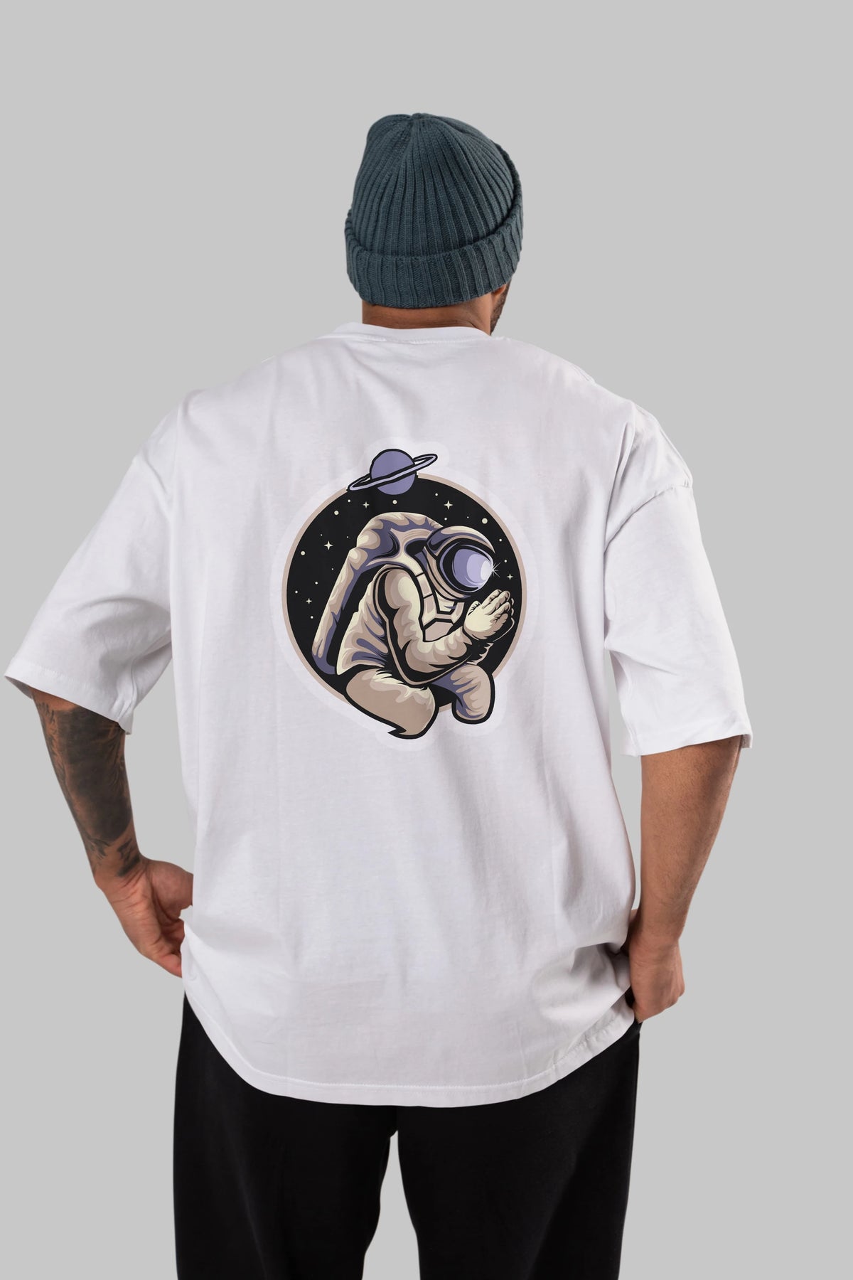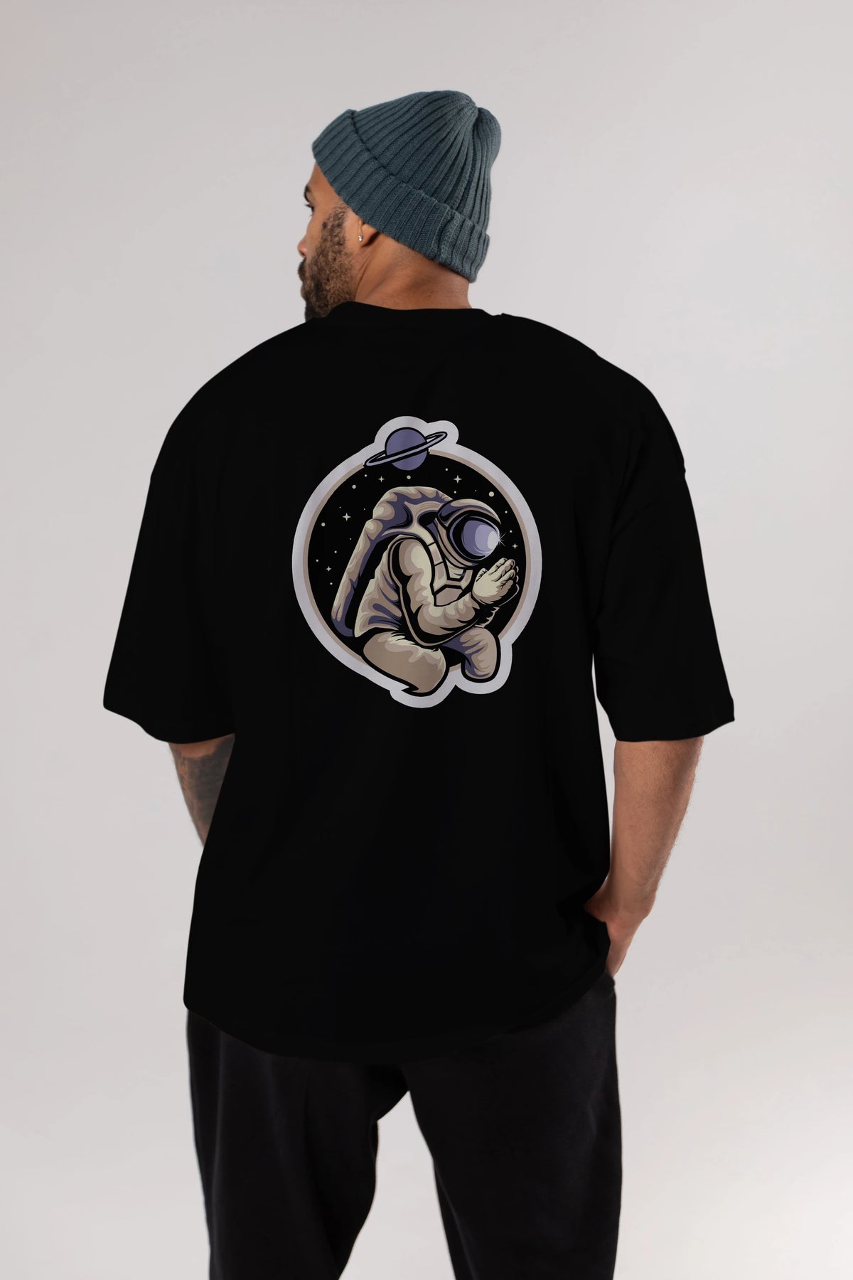 Astronaut Praying Sticker Arka Baskılı Oversize t-shirt Erkek Kadın Unisex