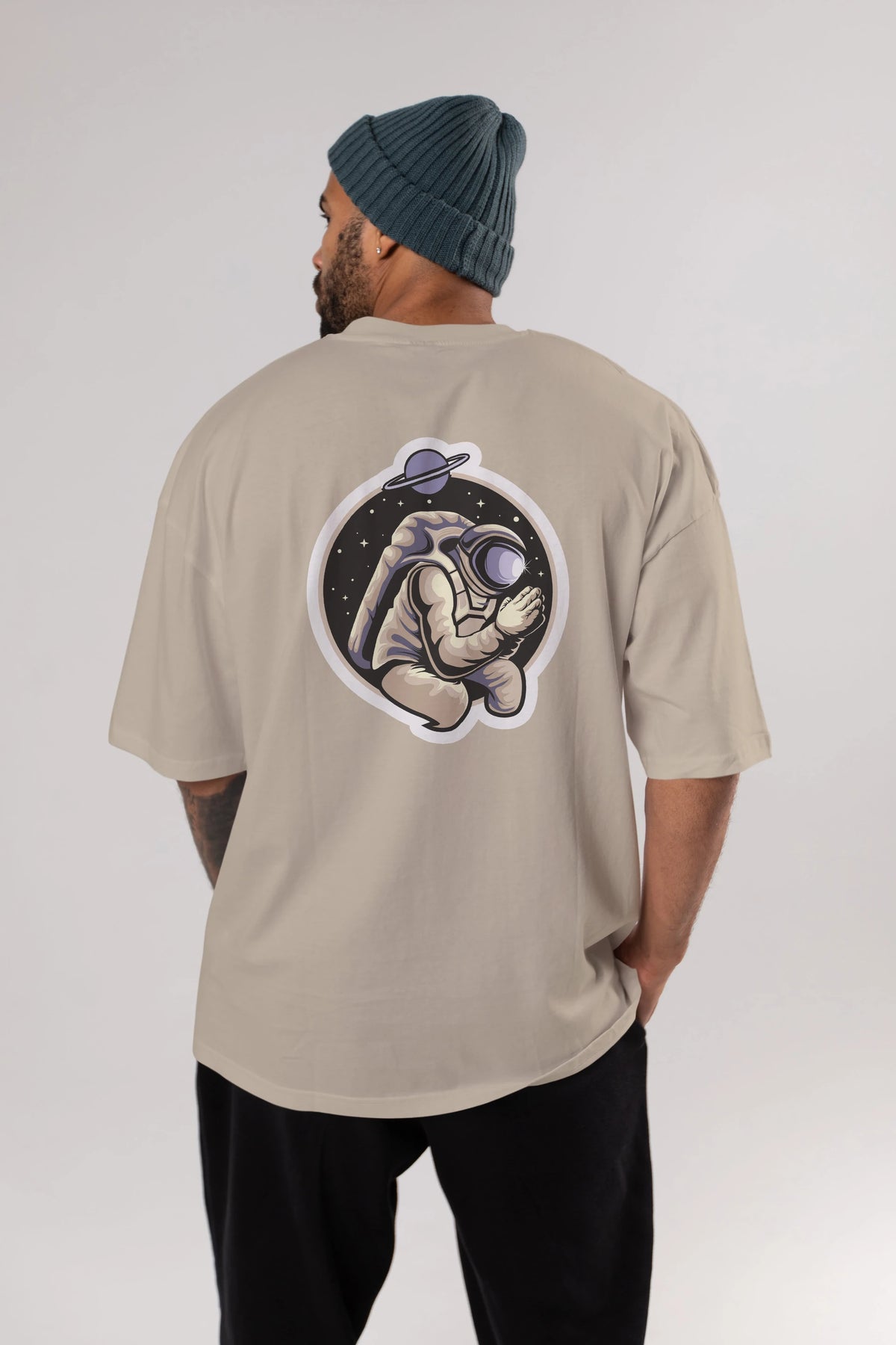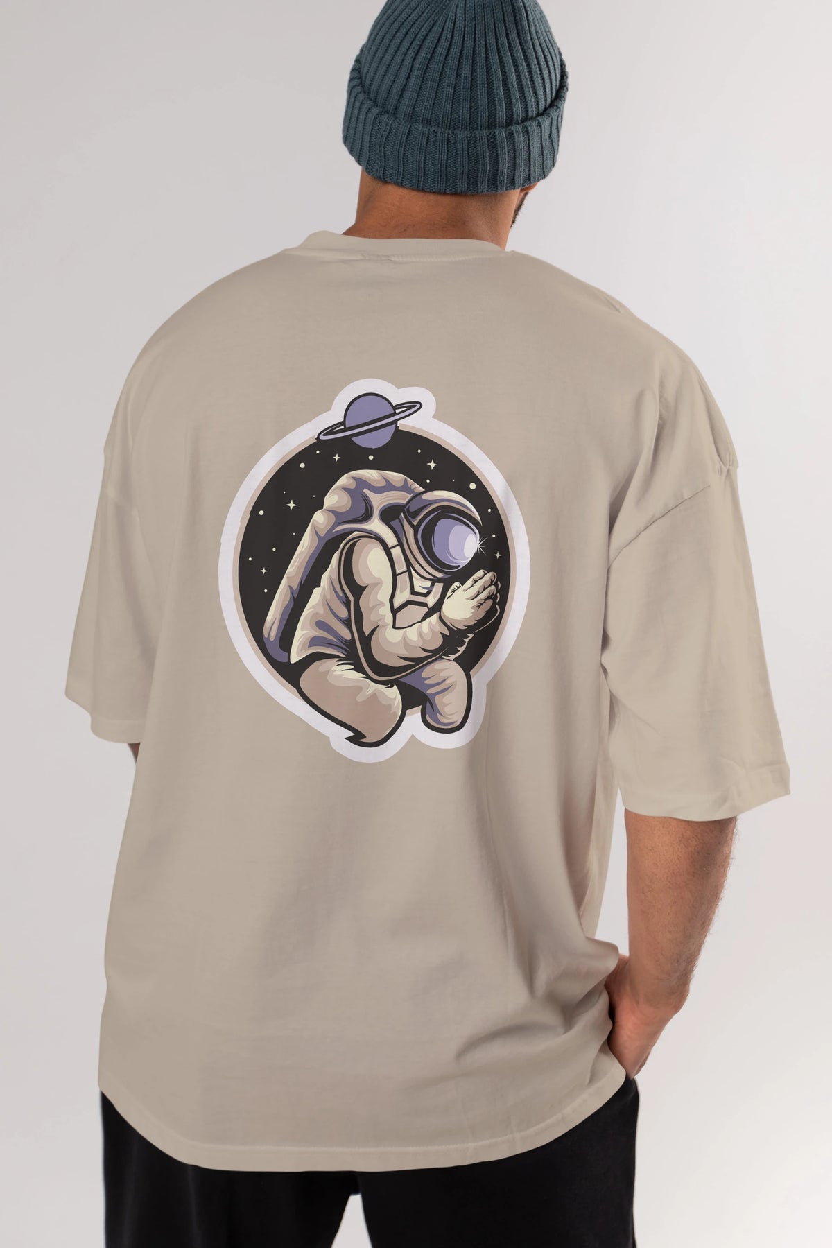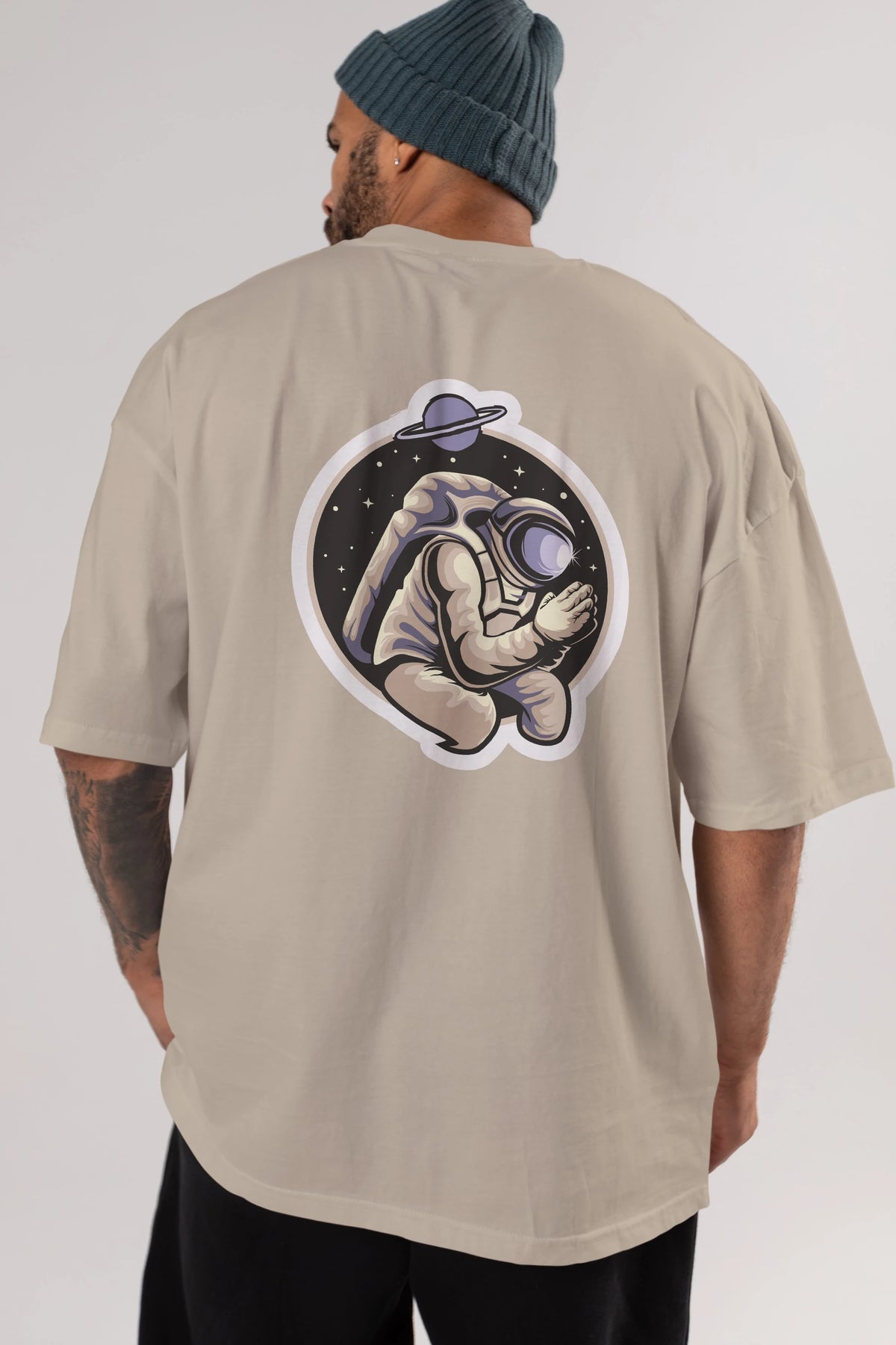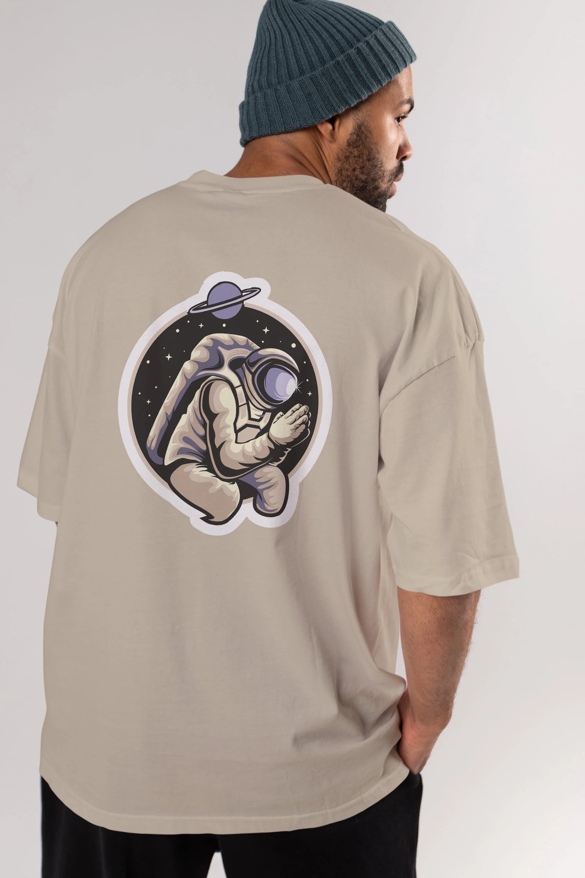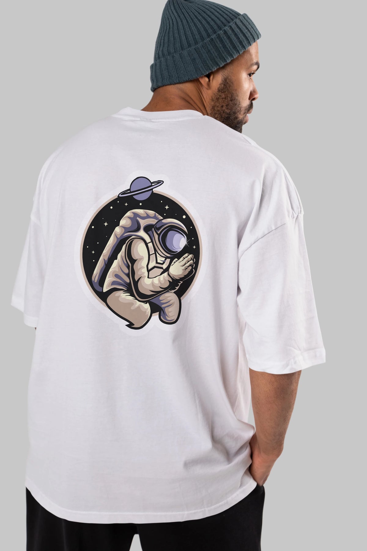 Astronaut Praying Sticker Arka Baskılı Oversize t-shirt Erkek Kadın Unisex