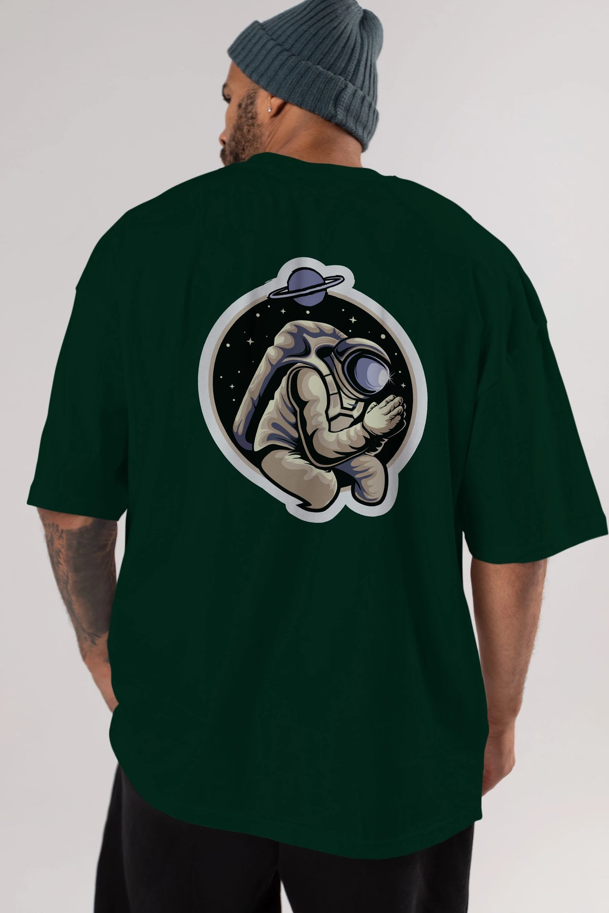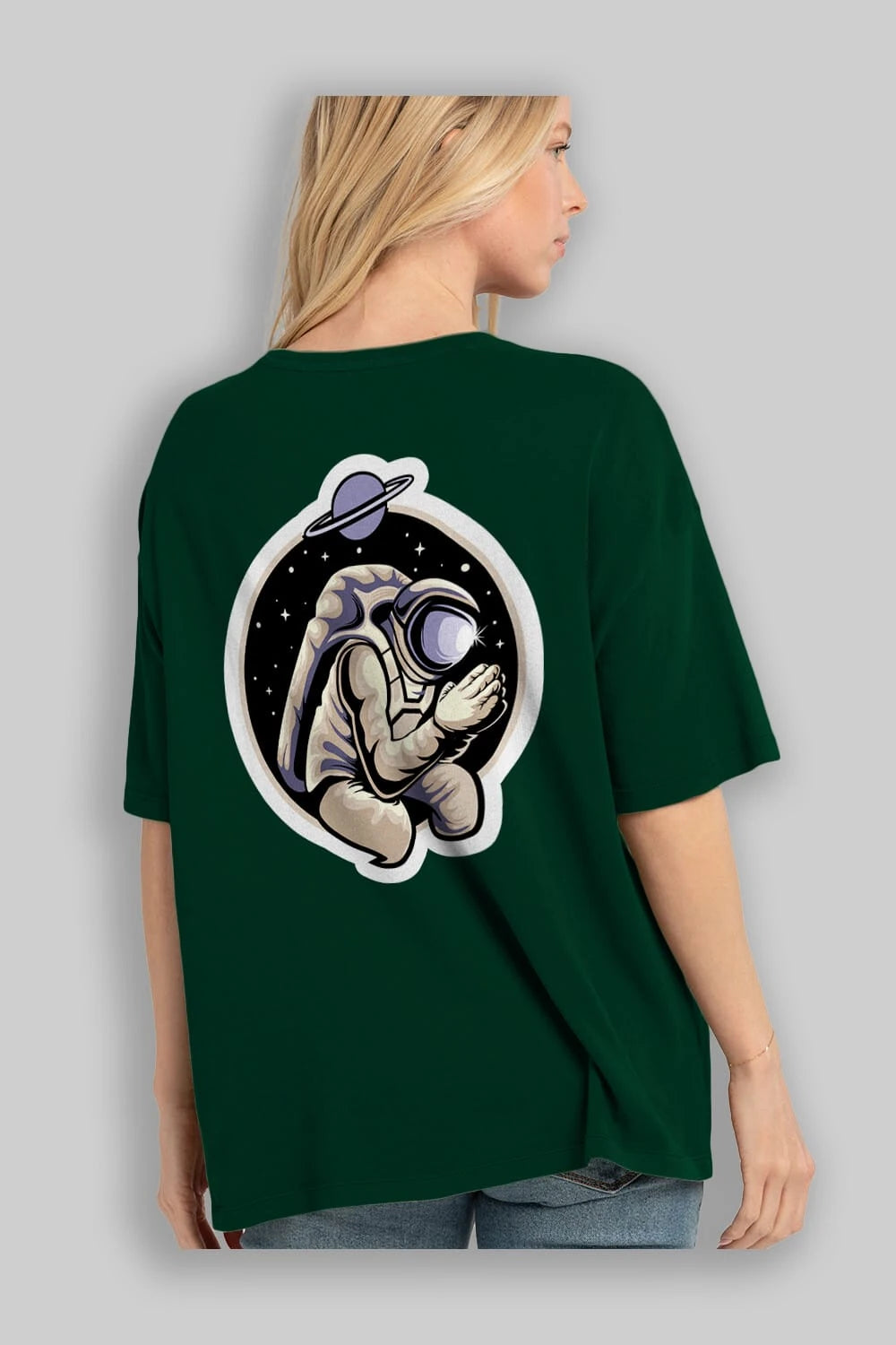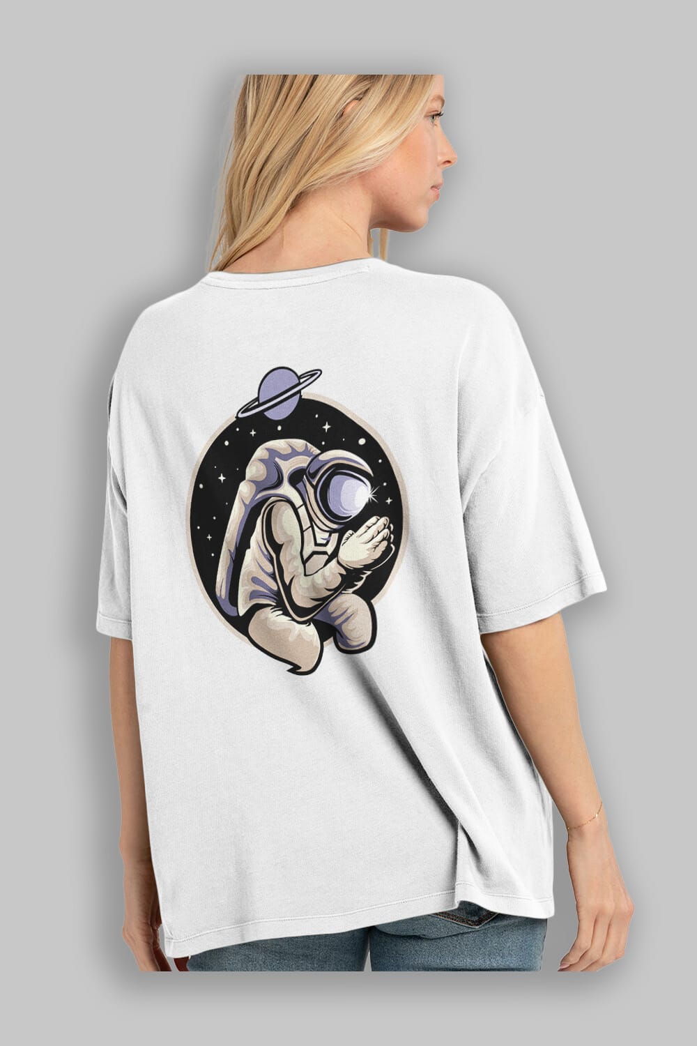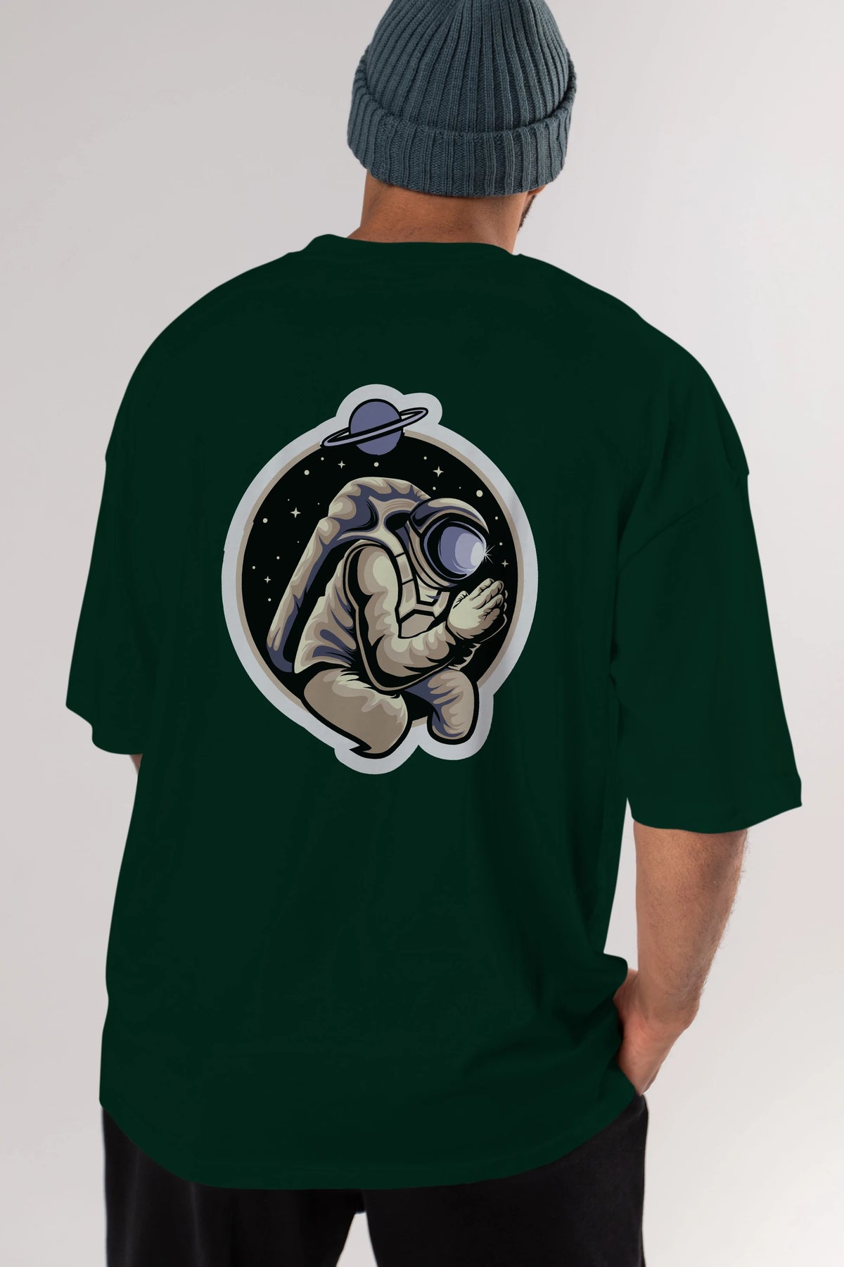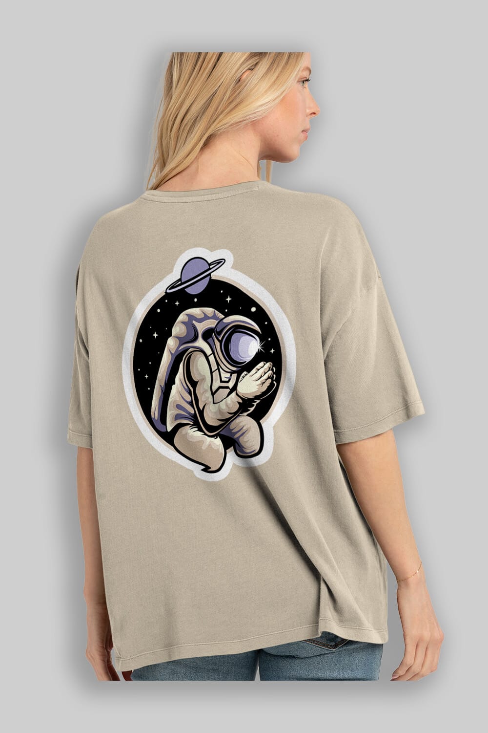 Astronaut Praying Sticker Arka Baskılı Oversize t-shirt Erkek Kadın Unisex
