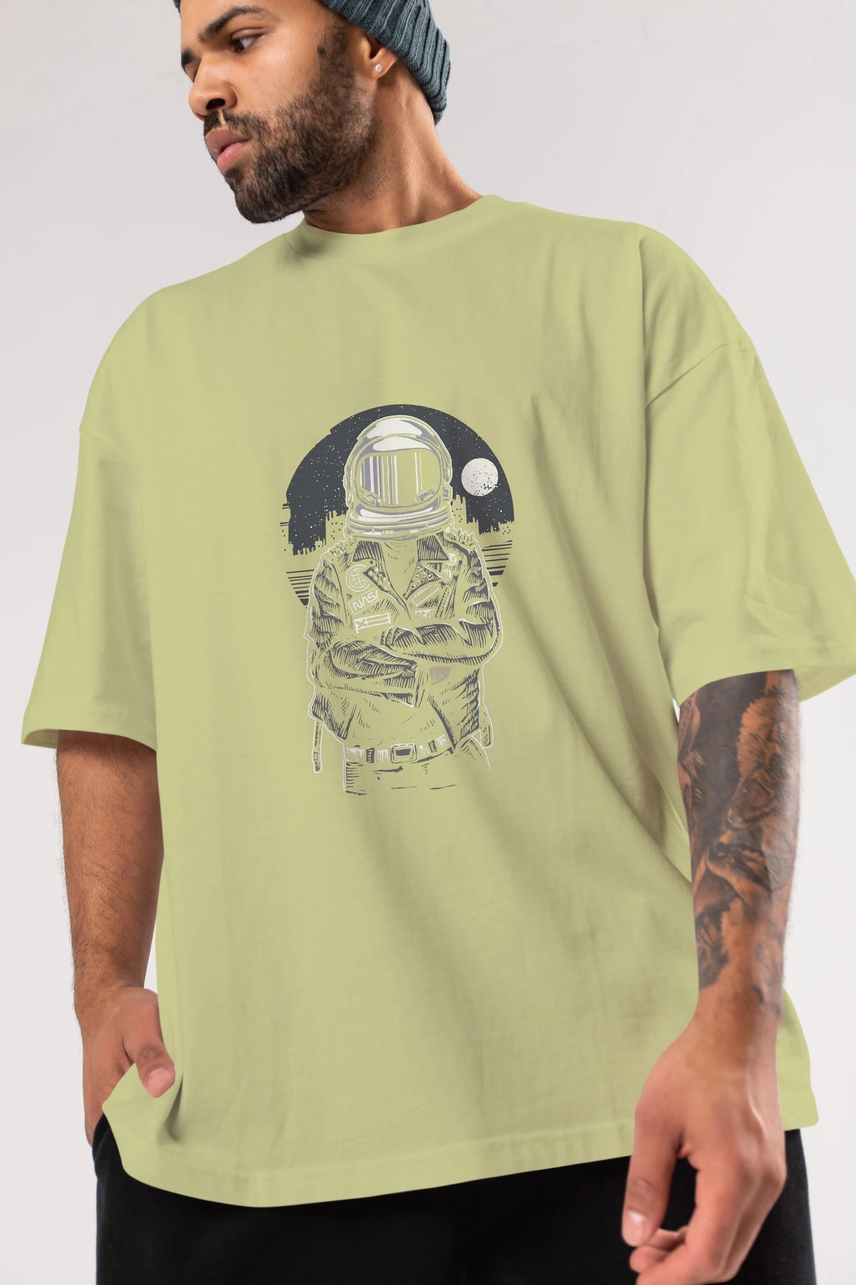 Astronaut Rebel Ön Baskılı Oversize t-shirt Erkek Kadın Unisex %100 Pamuk tişort