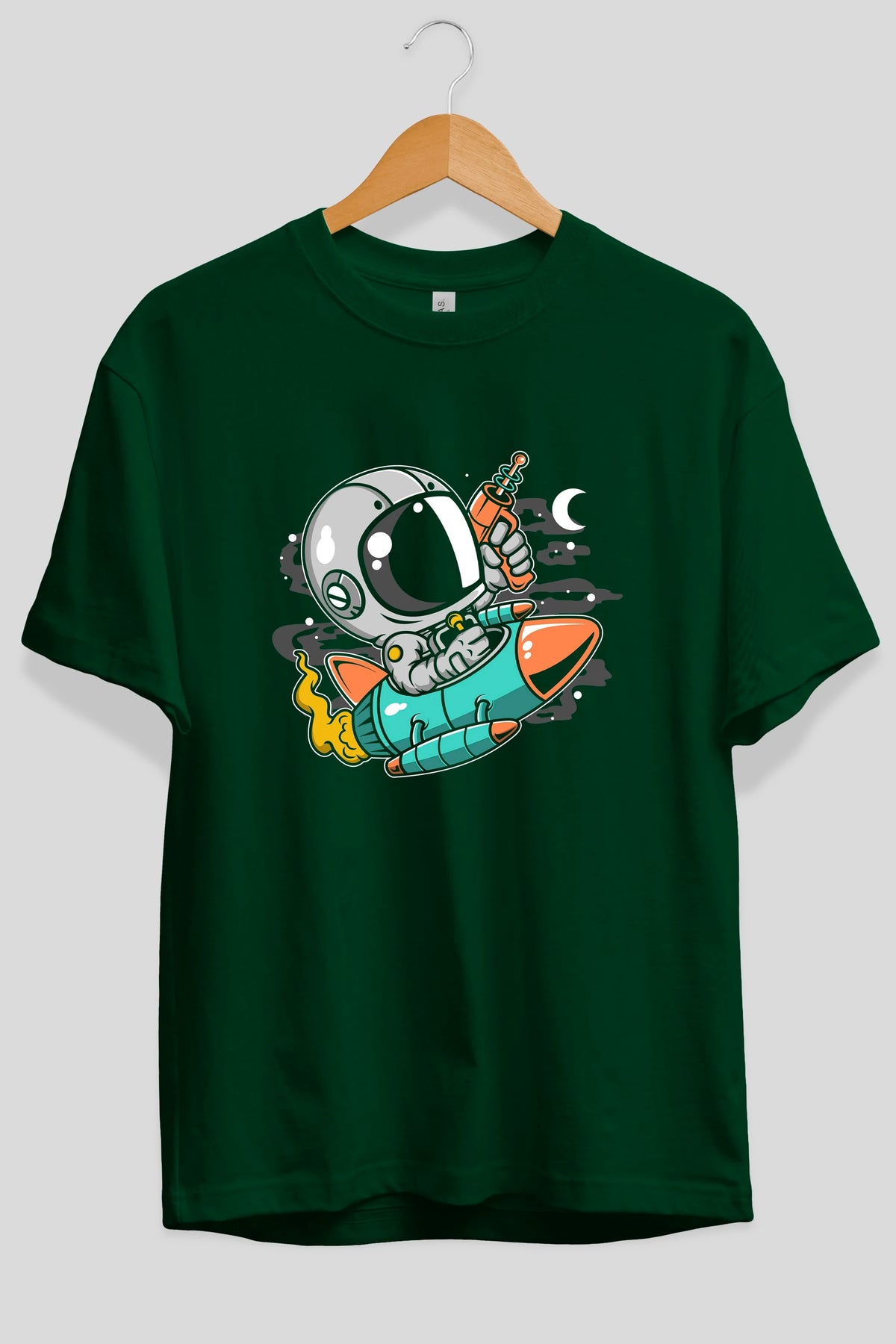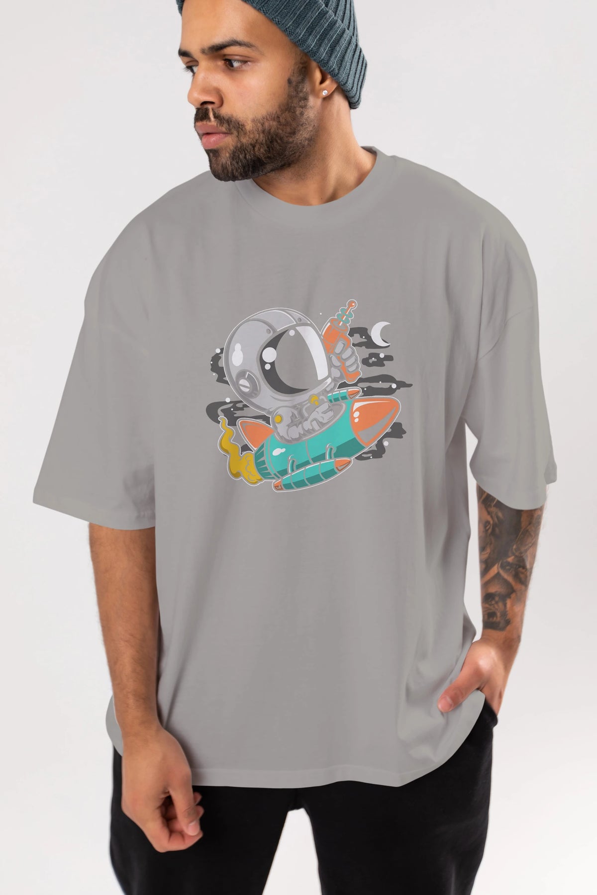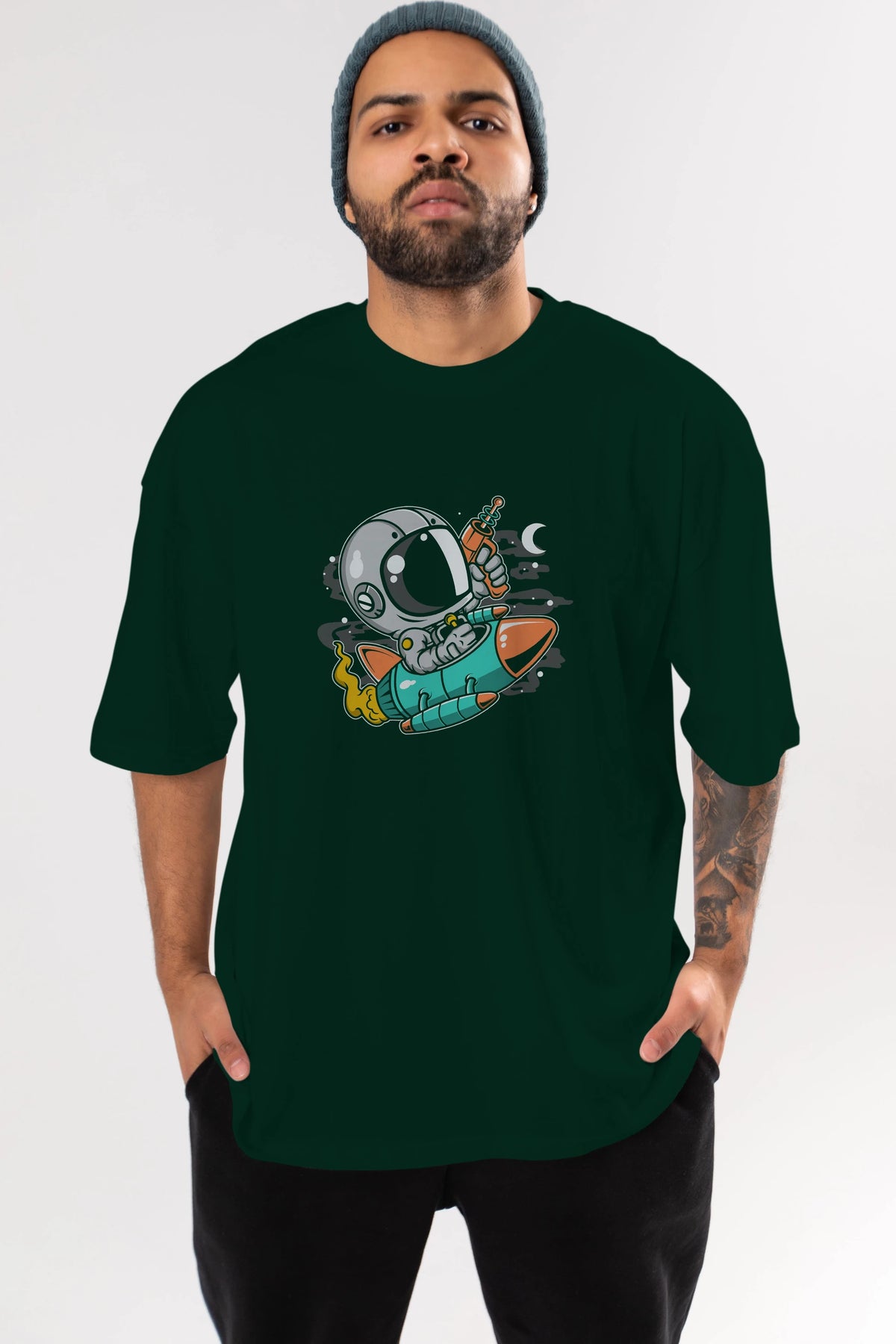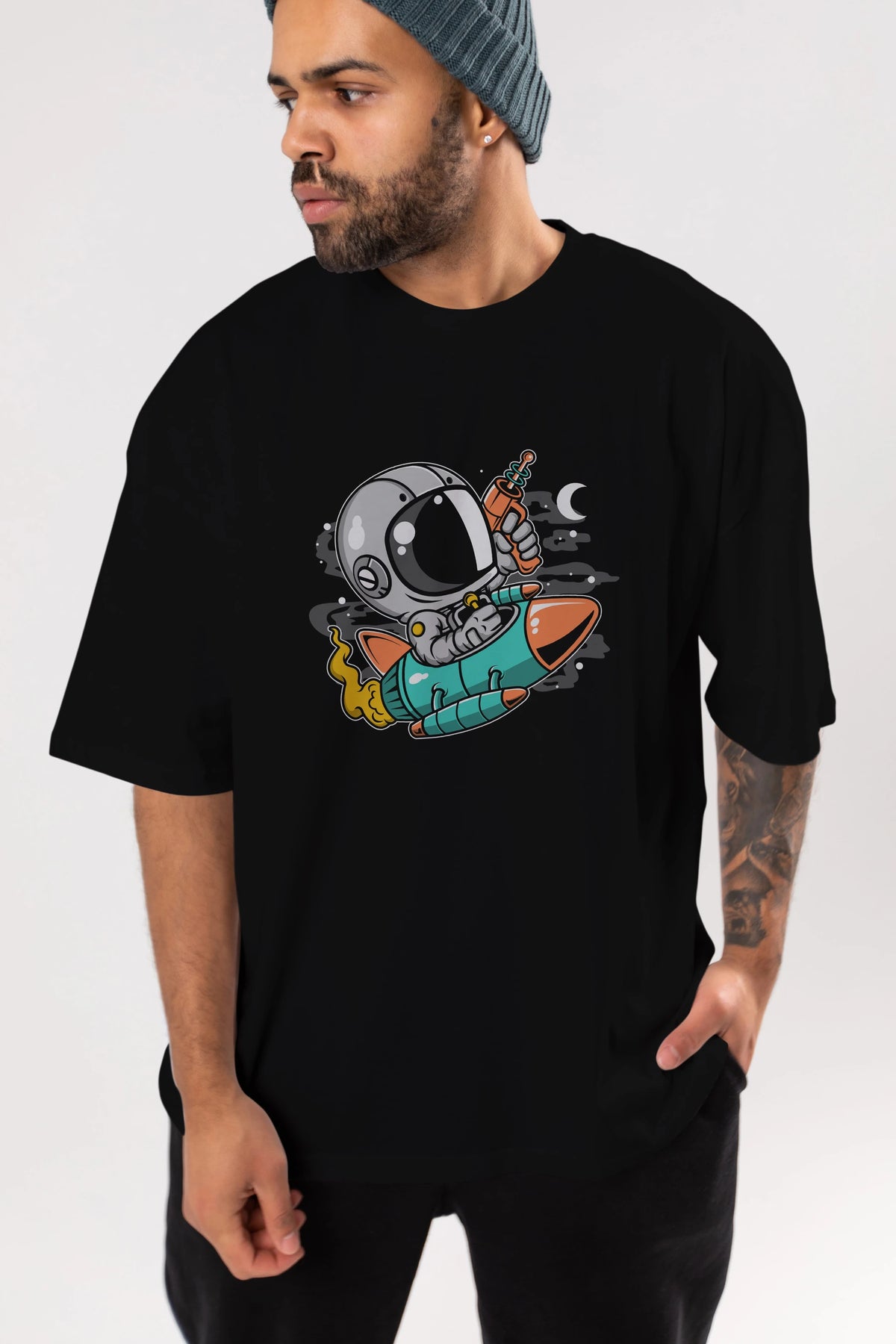 Astronaut Riding Rocket Ön Baskılı Oversize t-shirt Erkek Kadın Unisex