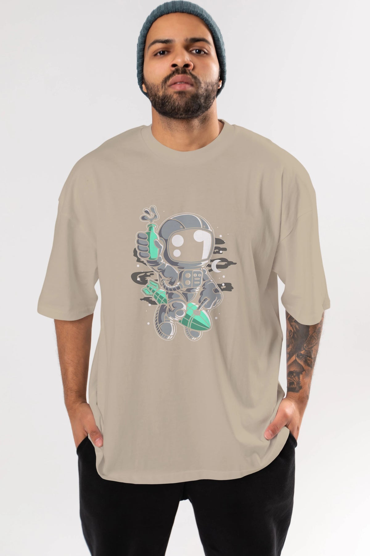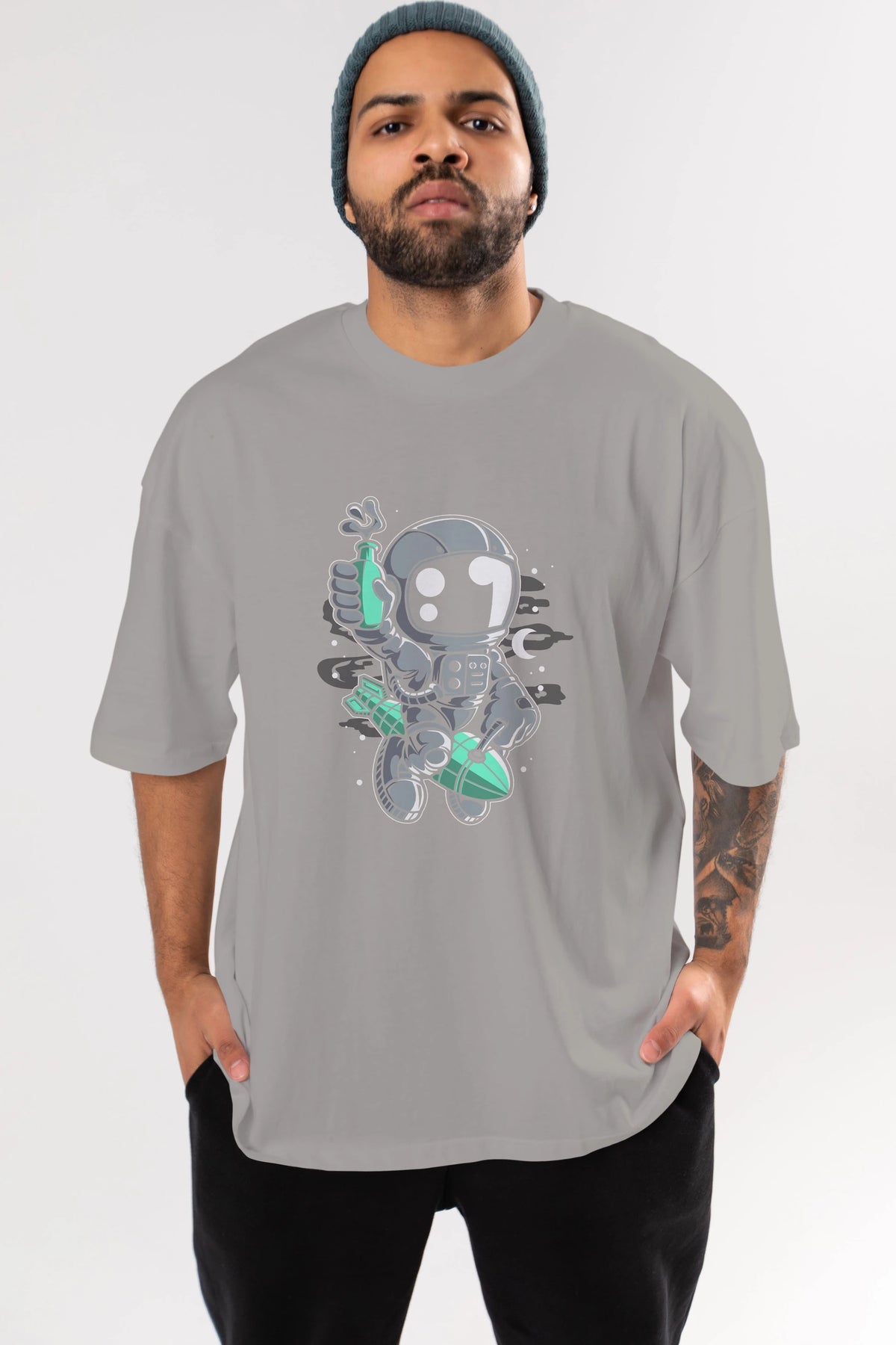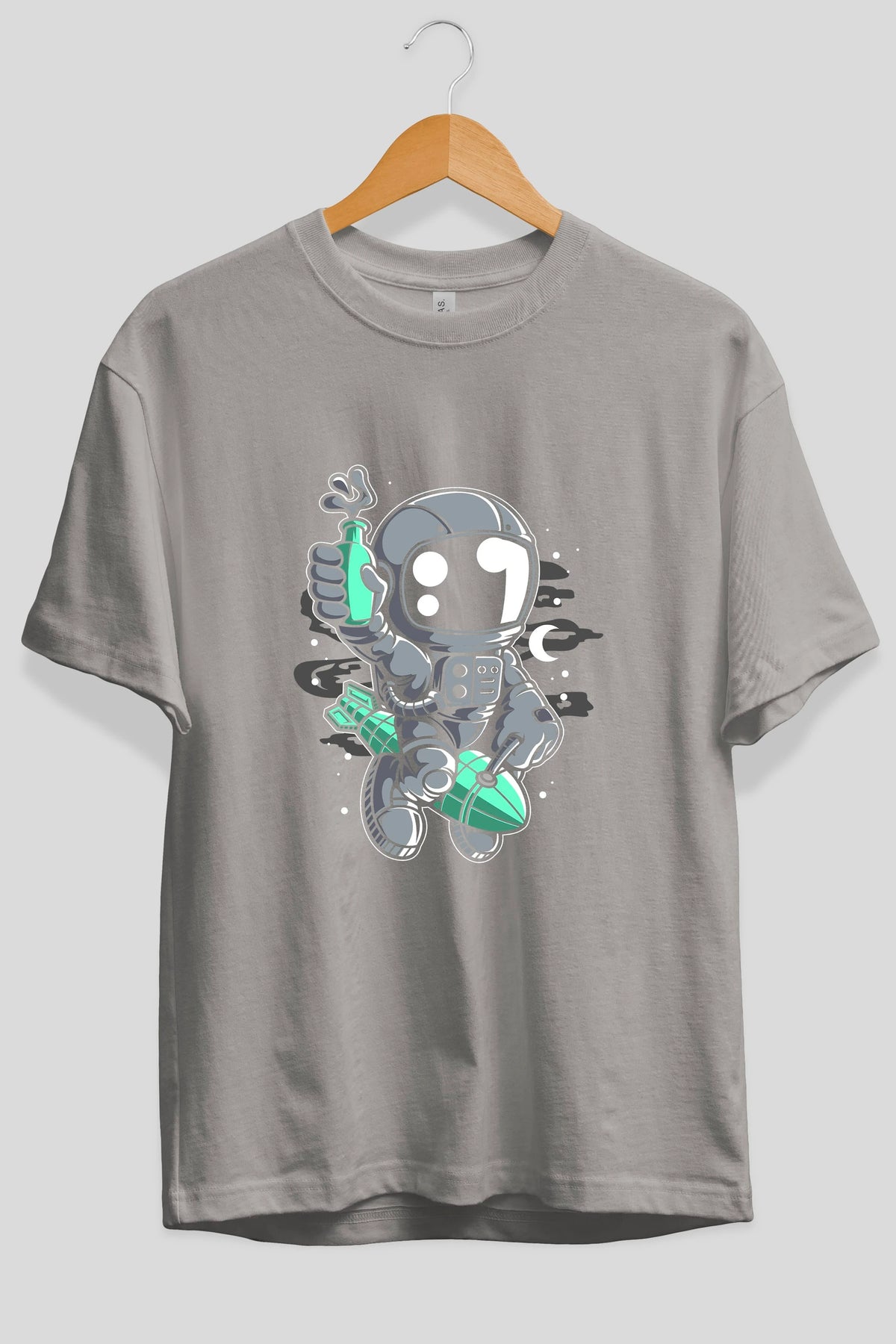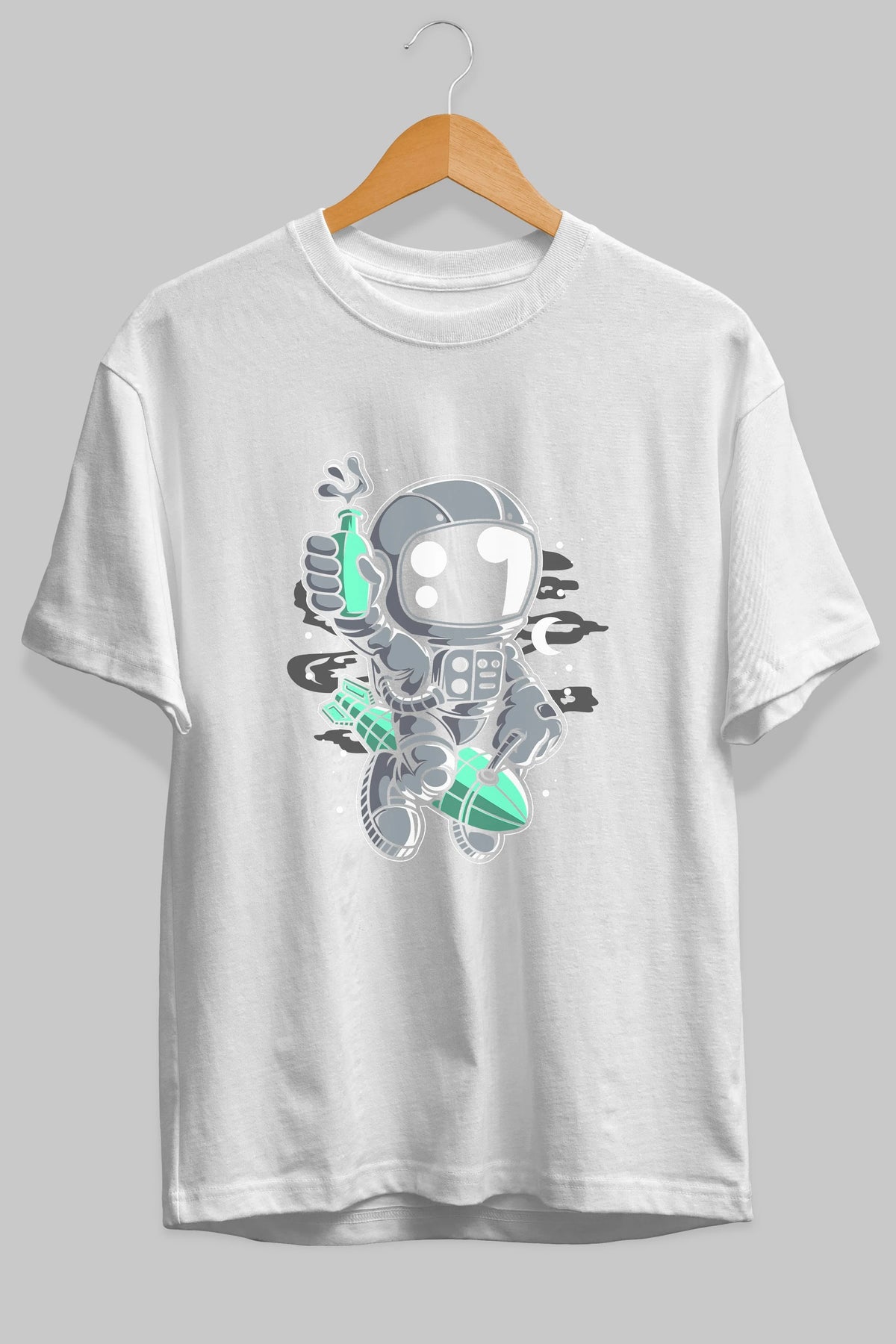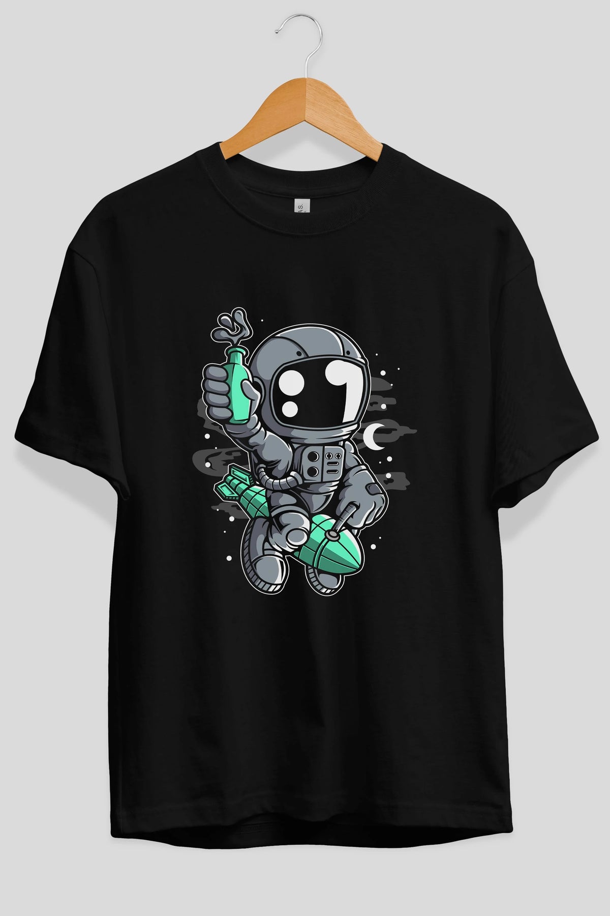 Astronaut Rocket Ön Baskılı Oversize t-shirt Erkek Kadın Unisex