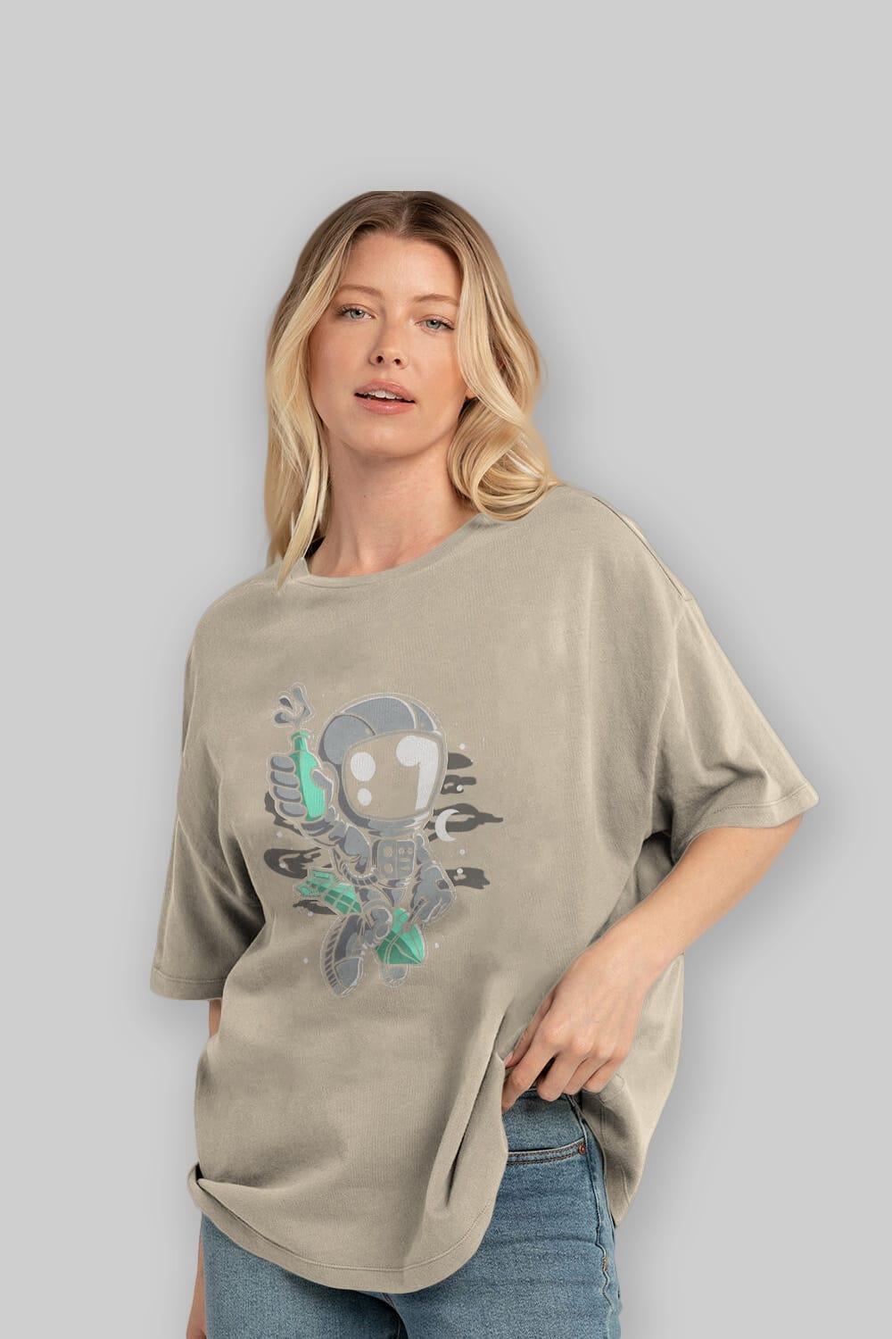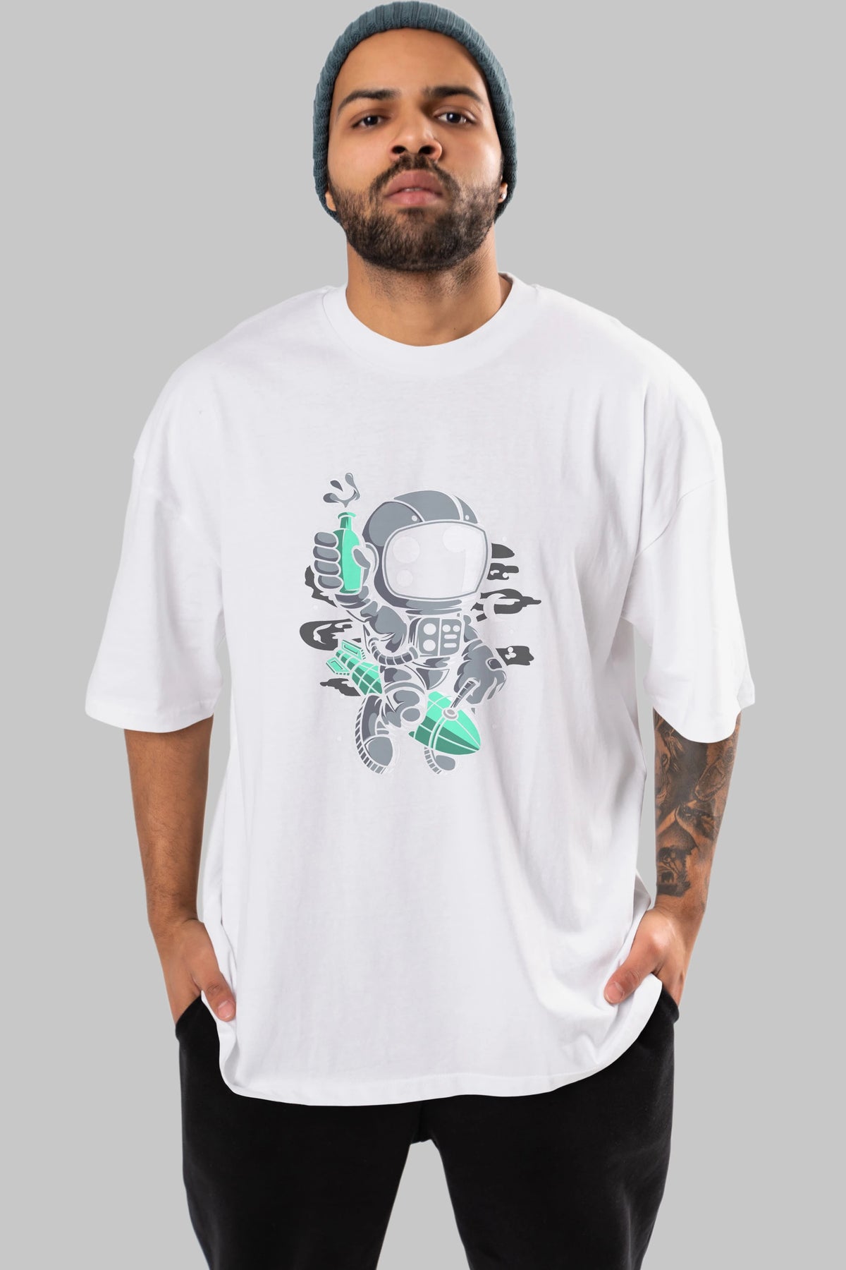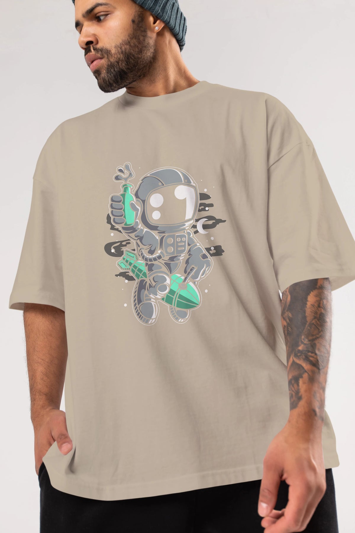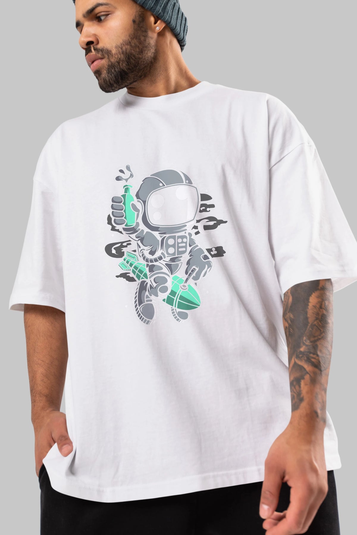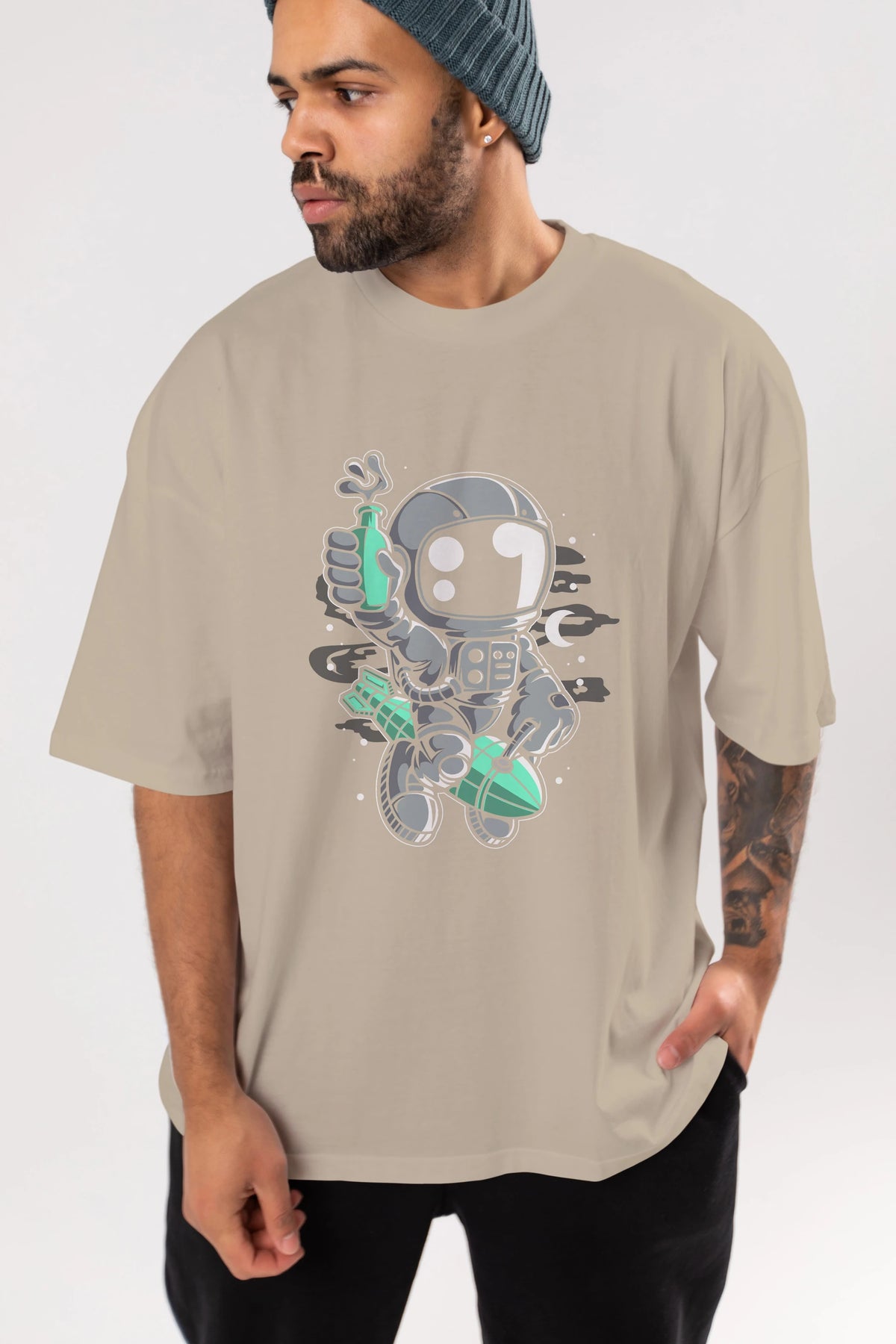 Astronaut Rocket Ön Baskılı Oversize t-shirt Erkek Kadın Unisex
