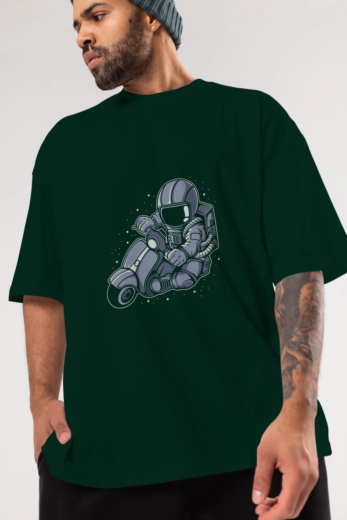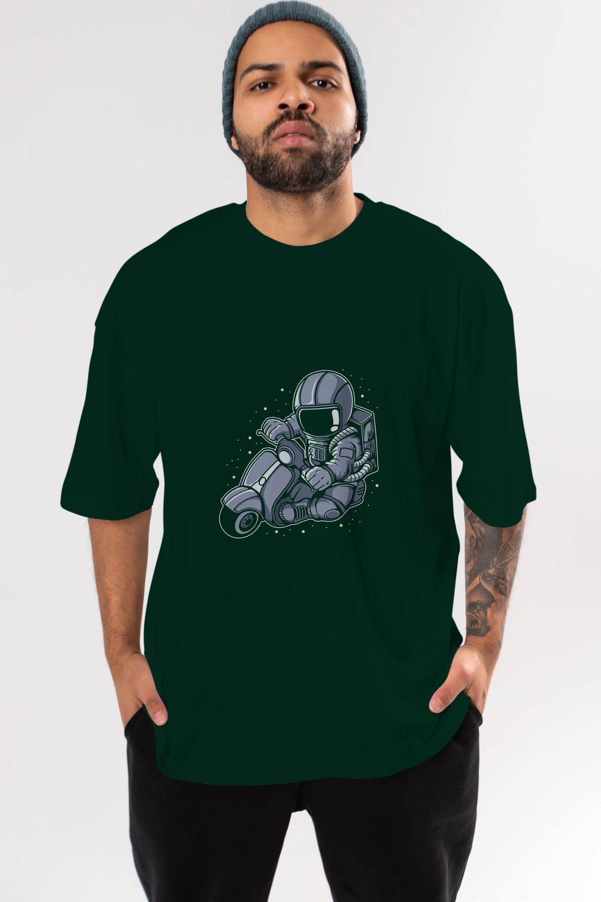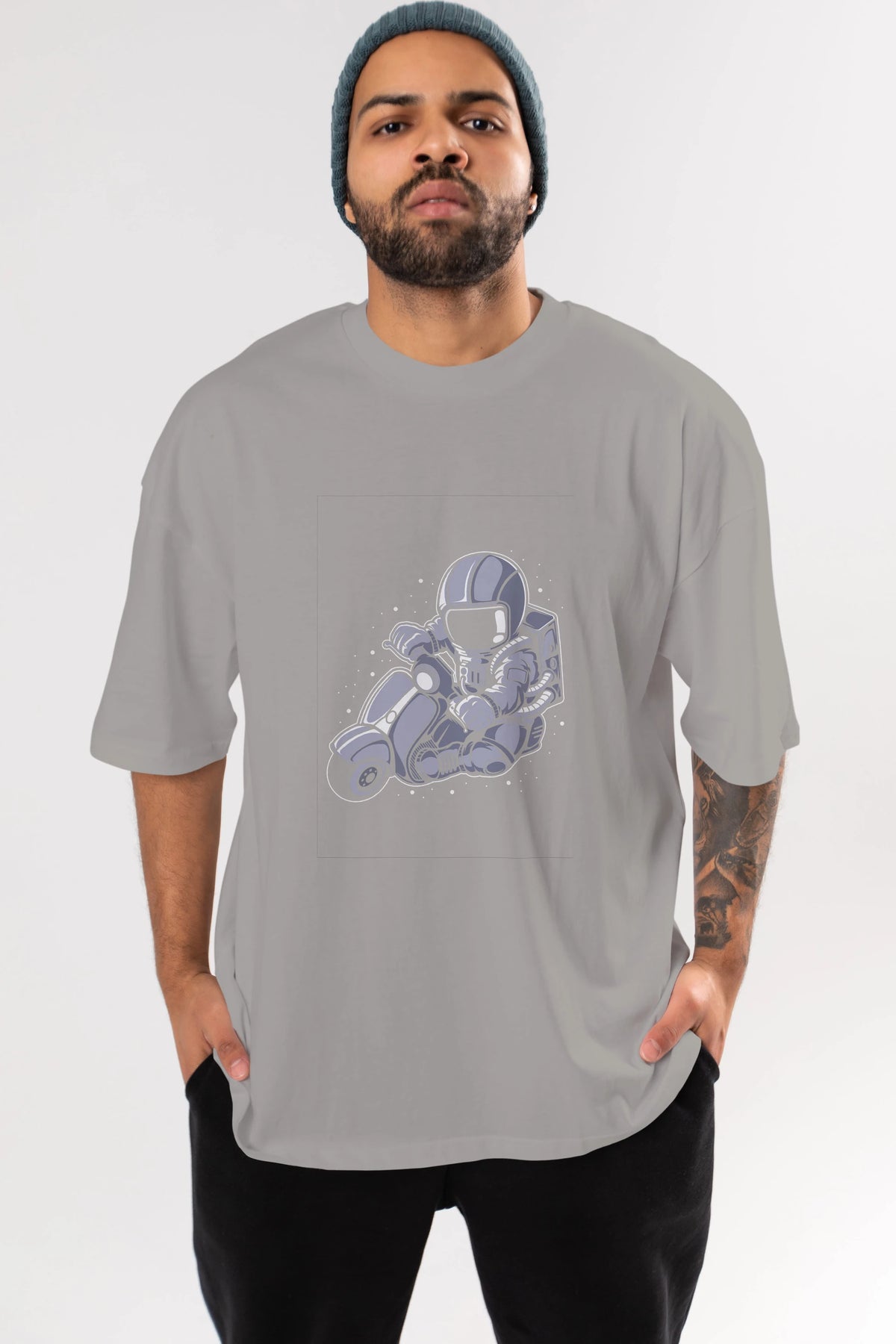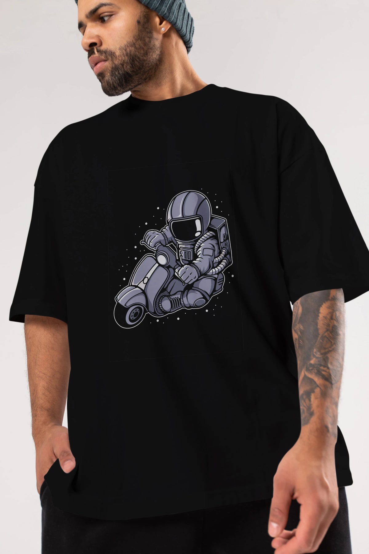 Astronaut Scooter (2) Ön Baskılı Oversize t-shirt Erkek Kadın Unisex