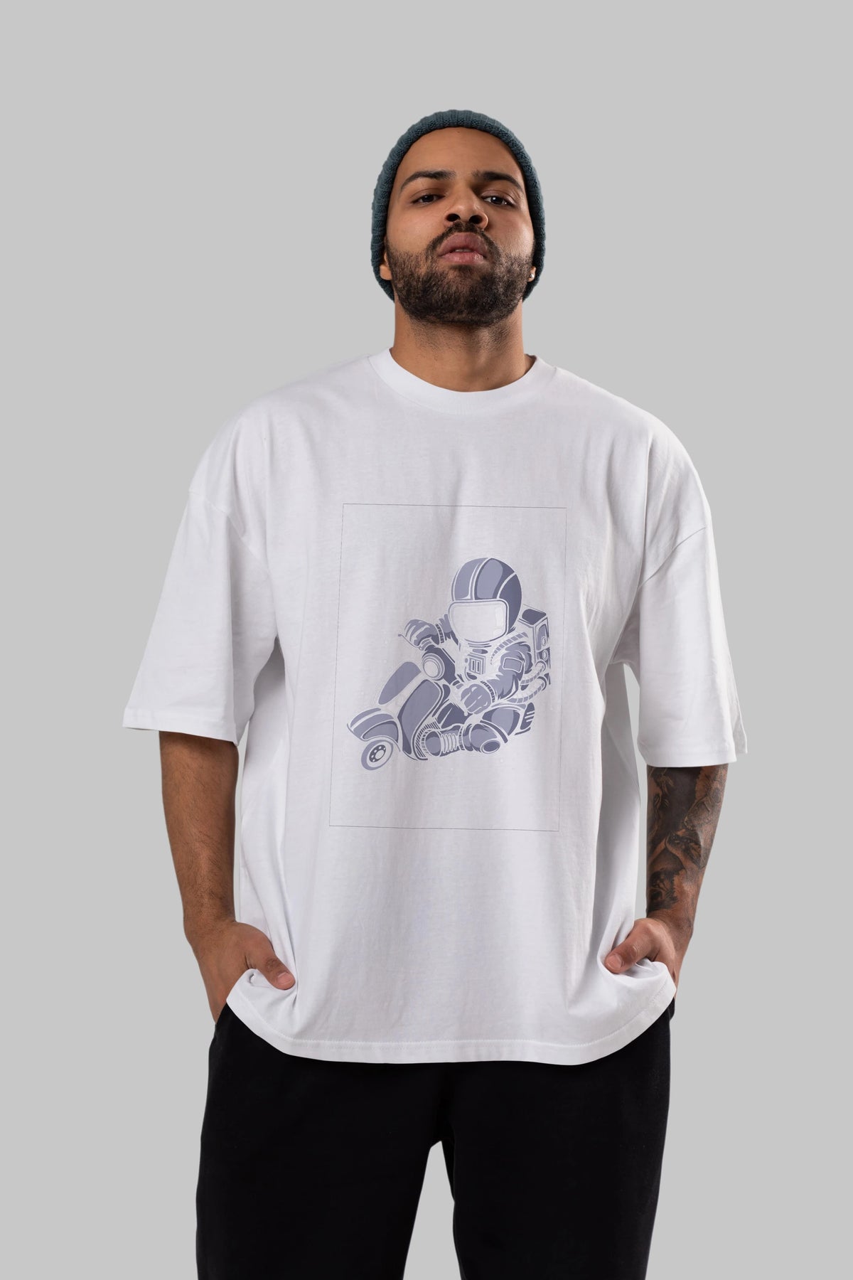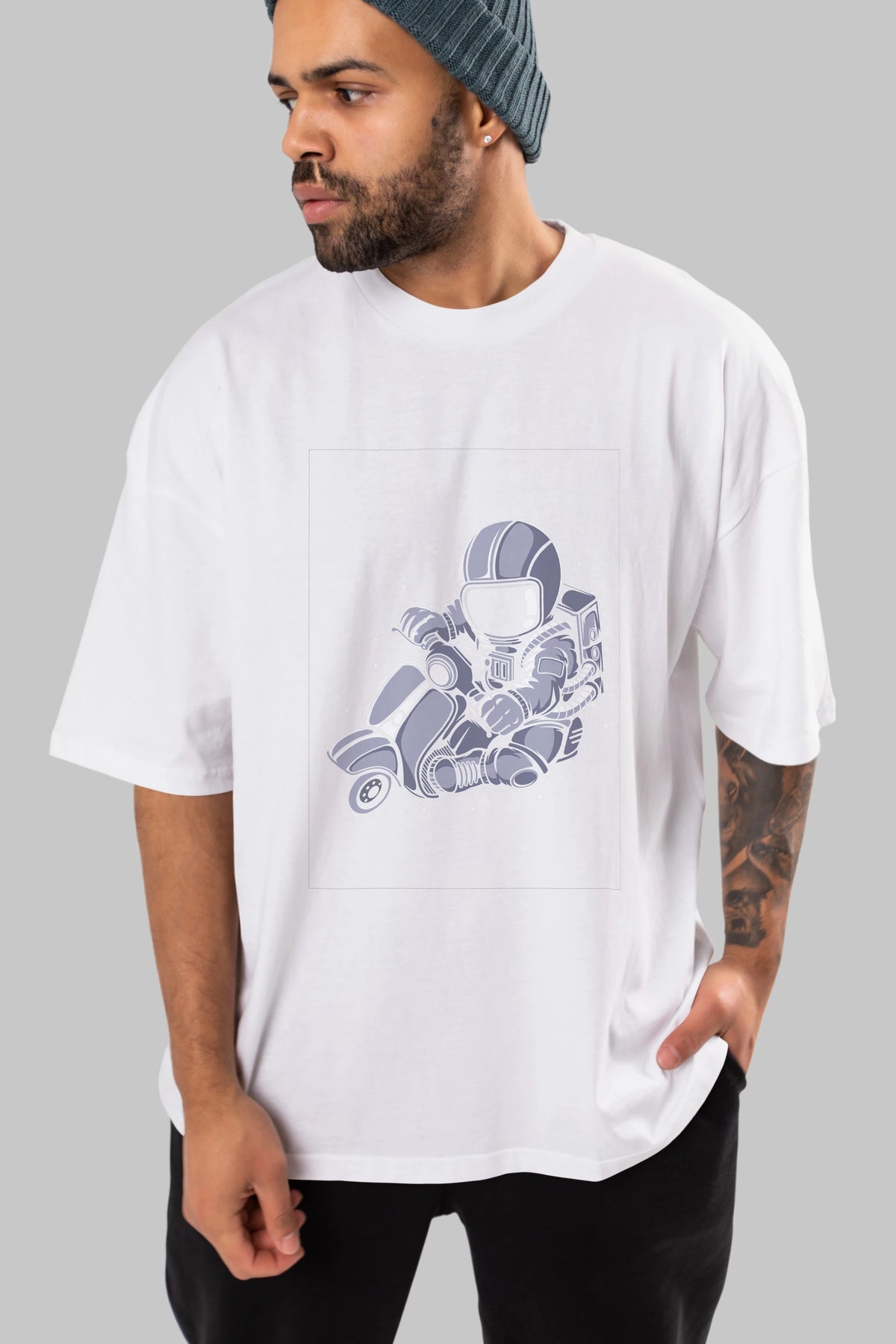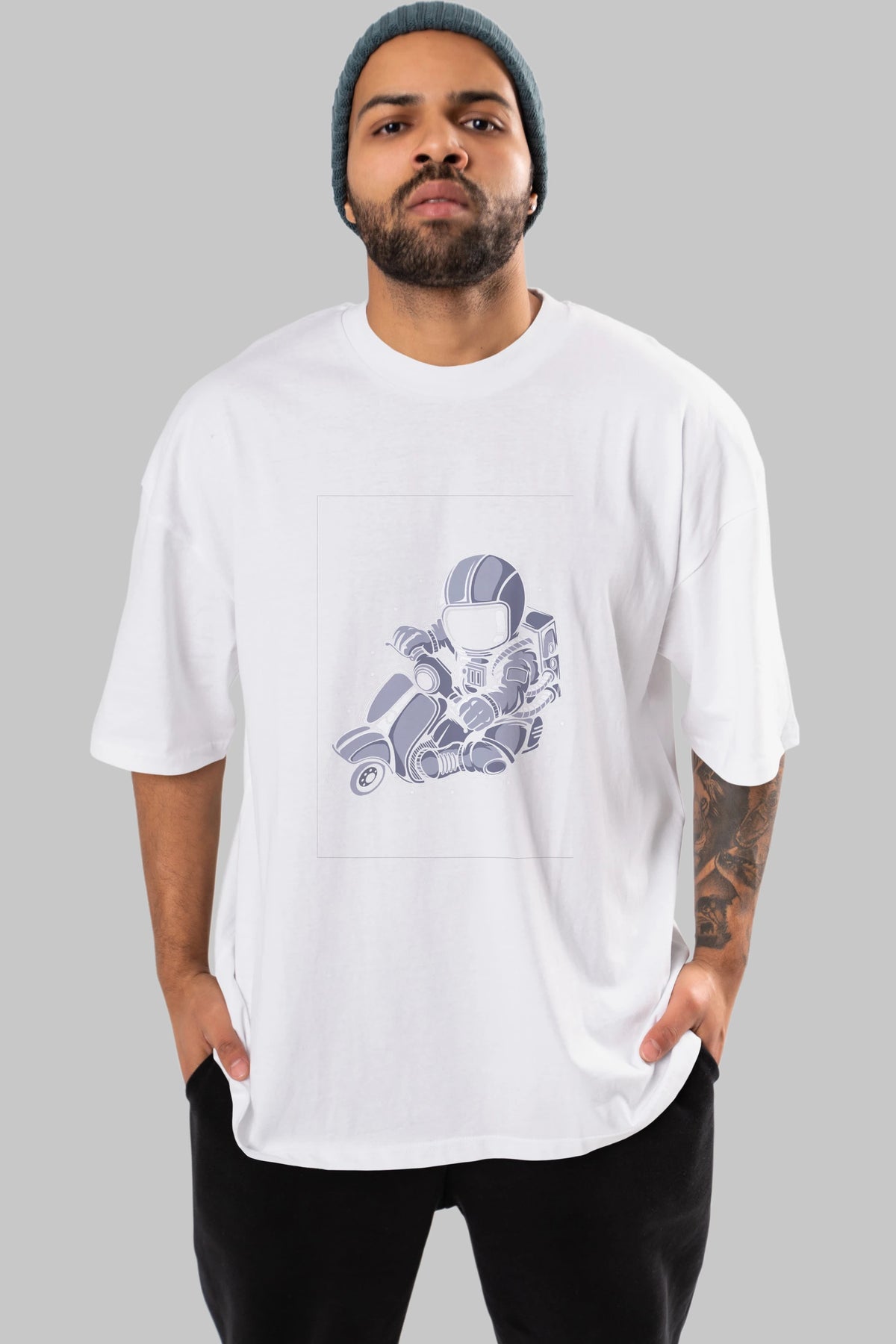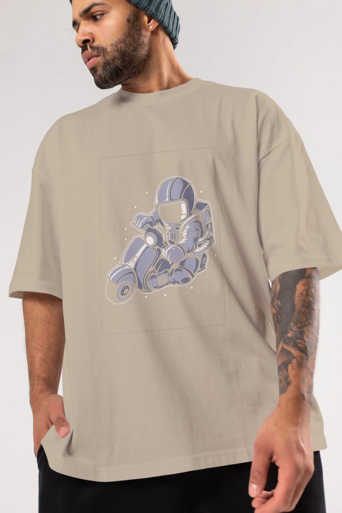 Astronaut Scooter (2) Ön Baskılı Oversize t-shirt Erkek Kadın Unisex