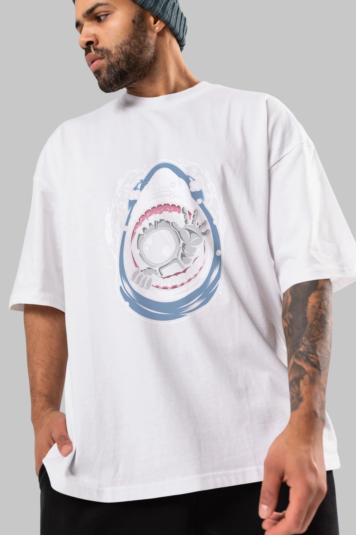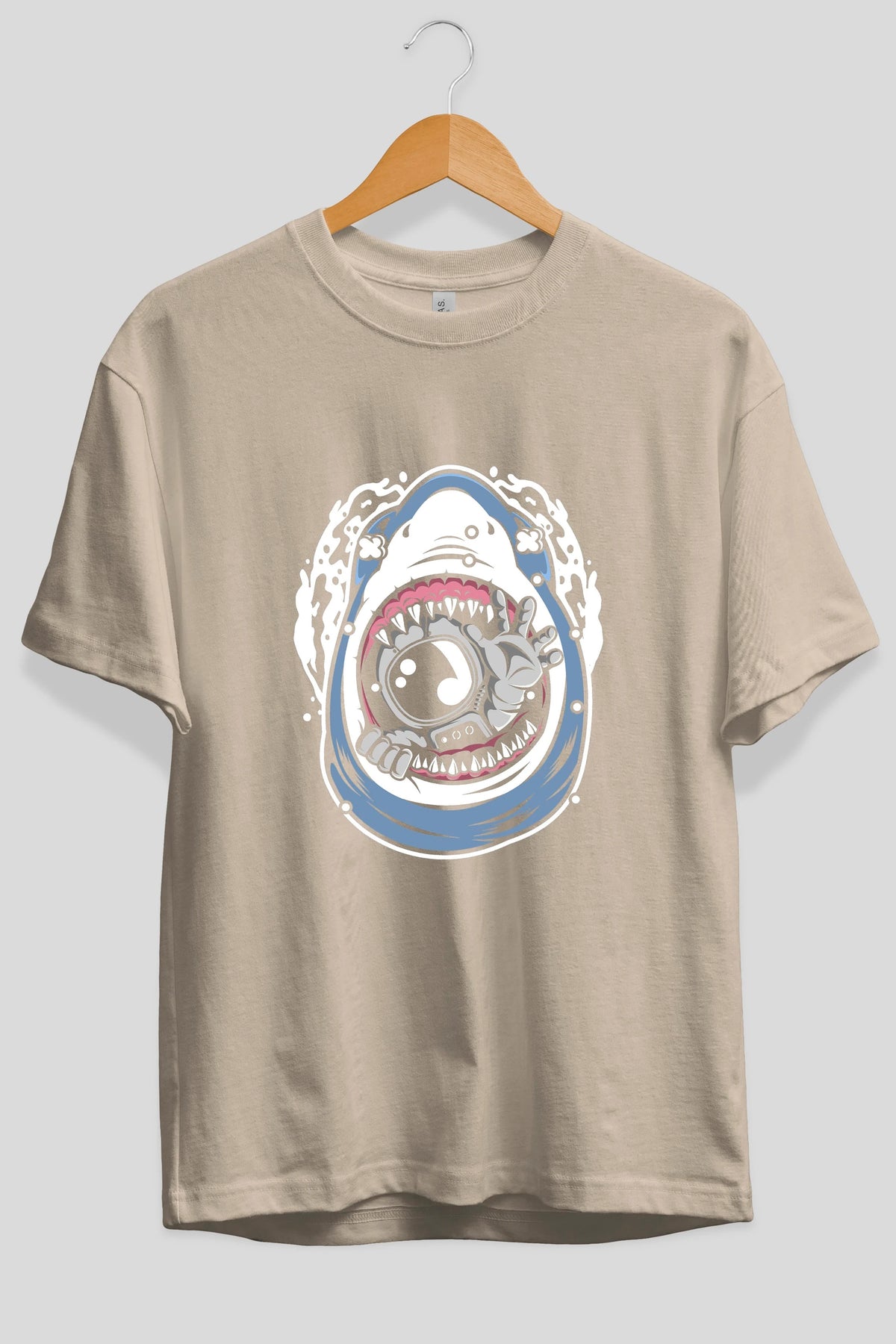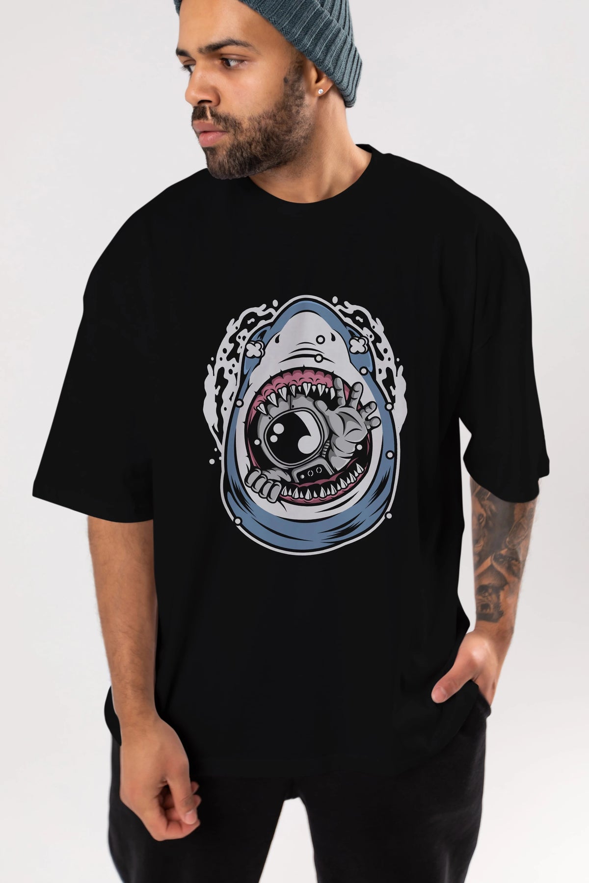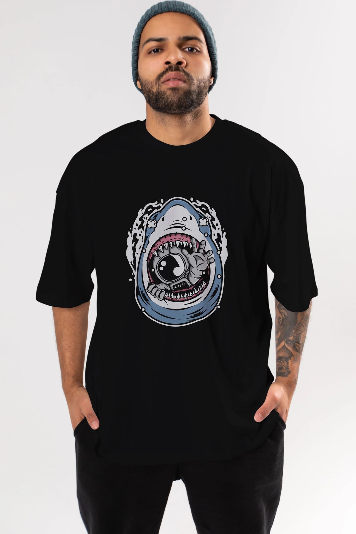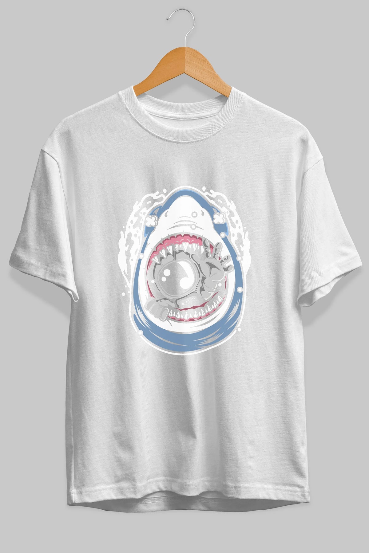 Astronaut Shark Ön Baskılı Oversize t-shirt Erkek Kadın Unisex